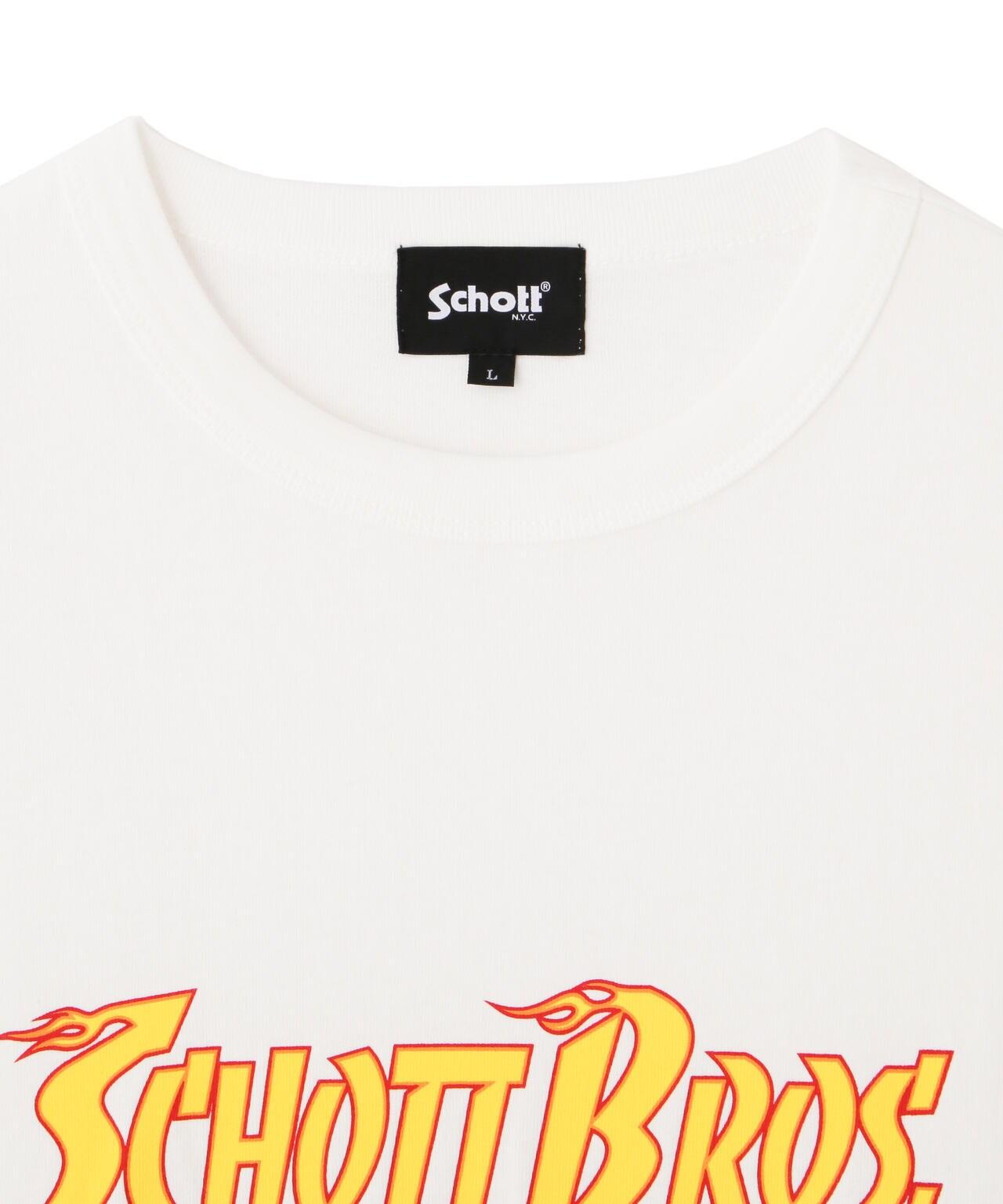 採用堅實厚實的 7 盎司紗體。硬、幹、粗糙的質地,加上只有開口紗才能帶來的蓬鬆、豐滿的手感,給人一種美國品牌的印象。採用捆綁式領口,縫製時將帶狀領口部分包裹在主體上。這樣的規格既能滿足大量使用,又不失厚實的衣身。這款 T 恤印有火紋圖案,將肖特典型的粗獷有力的老美風格表現得淋漓盡致。這件衣服增強了美國文化的獨特魅力,給穿著者帶來力量和自信。材質:100% 棉 原產地:中國 [Schott/Schott] 肖特的歷史與騎手夾克齊名。
