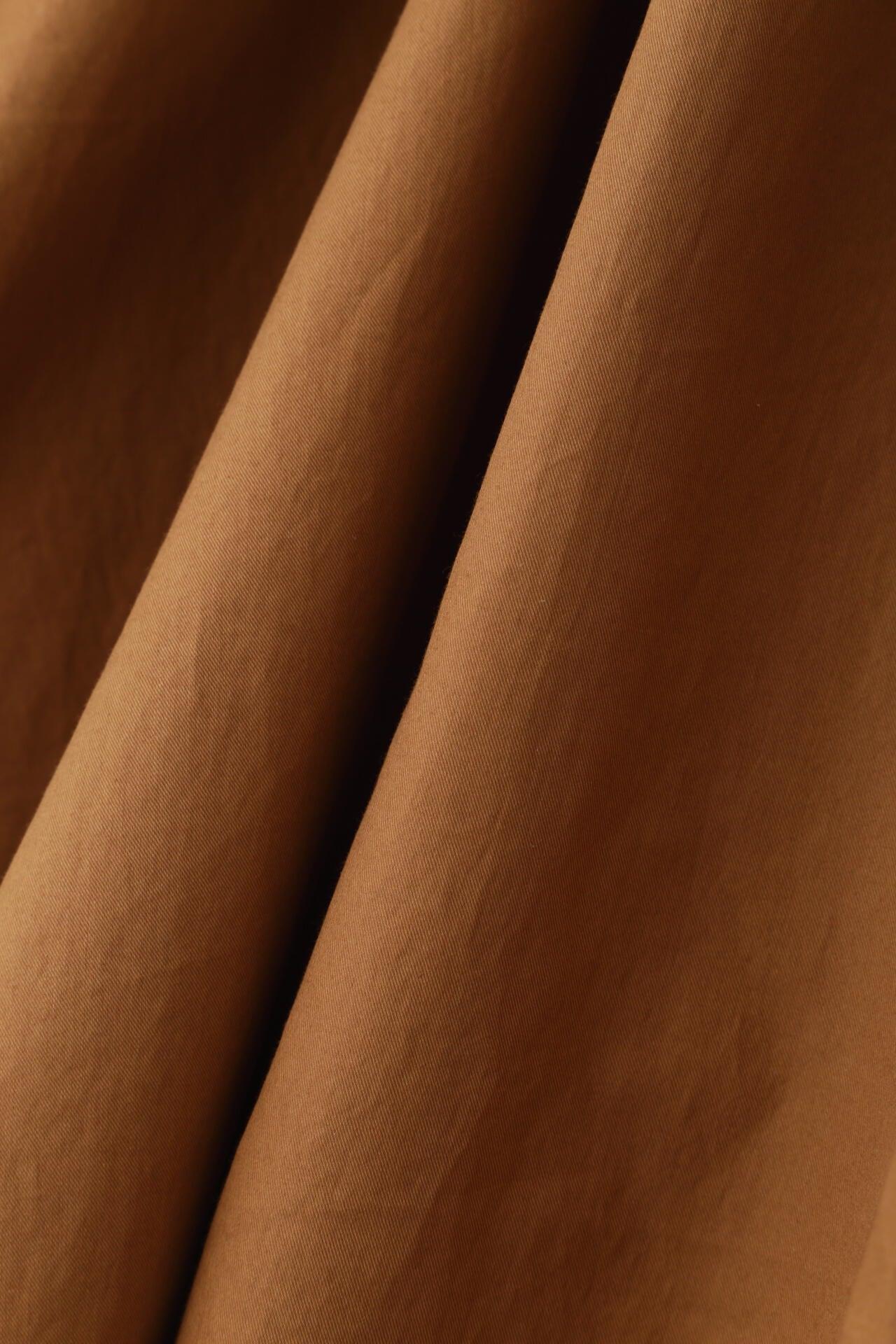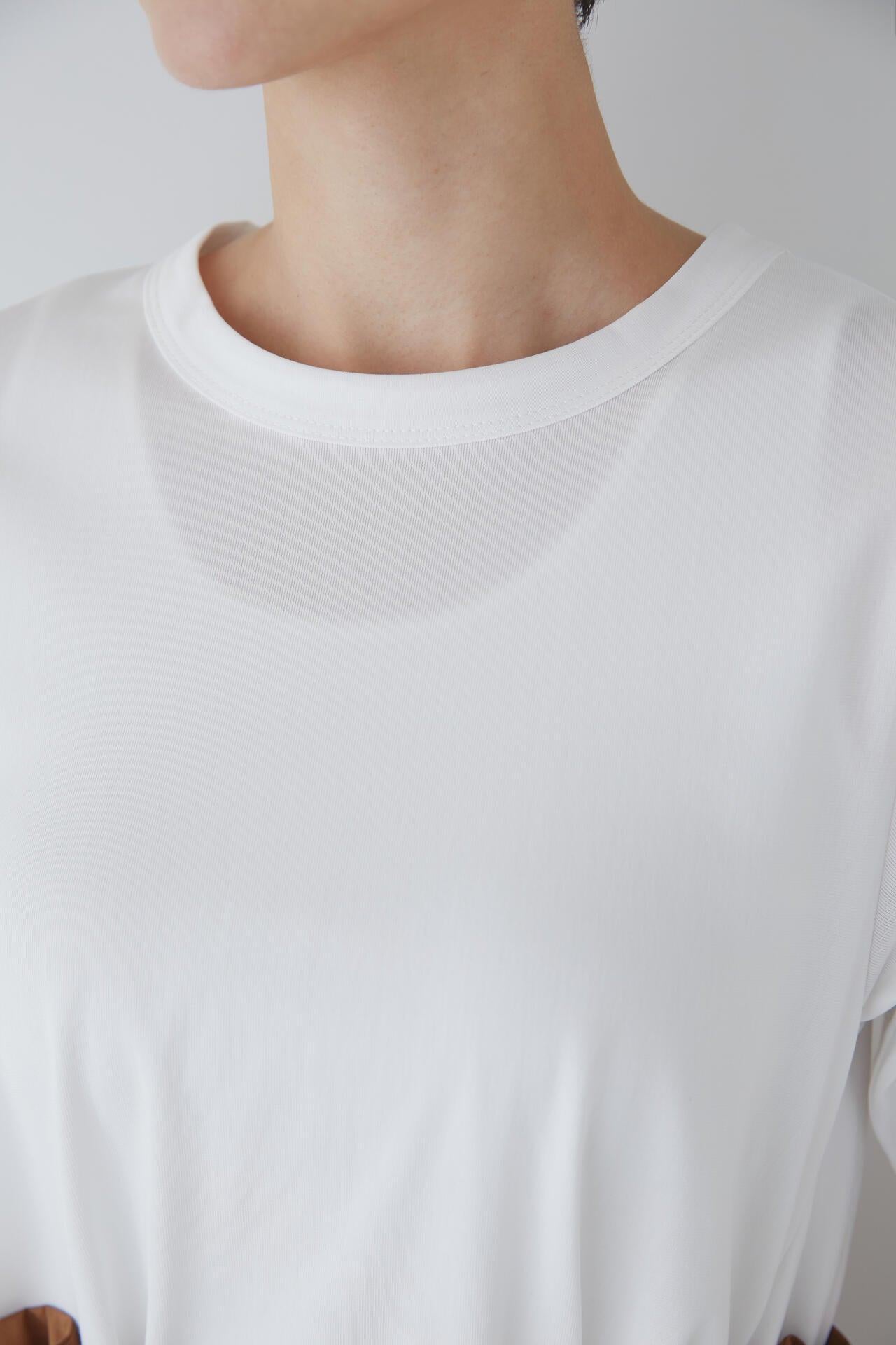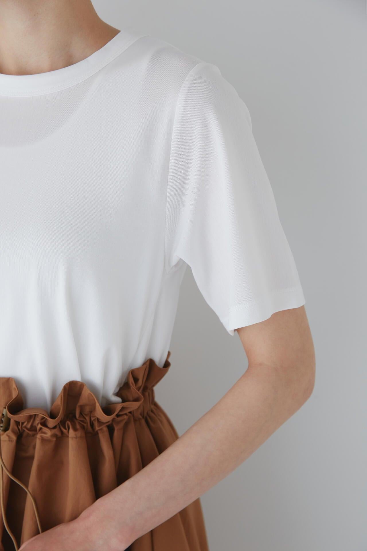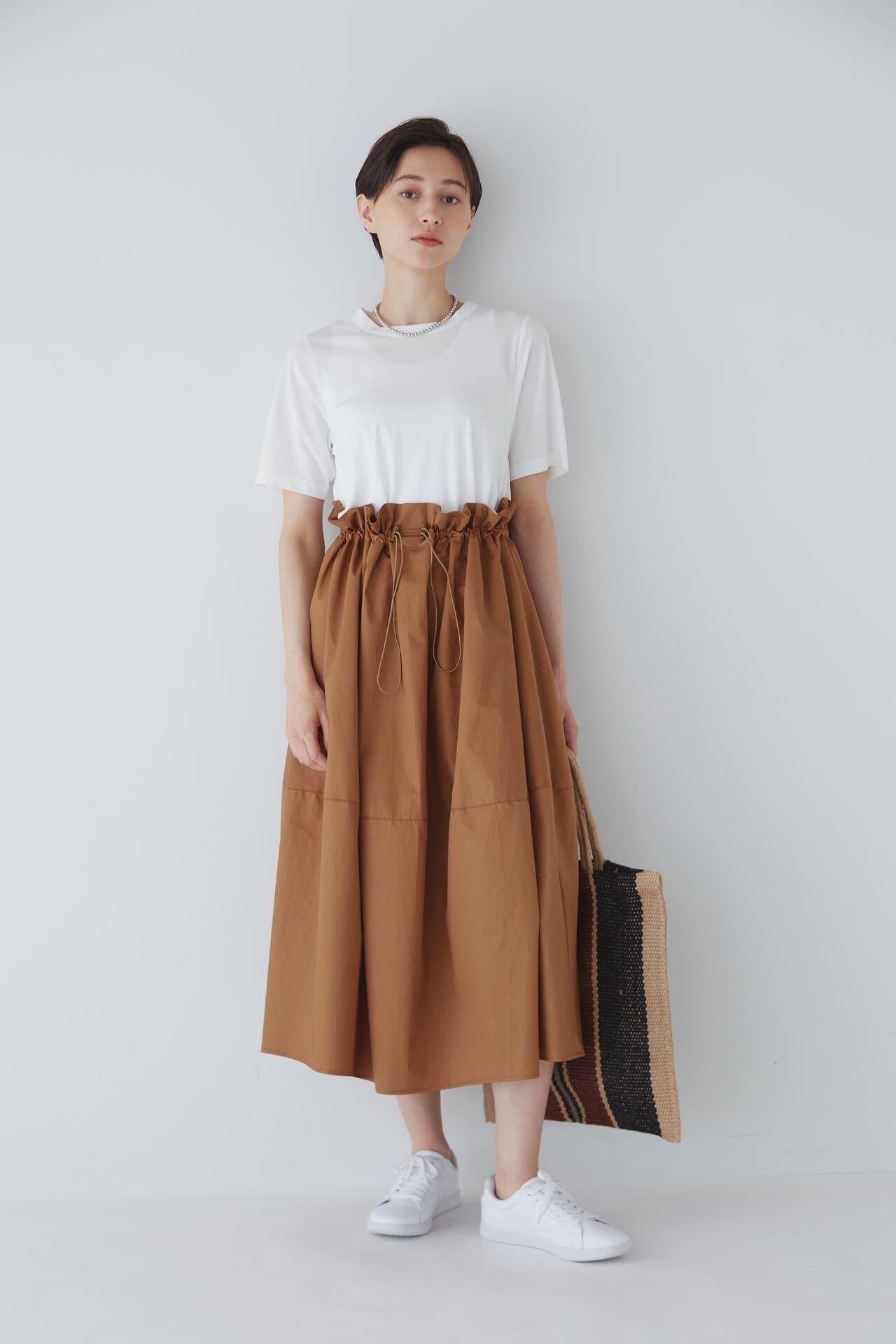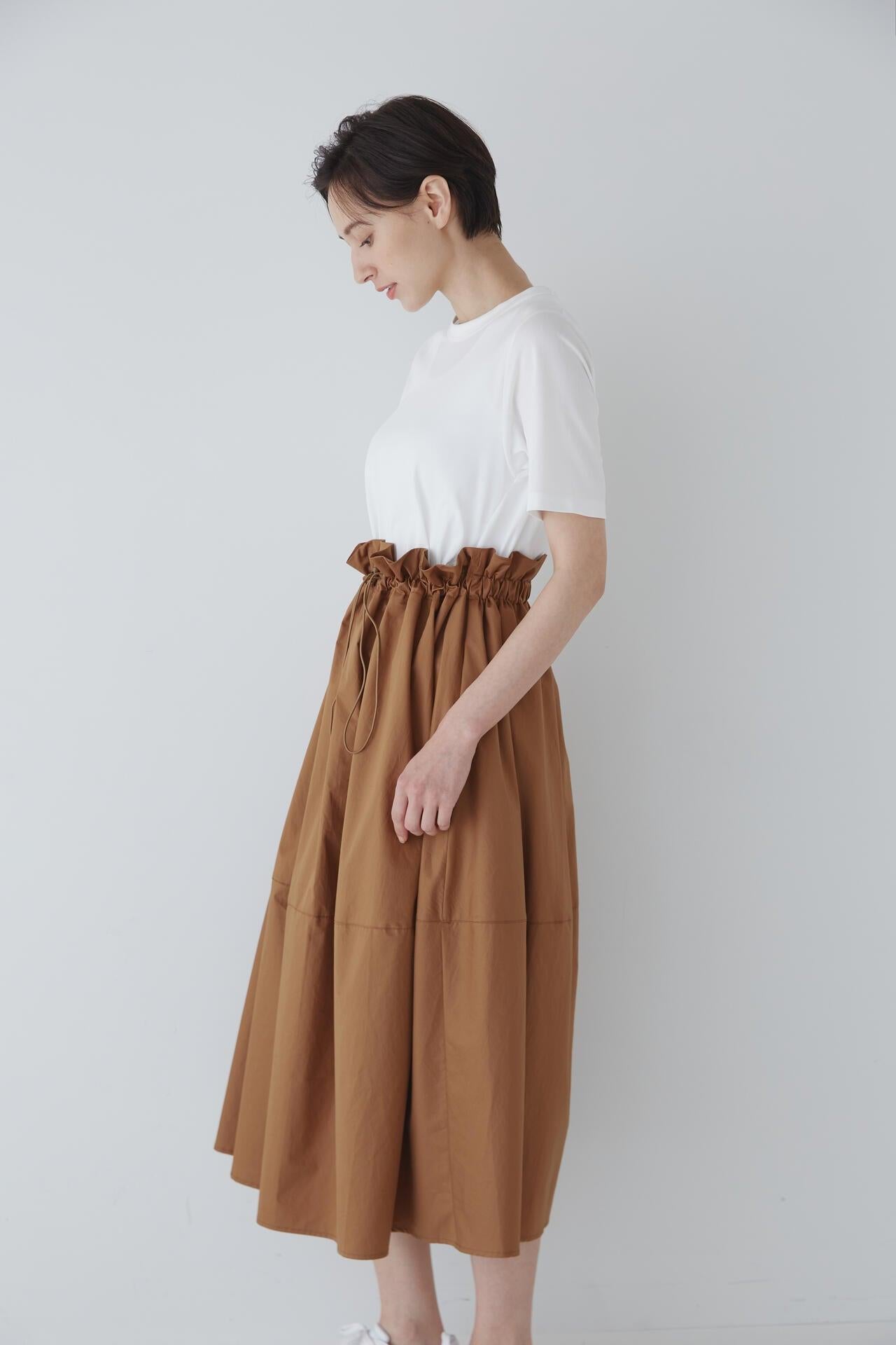 無需擔心搭配問題。這款連身裙是將乾淨小巧的 T 恤與動感十足的抽帶裙對接而成。上衣部分採用棉-聚酯經編面料,既有梭織面料的彈力,又有針織面料的舒適;裙襬部分採用棉-甩硅兩面洗面料,手感寬鬆、柔軟、有彈性且乾爽。裙子部分由棉硅雙層水洗面料製成。上衣部分設計為 T 恤,因此可與開衫或其他服裝輕鬆疊穿。