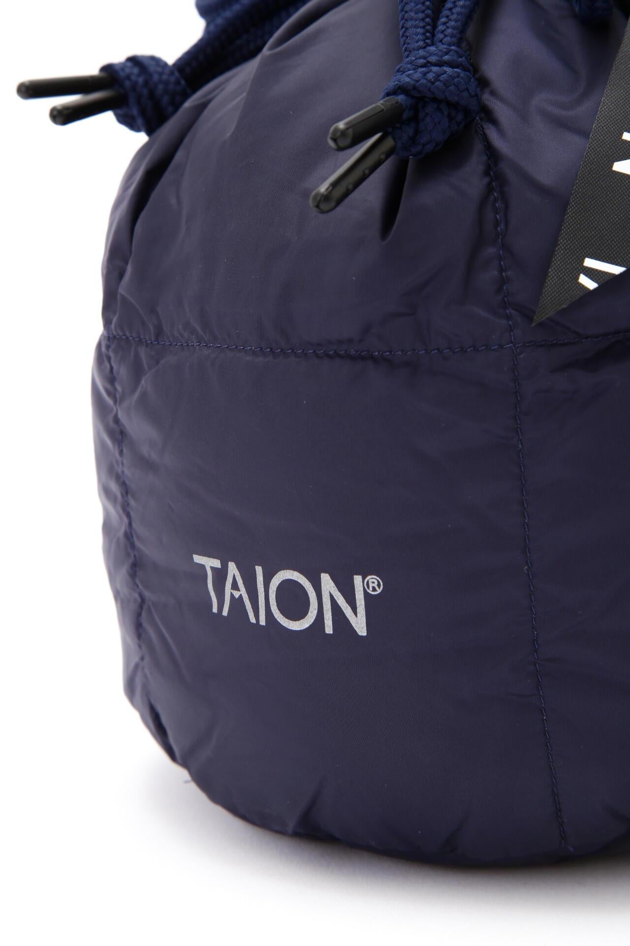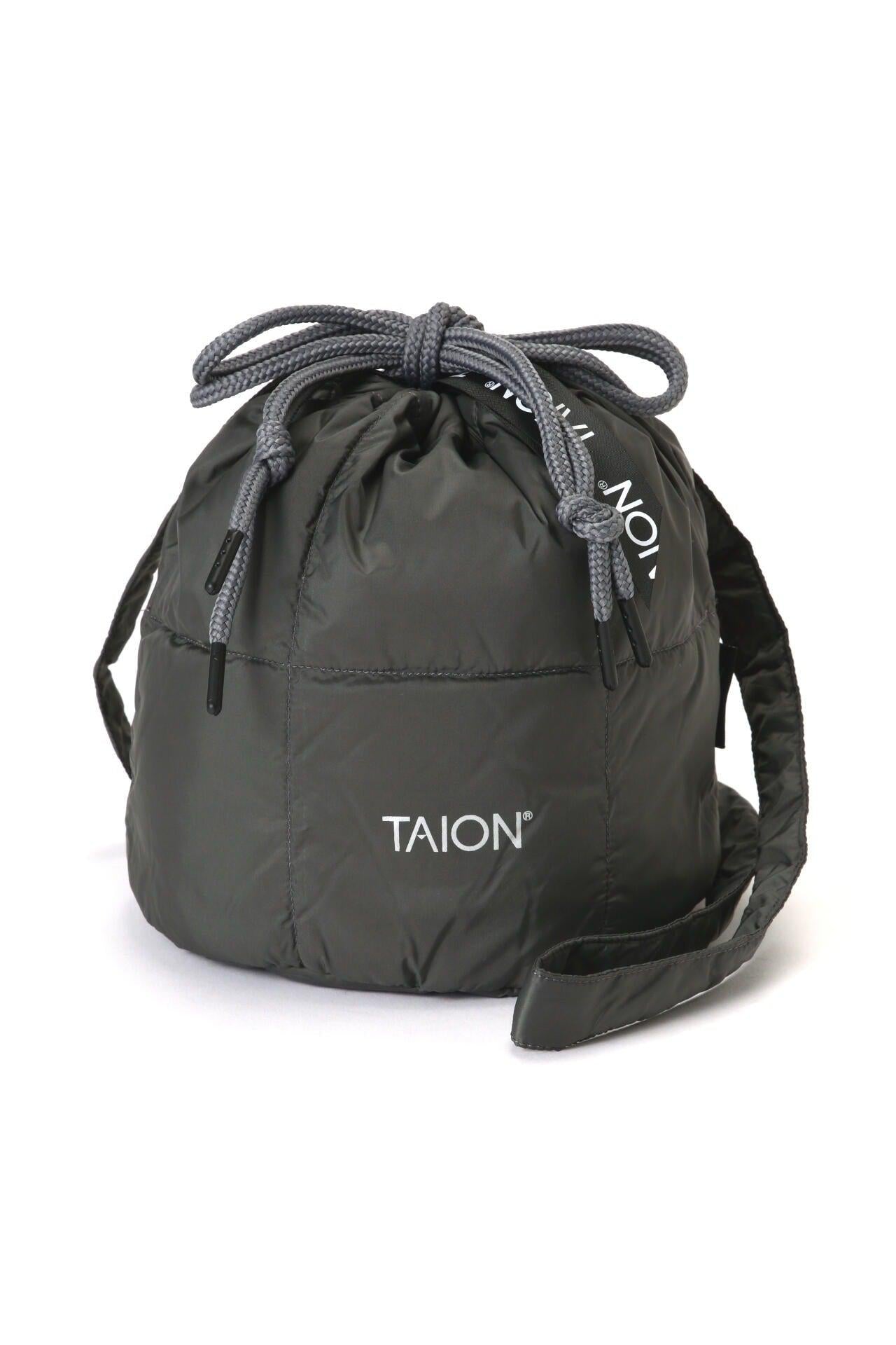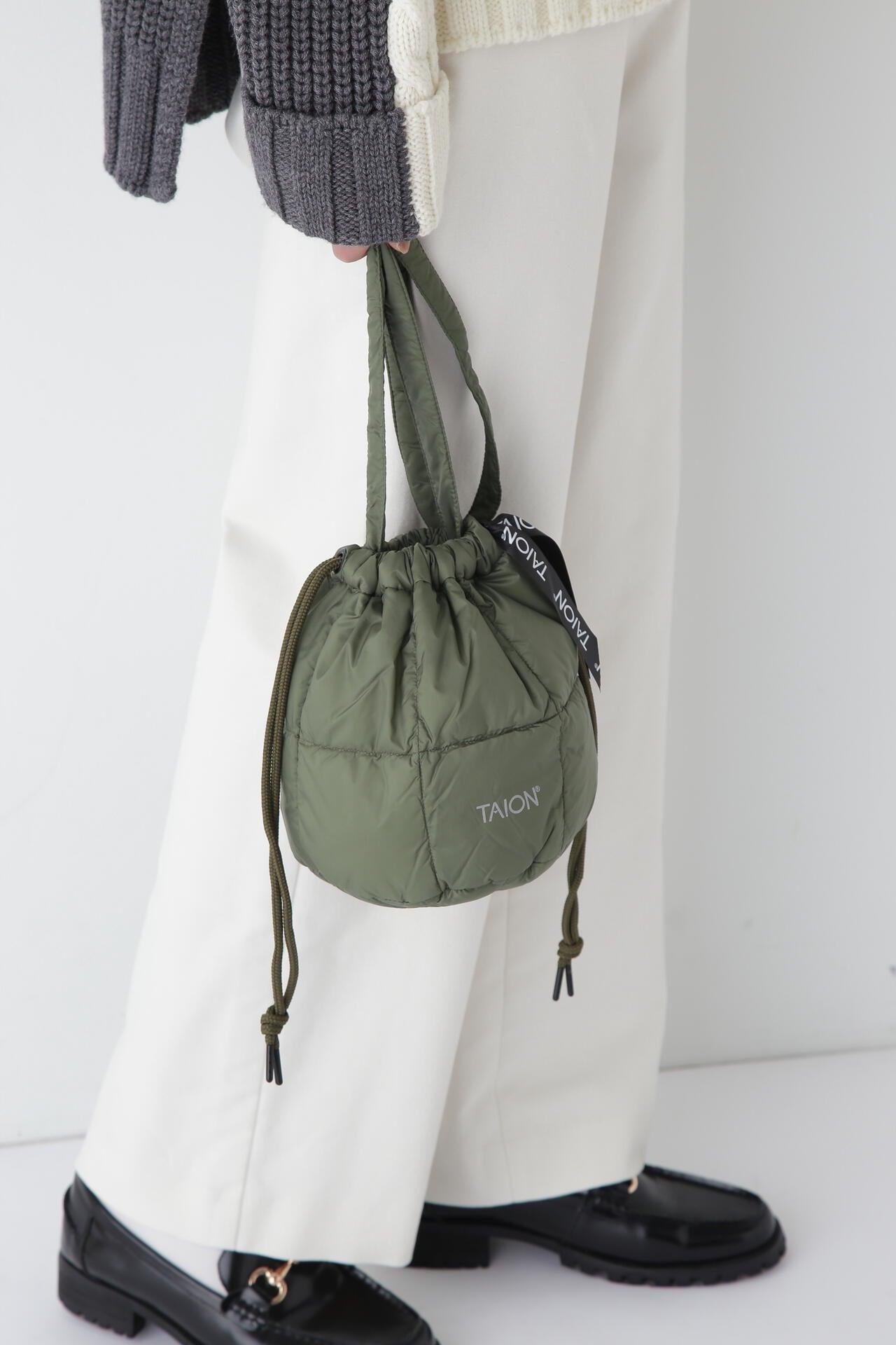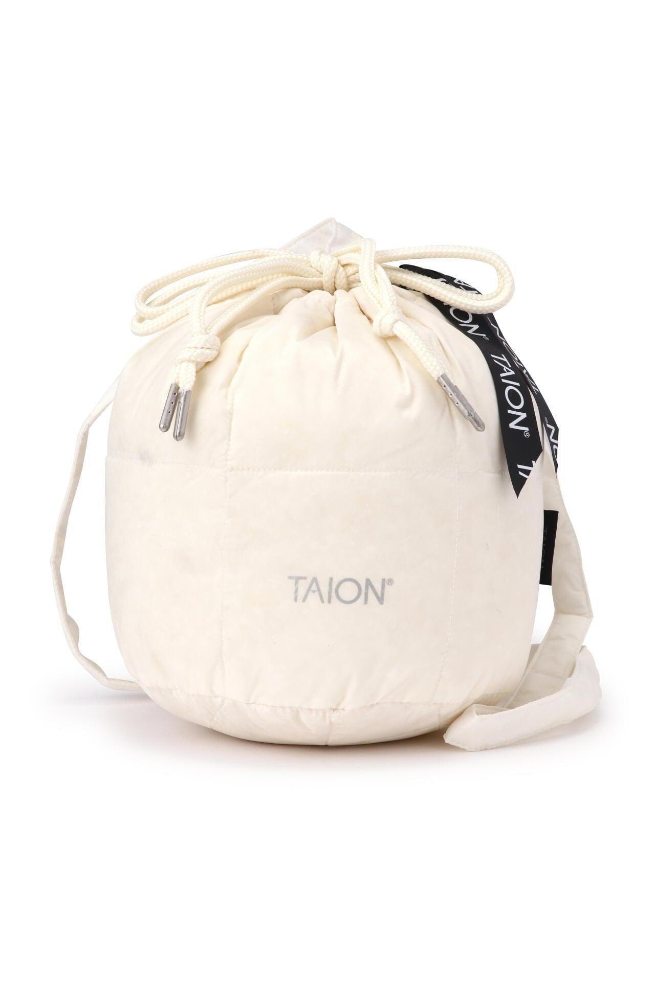 抽繩式迷你羽絨包大小適中,方便外出攜帶。由於包帶較長,它還可用作斜肩包。簡約雋永的設計加上 "TAION "小徽標印花作為點綴,同樣引人注目。由於羽絨是一種天然材料,因此在極少數情況下可能會混入深色羽毛,透過表面可以看到。