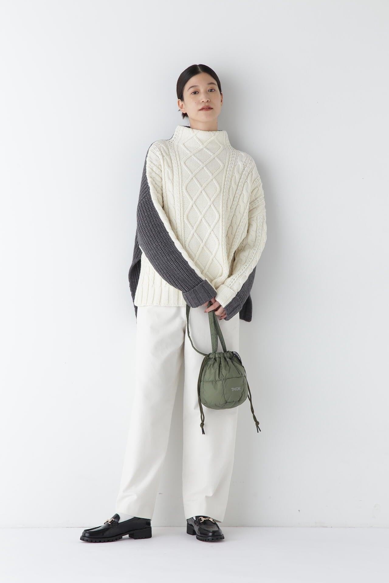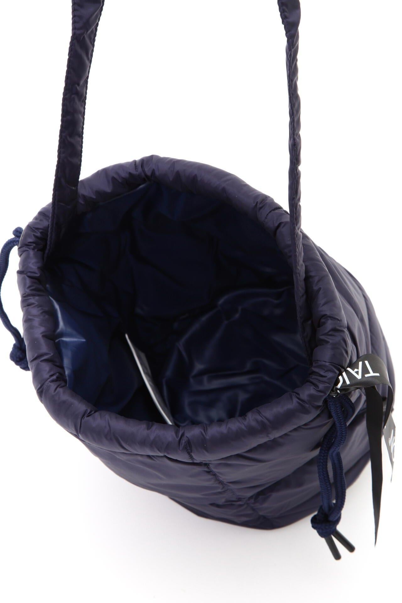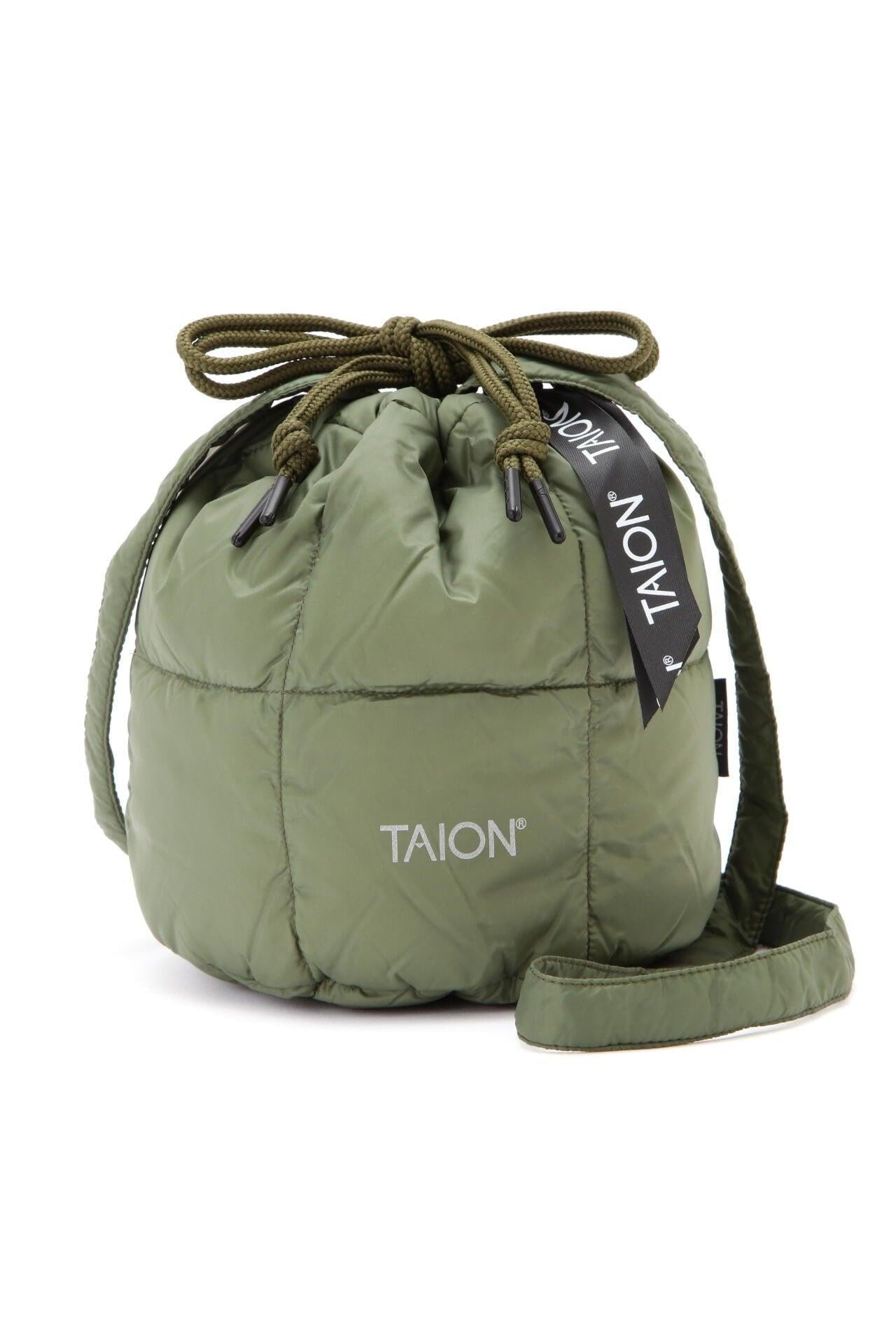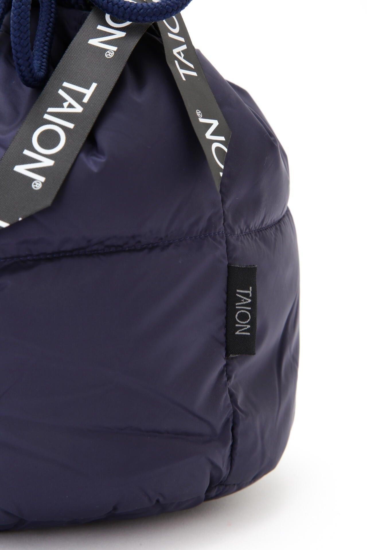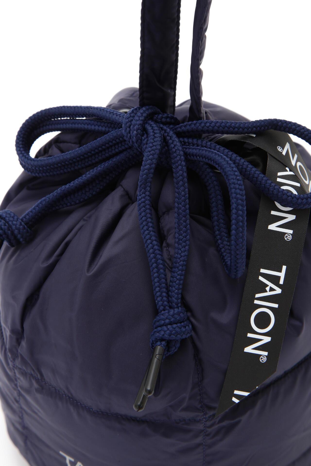 抽繩式迷你羽絨包大小適中,方便外出攜帶。由於包帶較長,它還可用作斜肩包。簡約雋永的設計加上 "TAION "小徽標印花作為點綴,同樣引人注目。由於羽絨是一種天然材料,因此在極少數情況下可能會混入深色羽毛,透過表面可以看到。