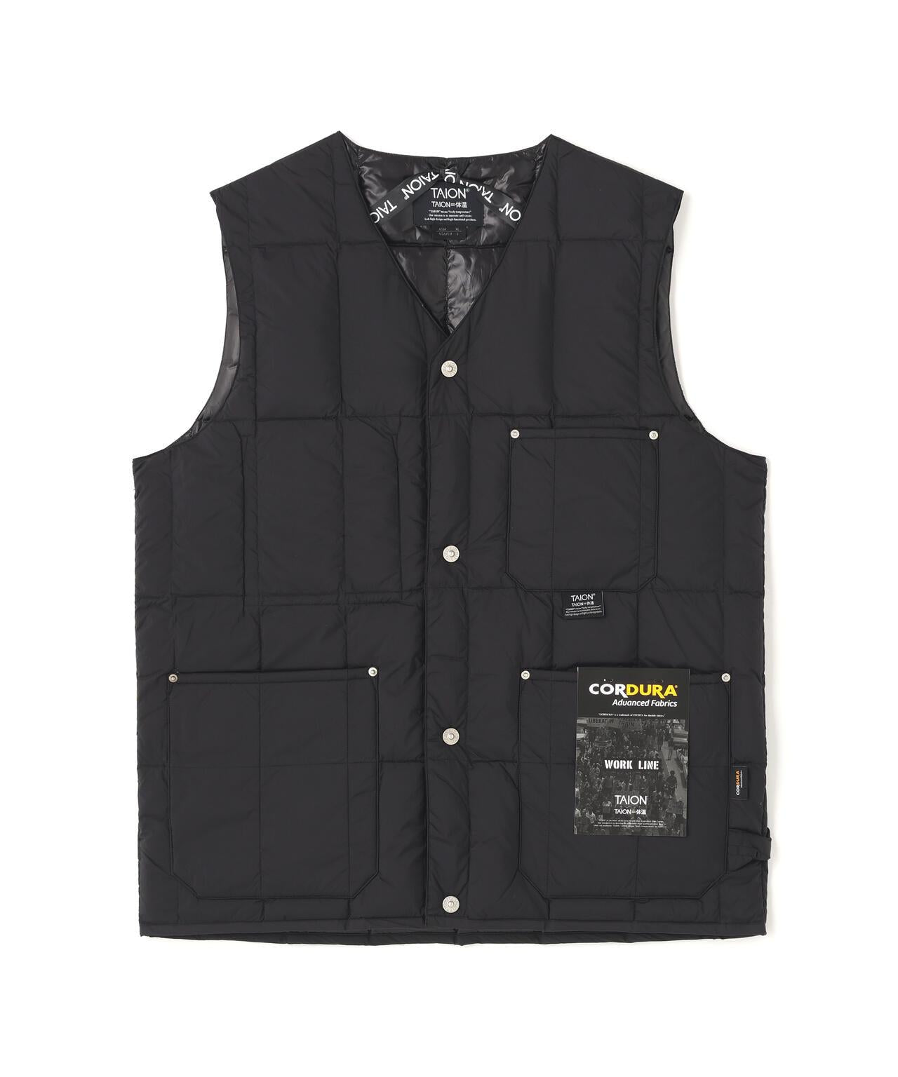 TAION [UNISEX] 工作 V 領紐扣馬甲(TAION-001BWK) 👍暢銷的內搭羽絨馬甲採用 CORDURA 面料,輕便、保暖、耐用。外層面料採用高密度 CORDURA 尼龍面料,耐摩擦、抗撕裂。採用 800FP 羽絨製成,保暖性強,垂直絎縫。大量的口袋和鉚釘,以及左側的錘環,增加了工作特性。它既可用於活動場景,也可用於休閒場景,可輕鬆織在 T 恤或襯衫外面,是一款值得信賴的羽絨服。外層面料採用高度耐用的 CORDURA 面料。外層面料採用高度耐用的 CORDURA 面料,使用 800FP 優質羽絨。前面板由以下材料製成