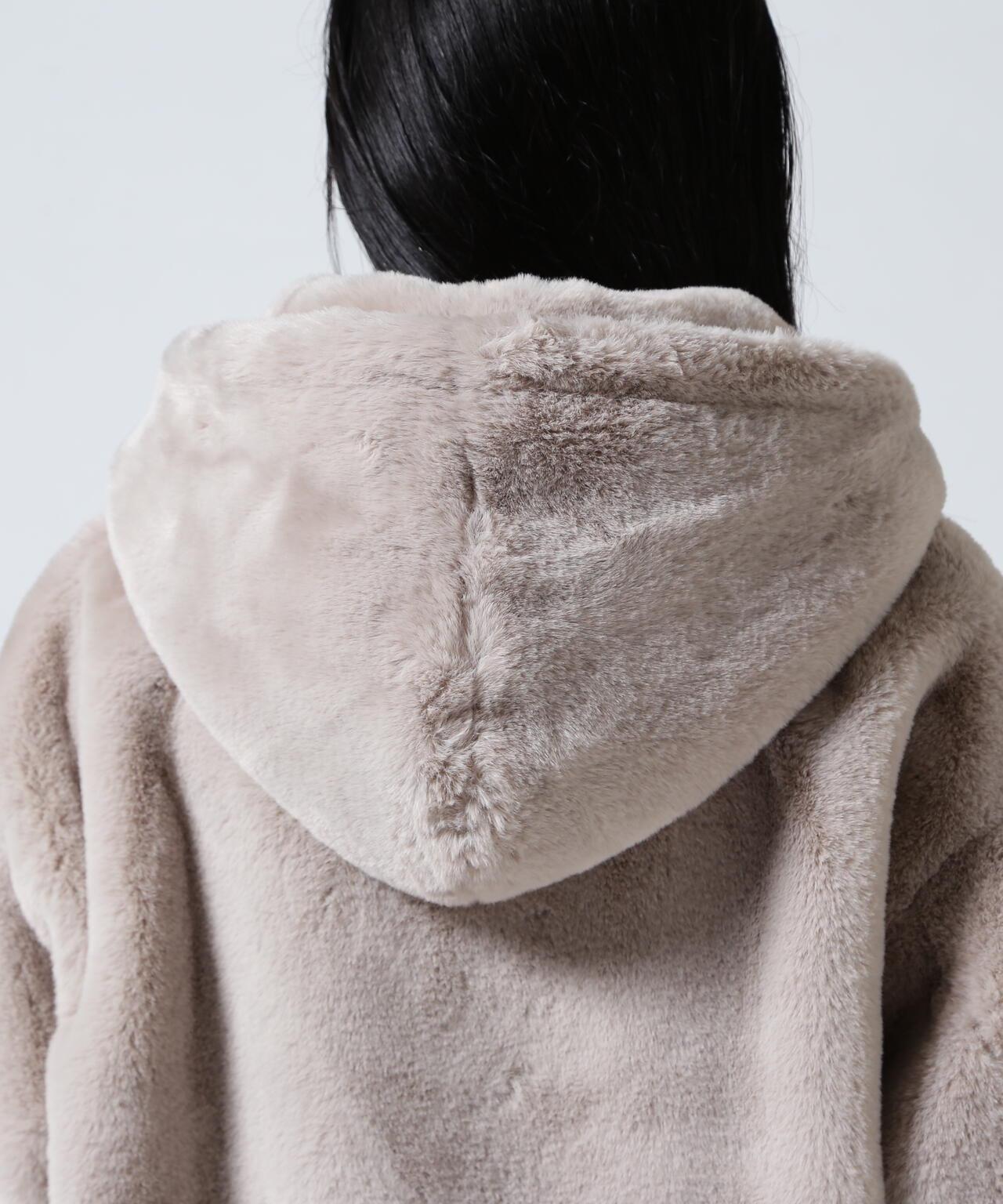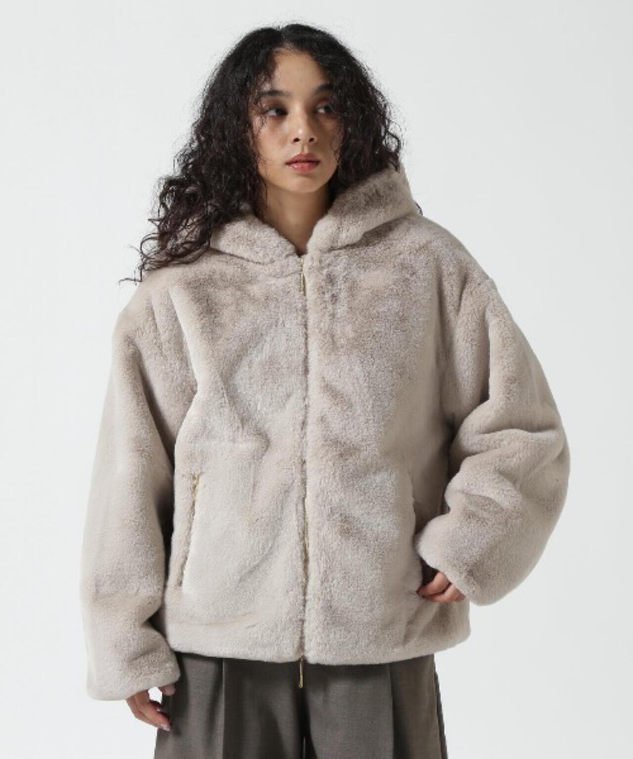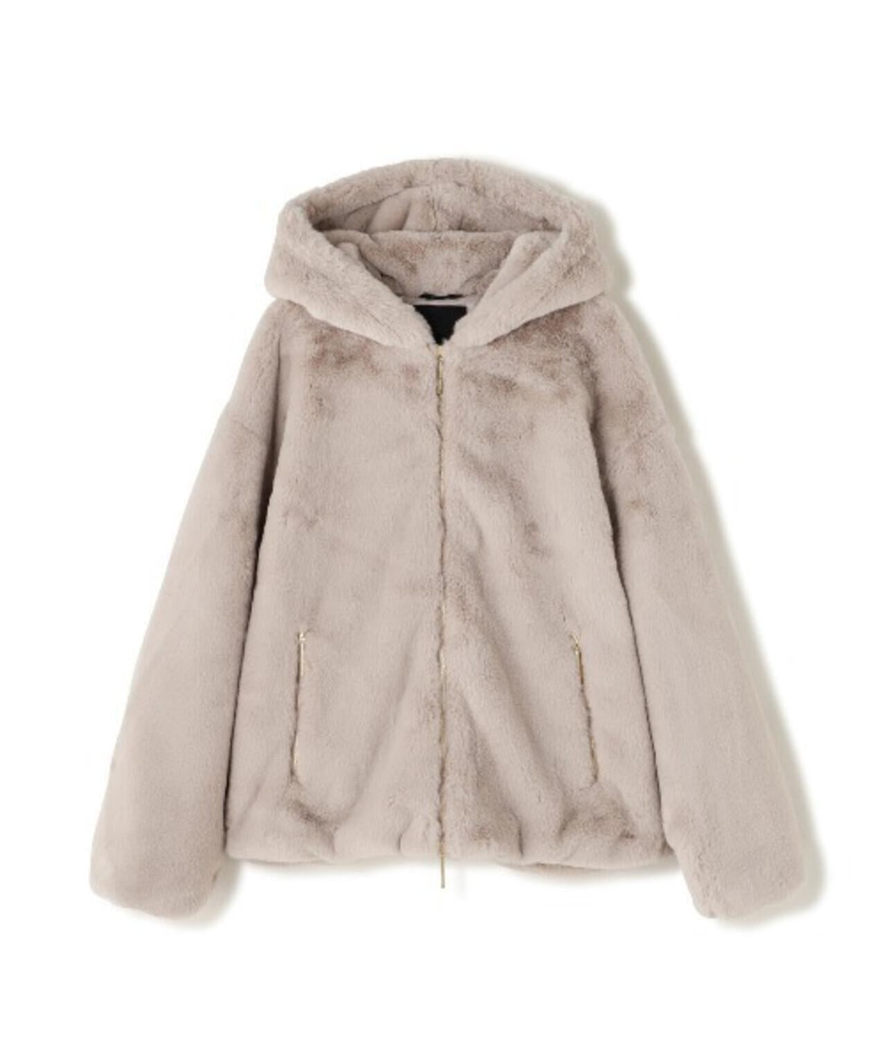 連帽長衫,採用富有光澤的環保毛皮面料。類似兔毛的面料由回收的聚酯紗線製成,色澤亮麗,觸感細膩。尺寸略大,長度略長。厚實的袖子和下垂的肩部給人一種輕鬆的感覺。金色拉鍊和袖標。棍棒式拉鍊頭增添了優雅的奢華感。品牌理念是 "精緻舒適的生活"。功能性/精緻
