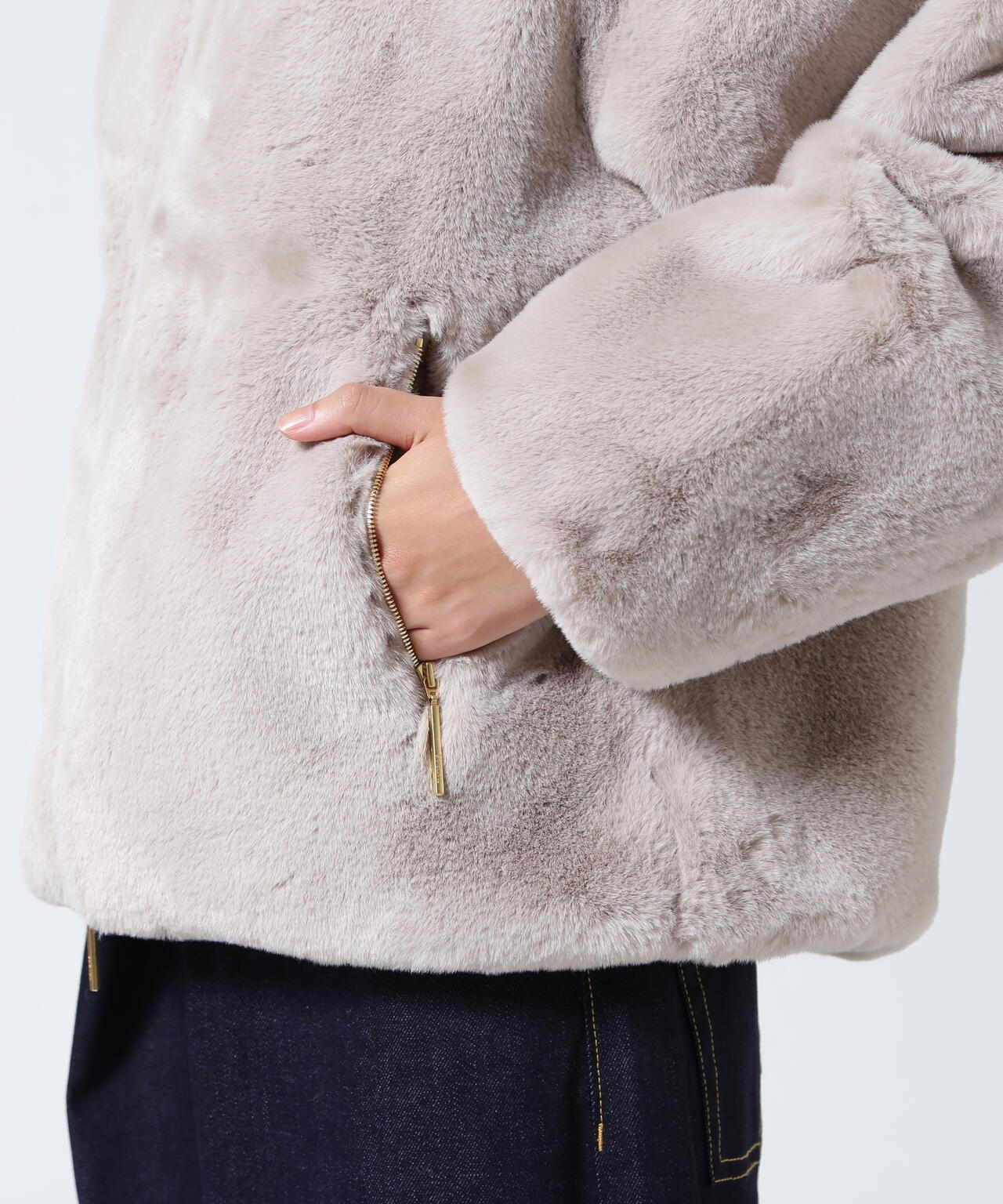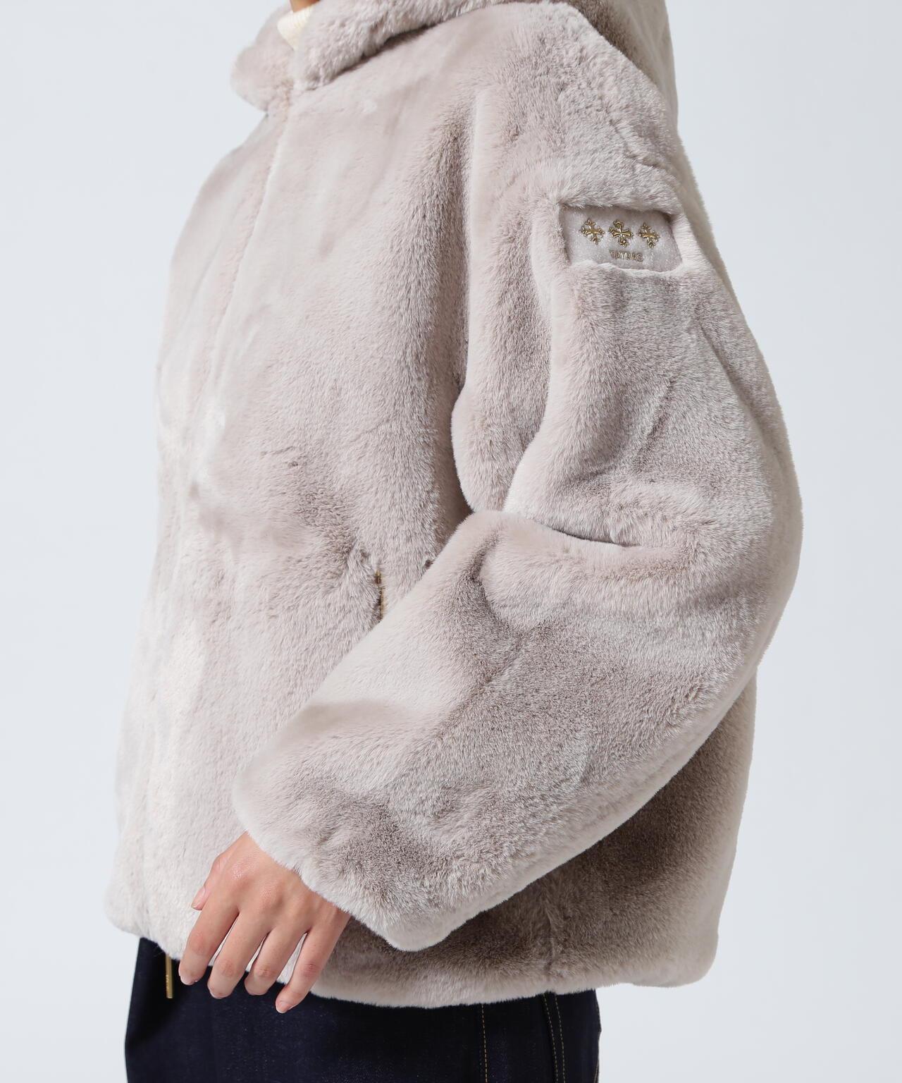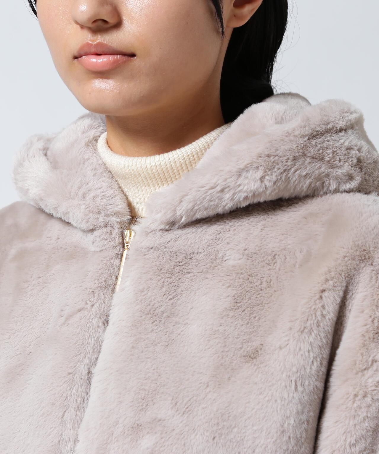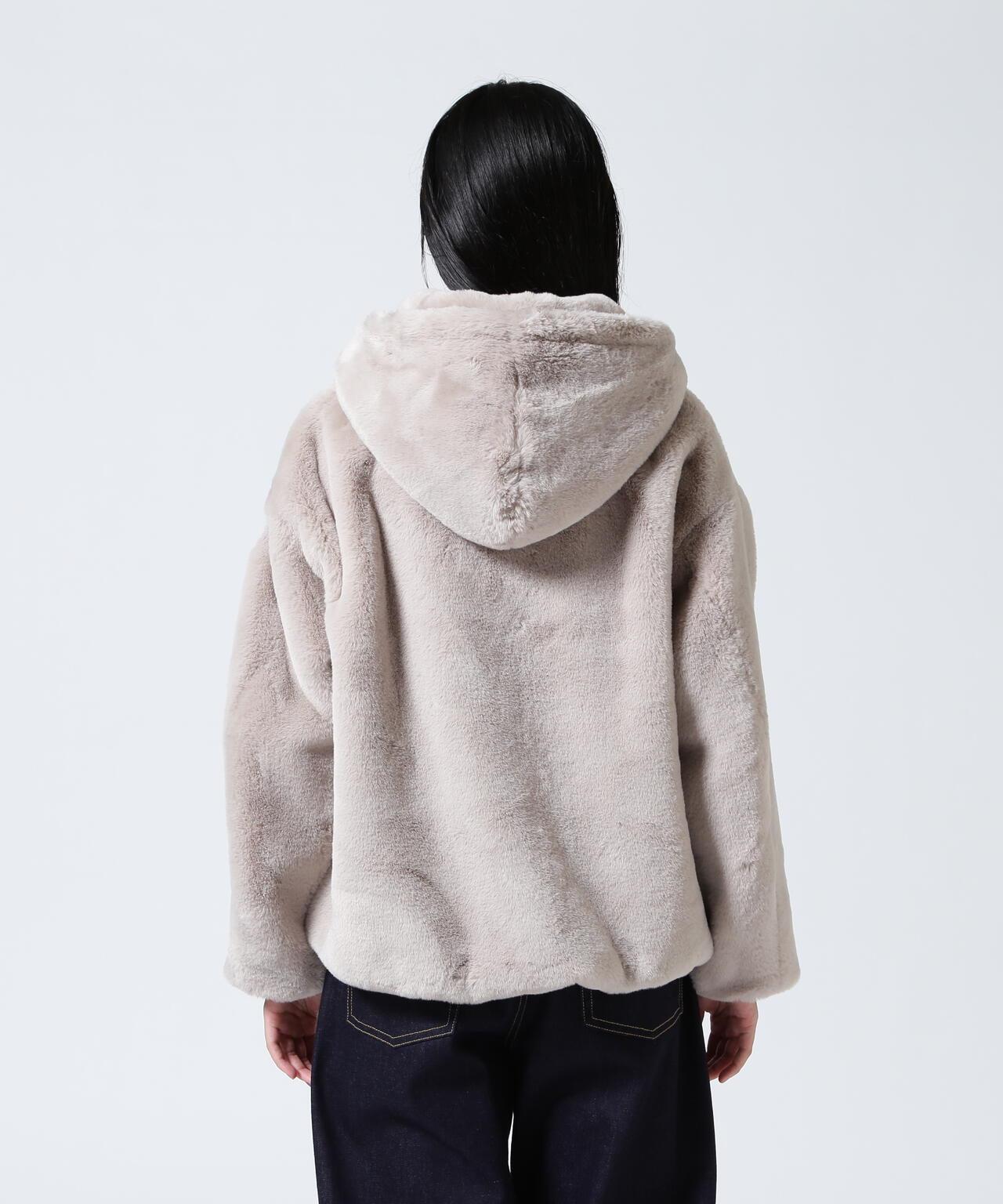 連帽長衫,採用富有光澤的環保毛皮面料。類似兔毛的面料由回收的聚酯紗線製成,色澤亮麗,觸感細膩。尺寸略大,長度略長。厚實的袖子和下垂的肩部給人一種輕鬆的感覺。金色拉鍊和袖標。棍棒式拉鍊頭增添了優雅的奢華感。品牌理念是 "精緻舒適的生活"。功能性/精緻