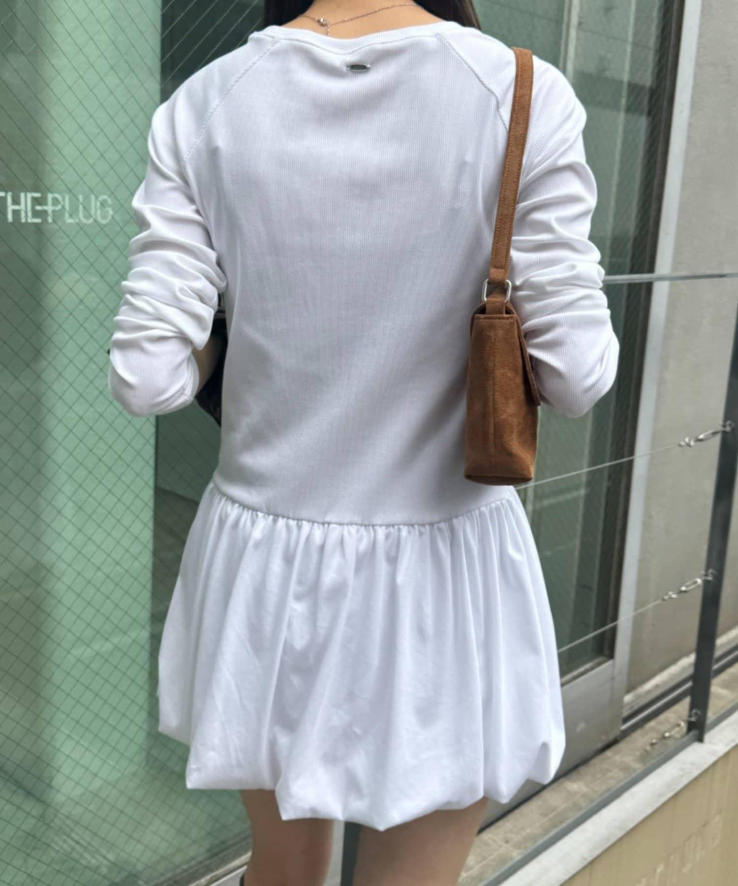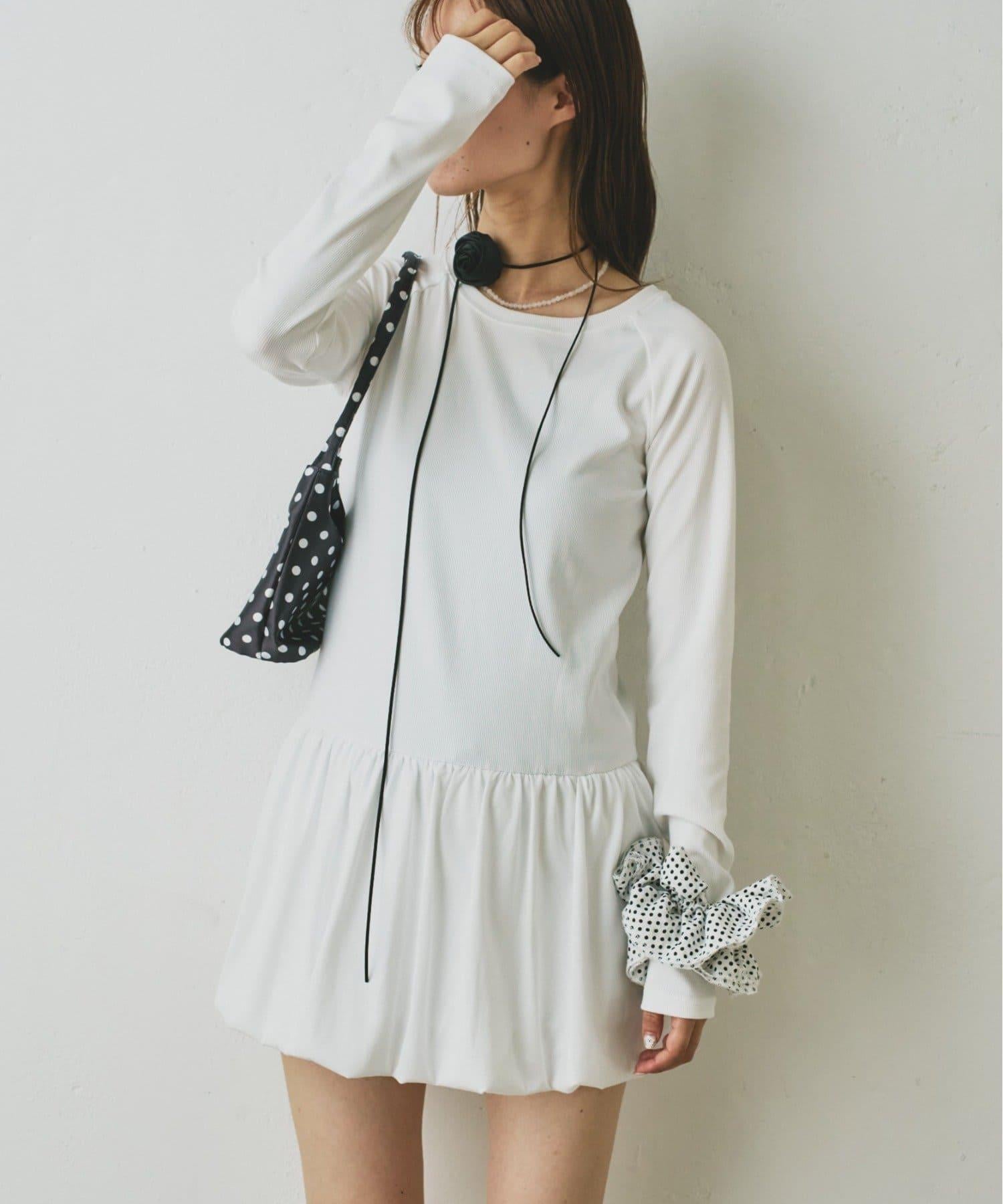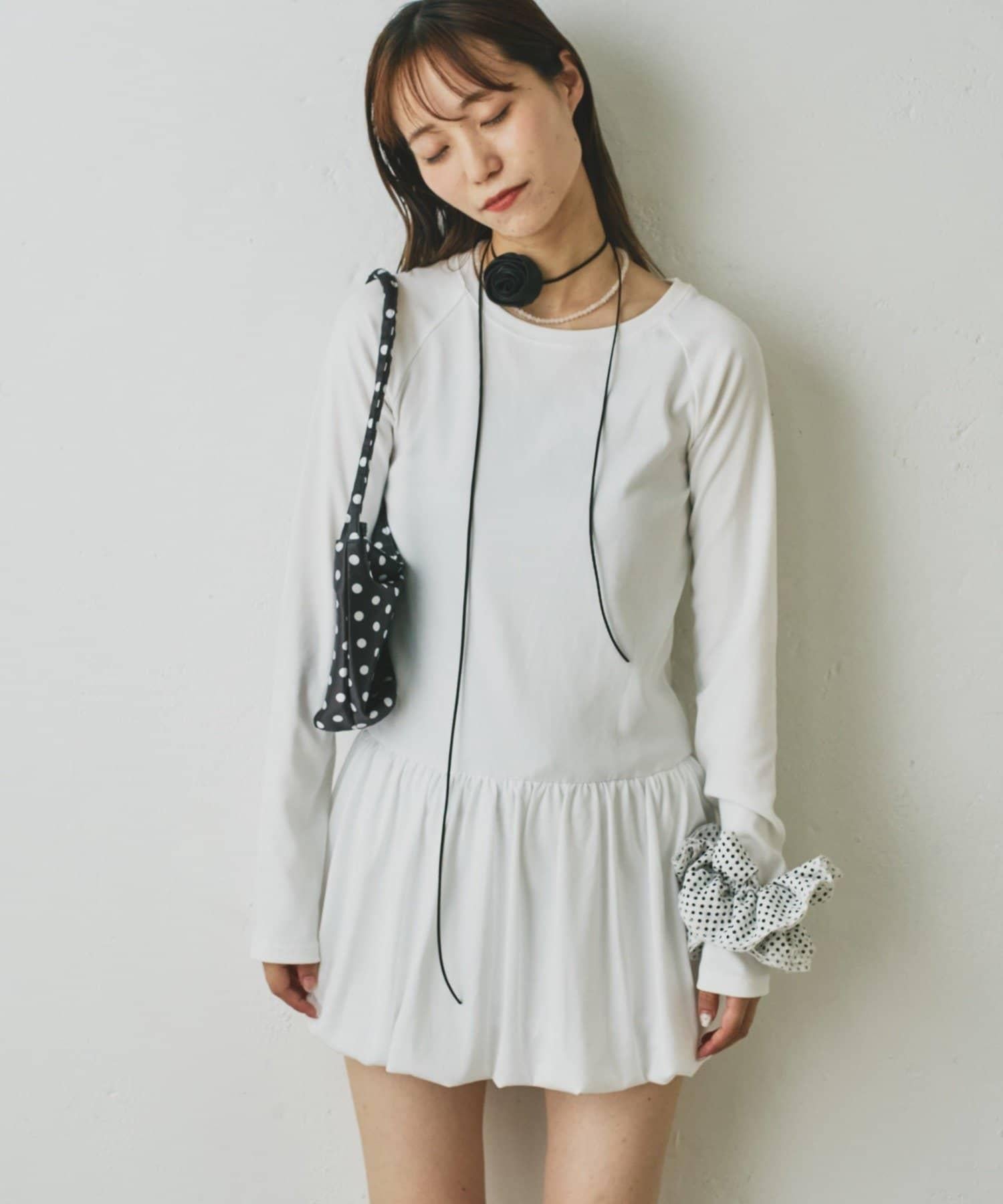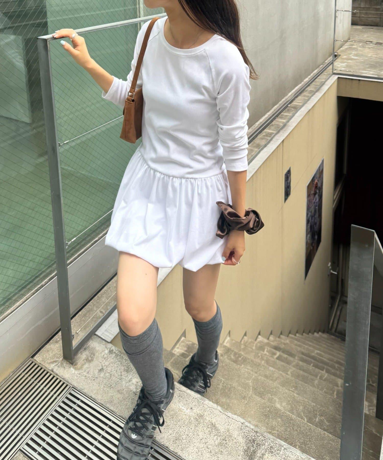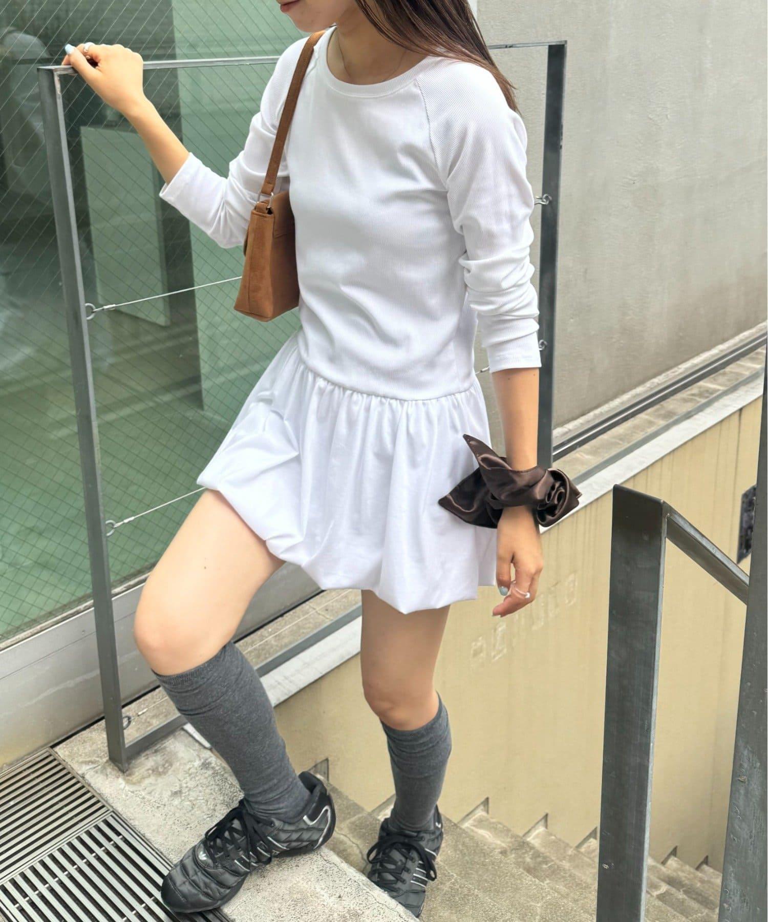 氣球上衣(白色①)的衣身採用羅紋面料,因此也可作為連衣裙穿著!