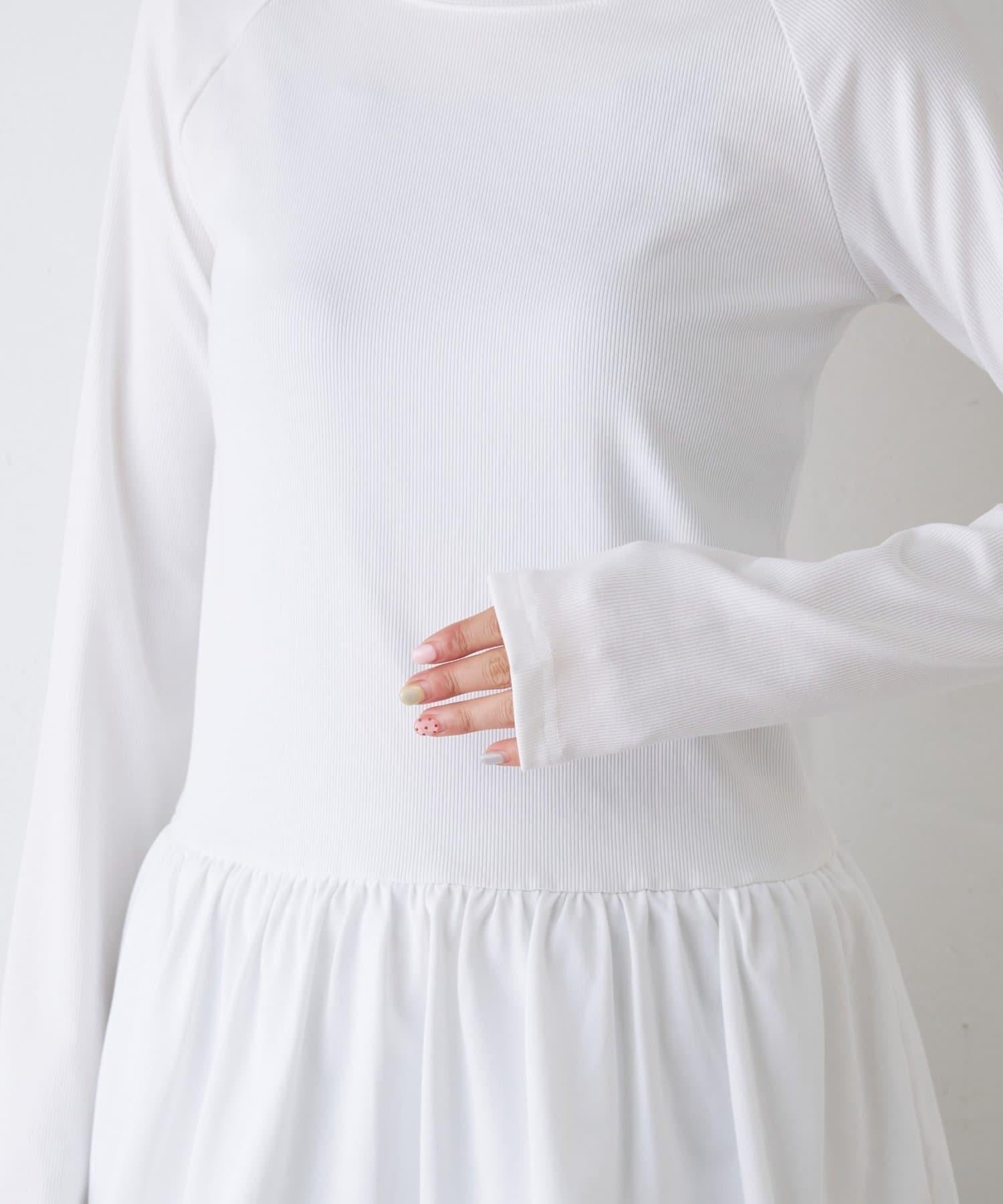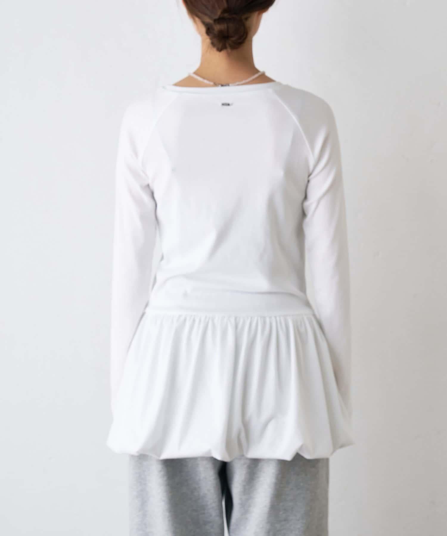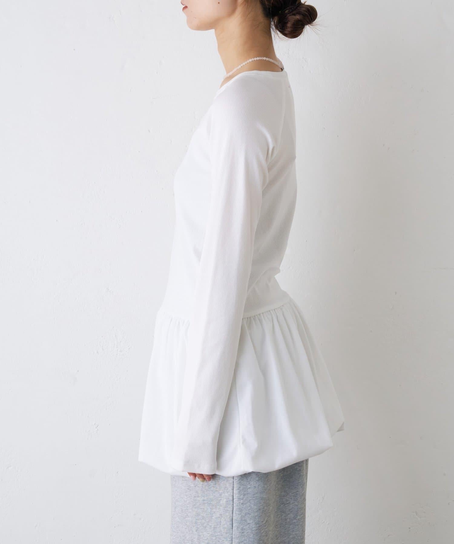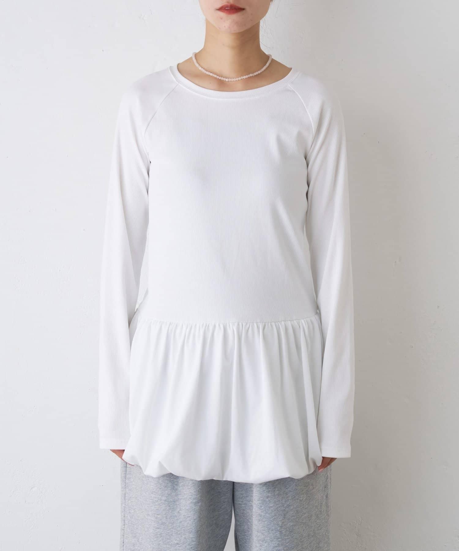 氣球上衣(白色①)的衣身採用羅紋面料,因此也可作為連衣裙穿著!