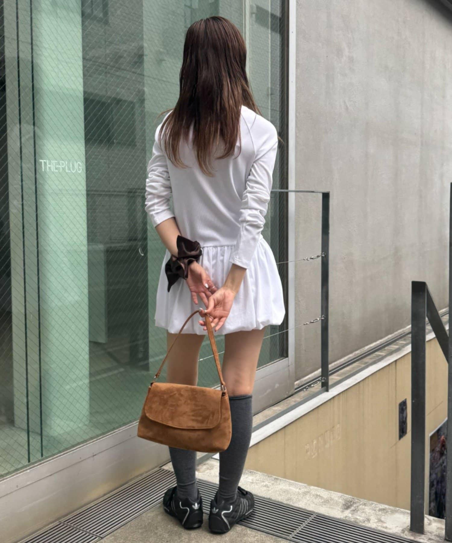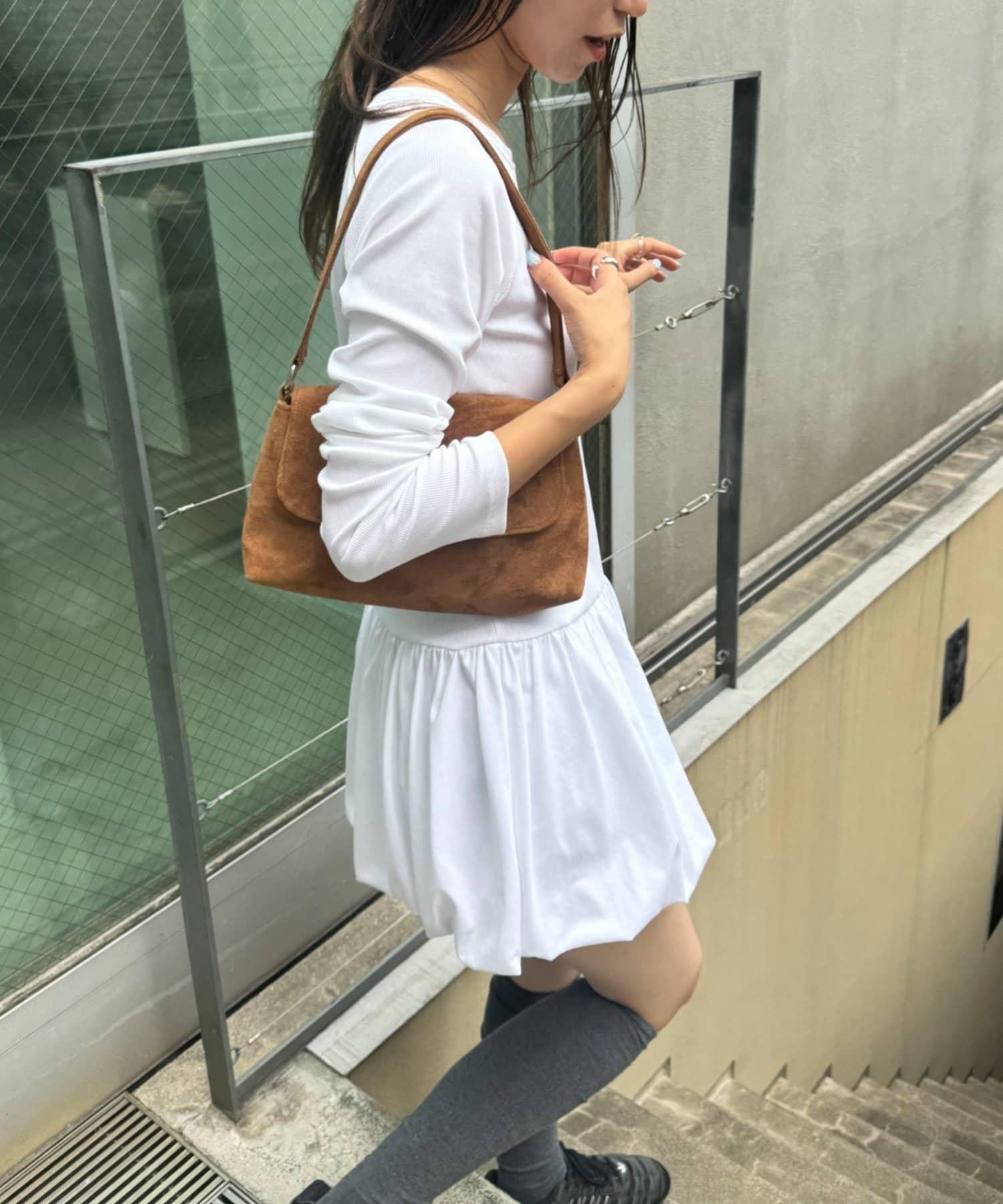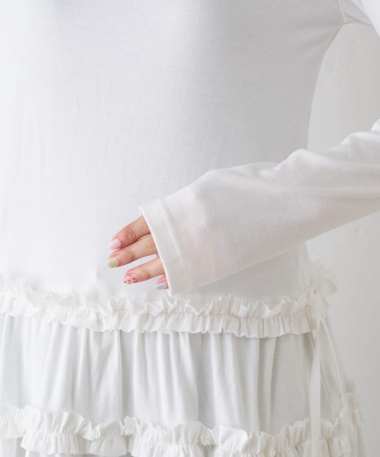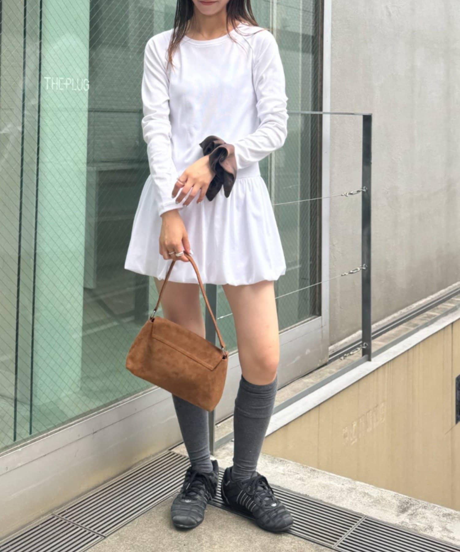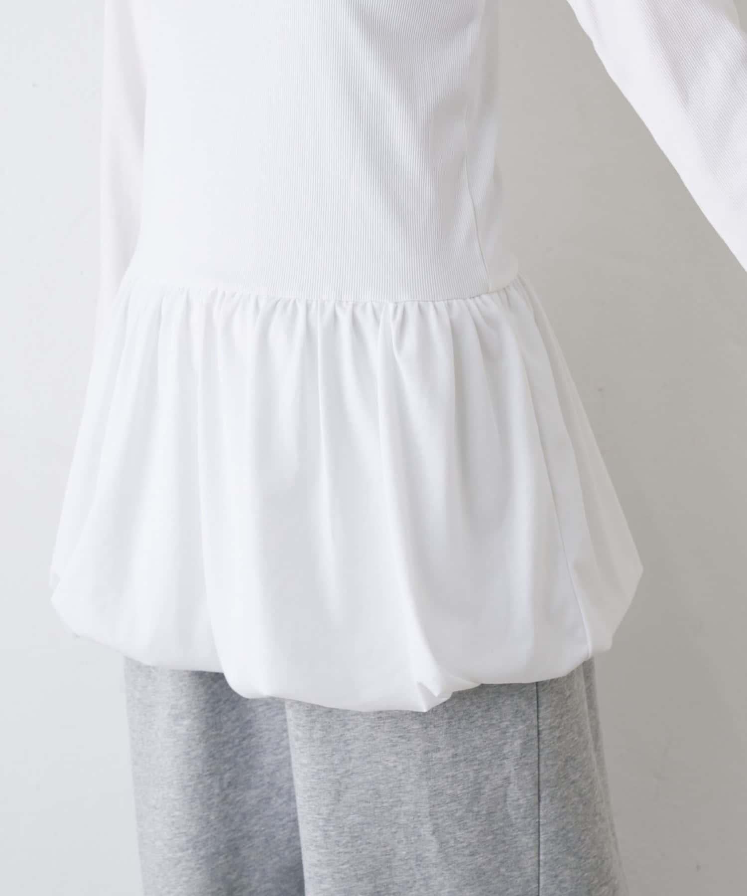 氣球上衣(白色①)的衣身採用羅紋面料,因此也可作為連衣裙穿著!
