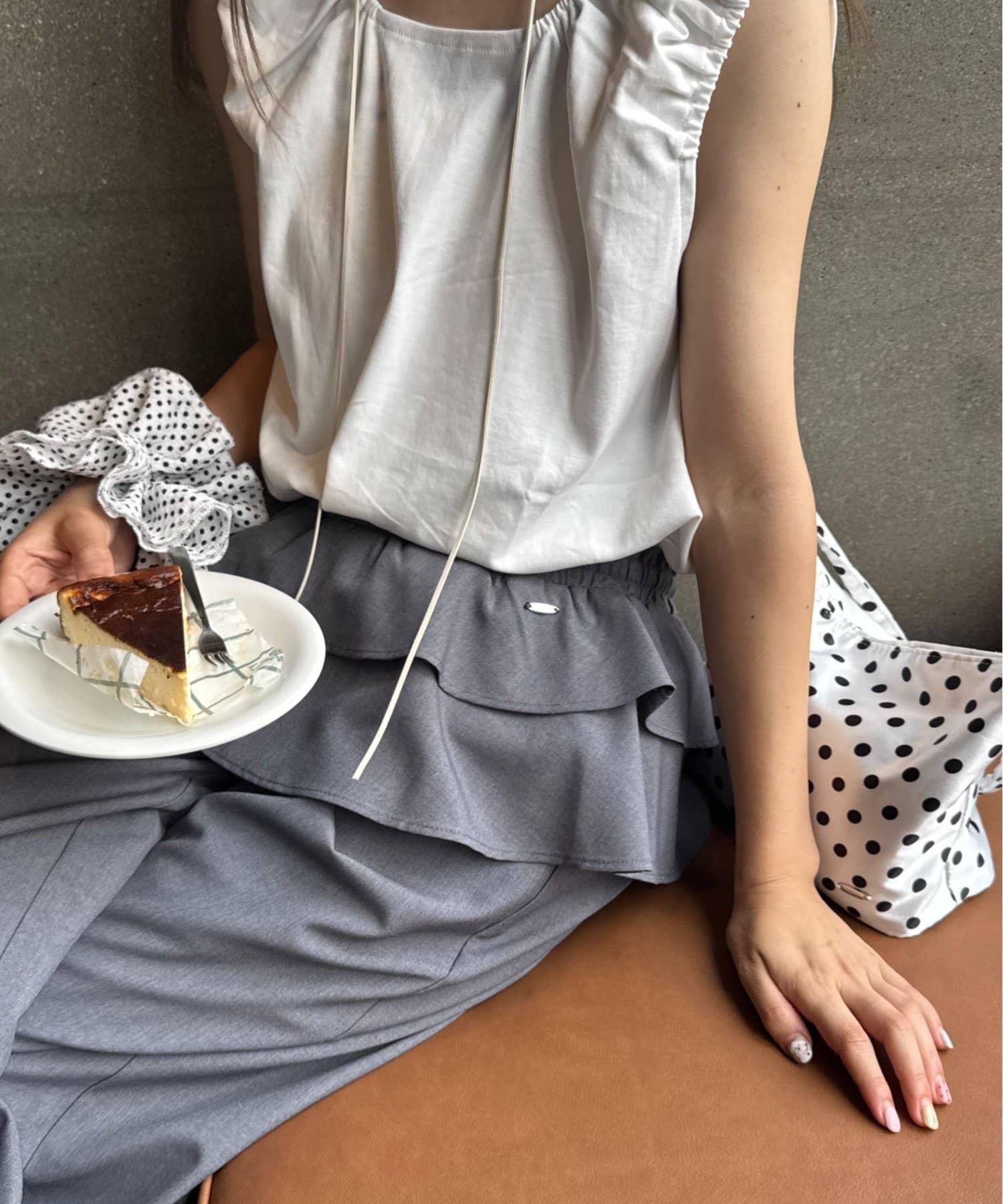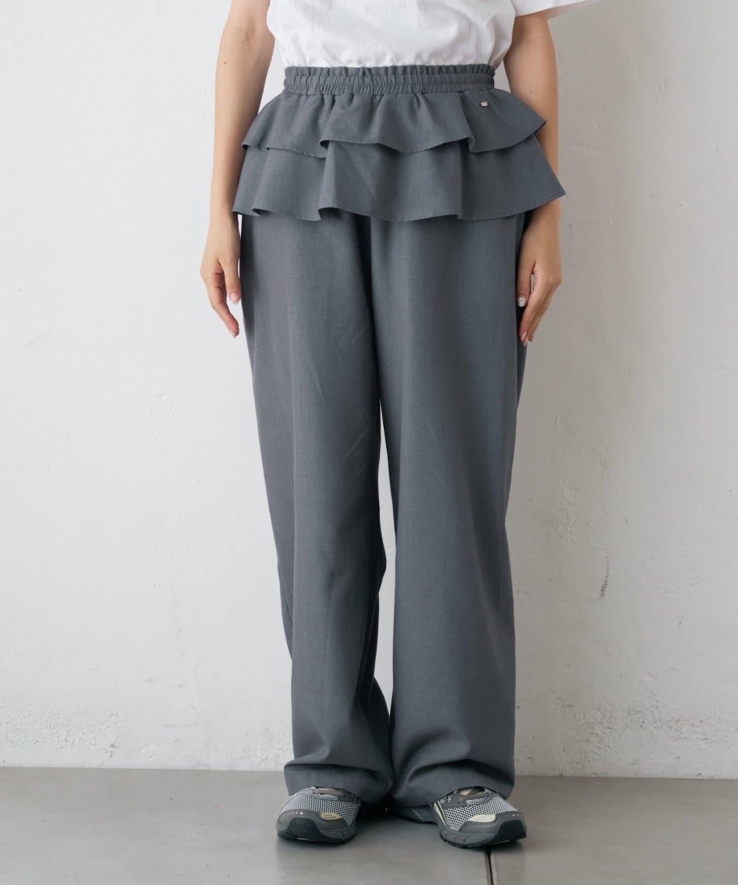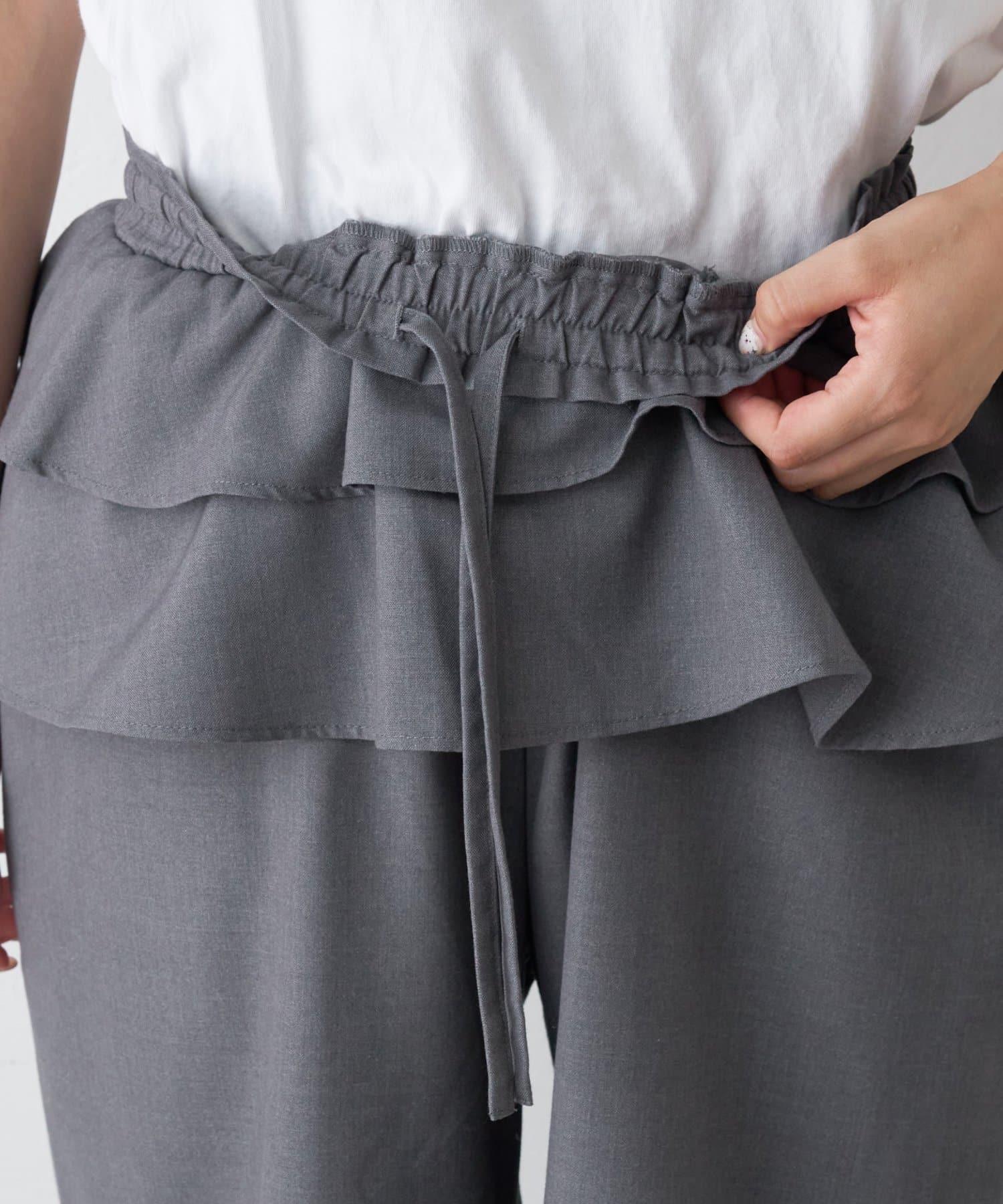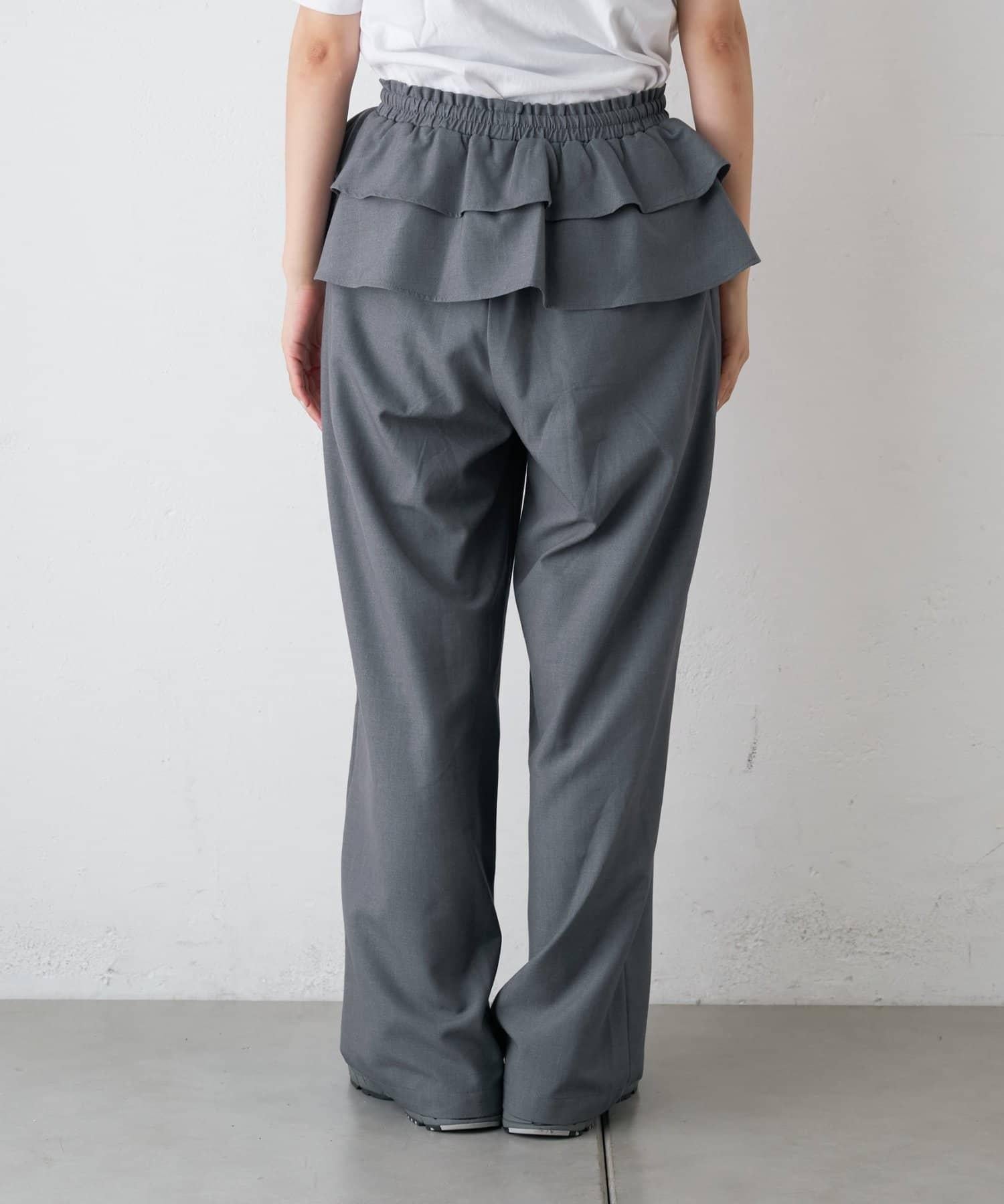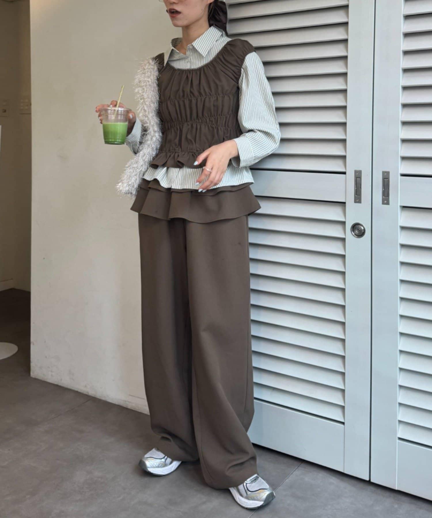 腰部的荷葉邊增加了帥氣的立體效果,成為搭配中的亮點。