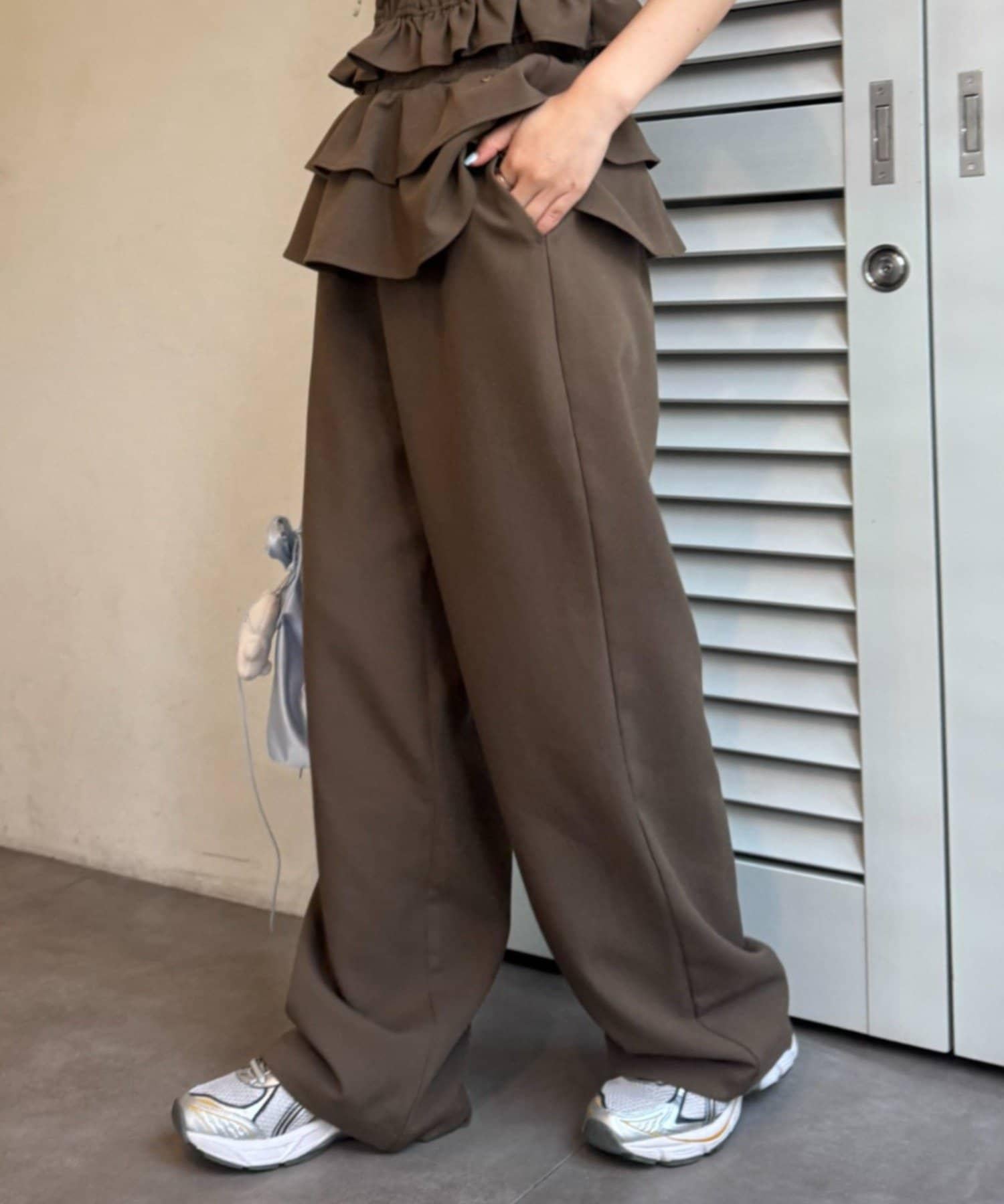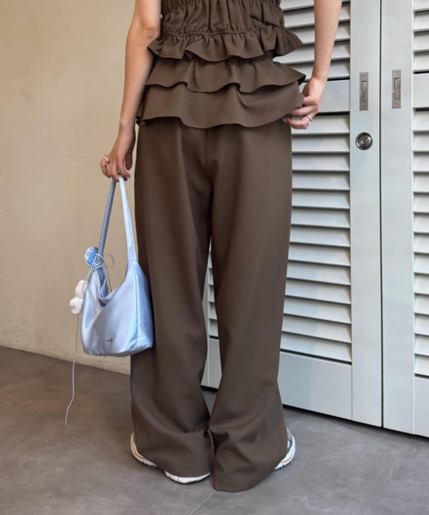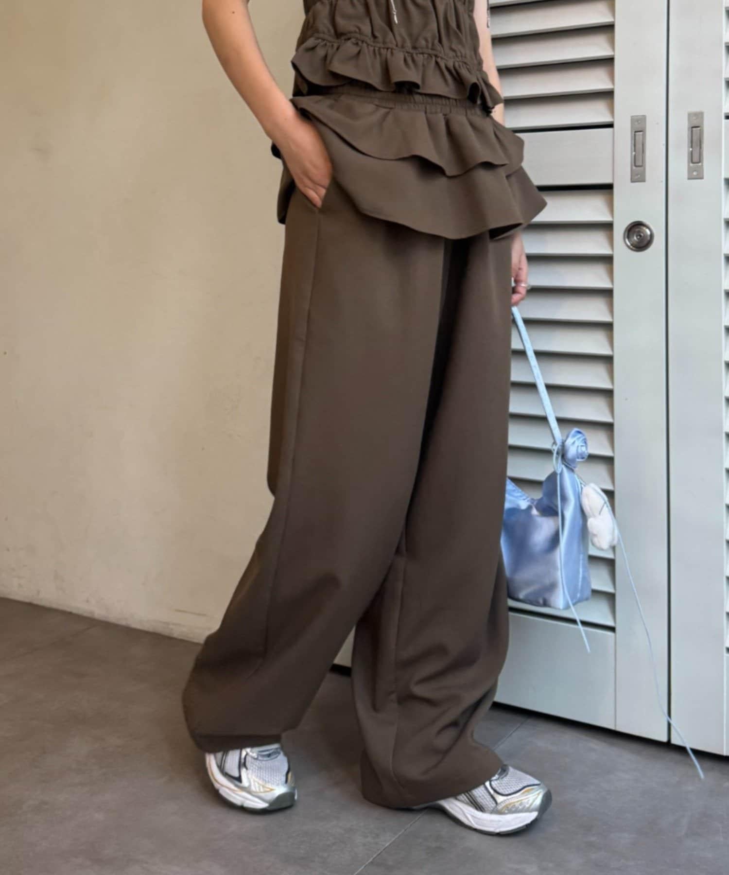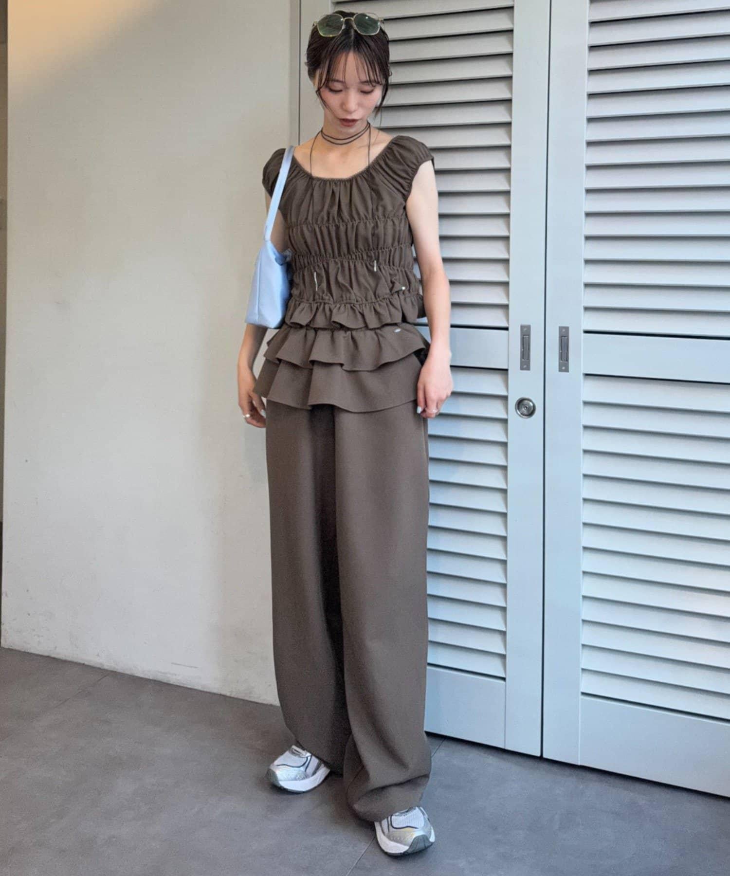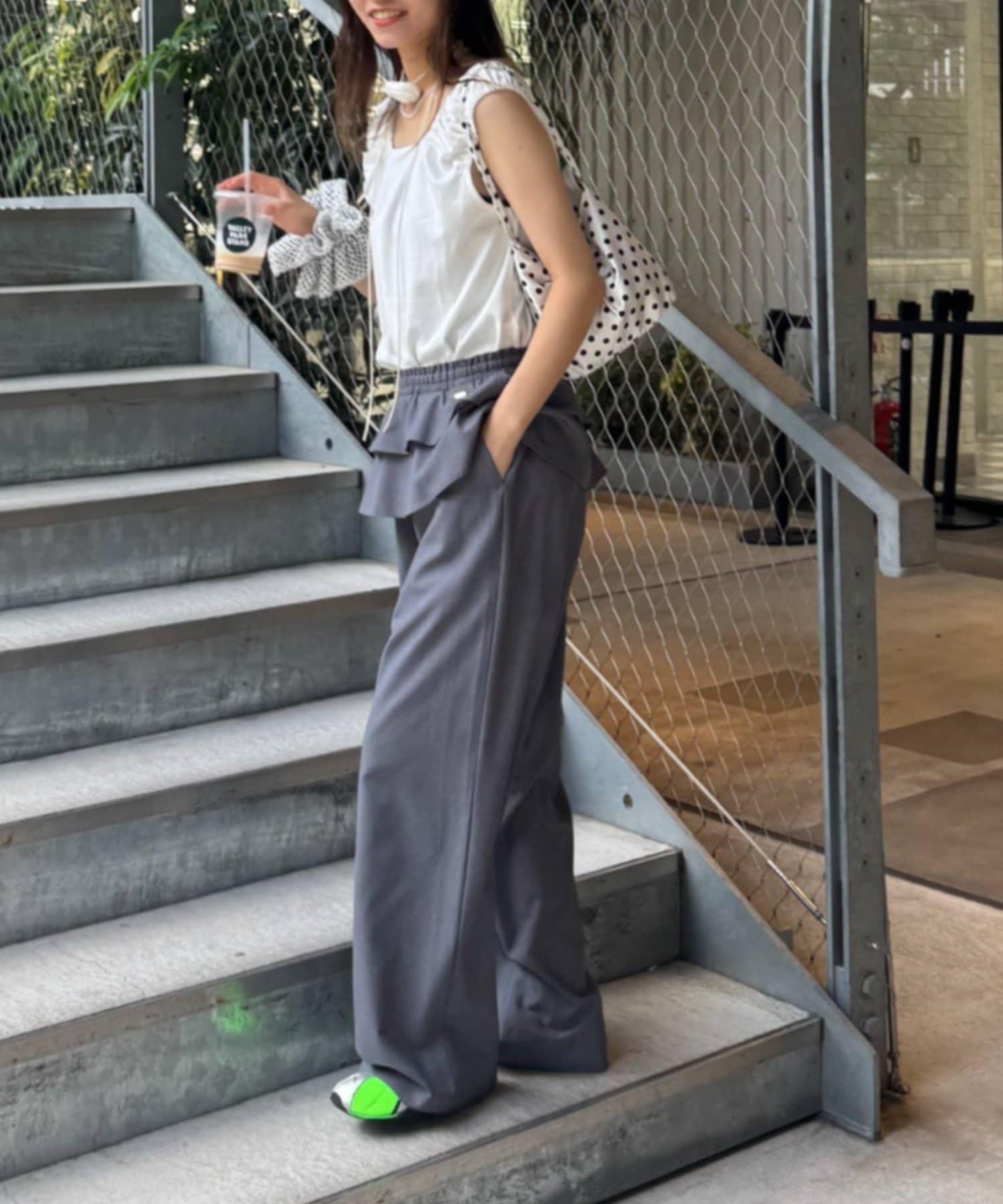 褶皺設計的褲子乍一看很簡單,但穿起來卻給人一種精緻的感覺。