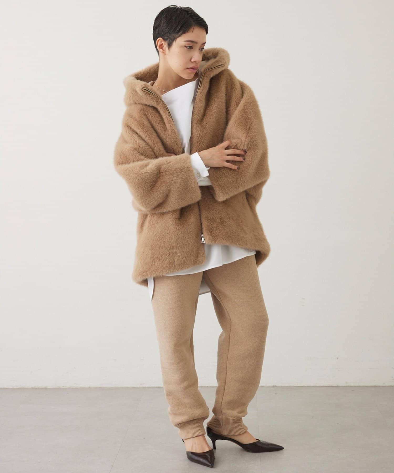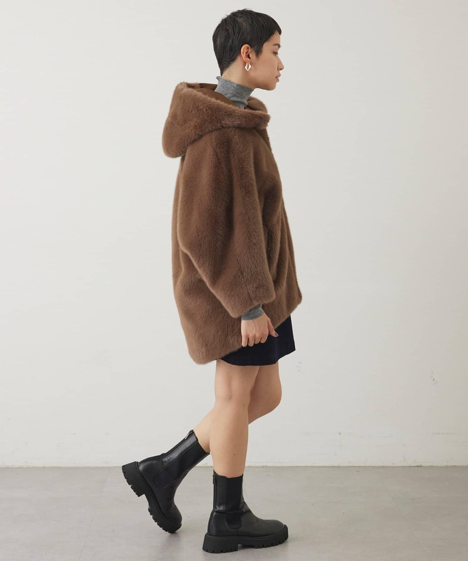 仿麂皮絨與仿皮草粘合在一起,使其具有恰到好處的彈性和厚度,多爾曼和連帽的外形設計也非常美觀。