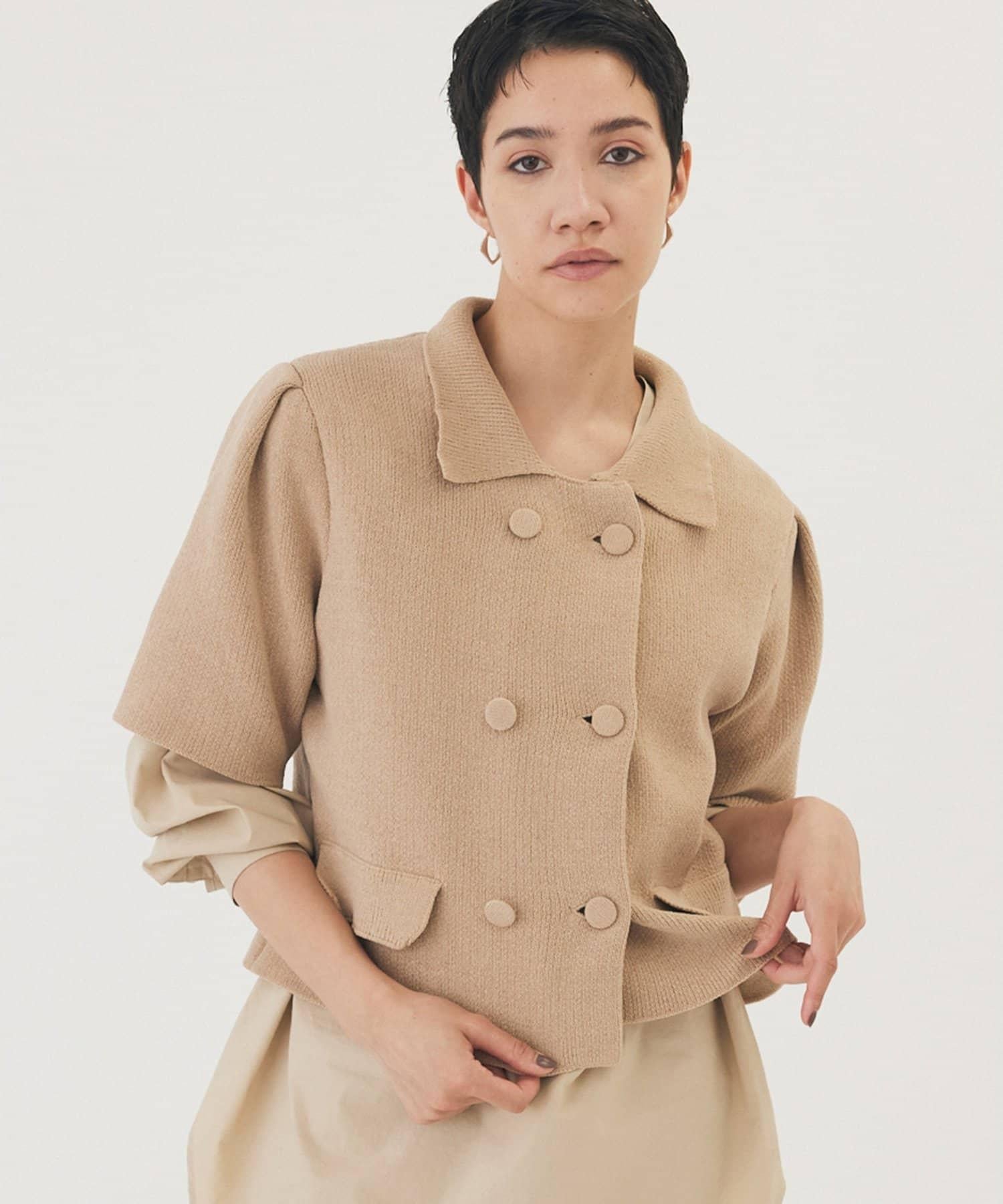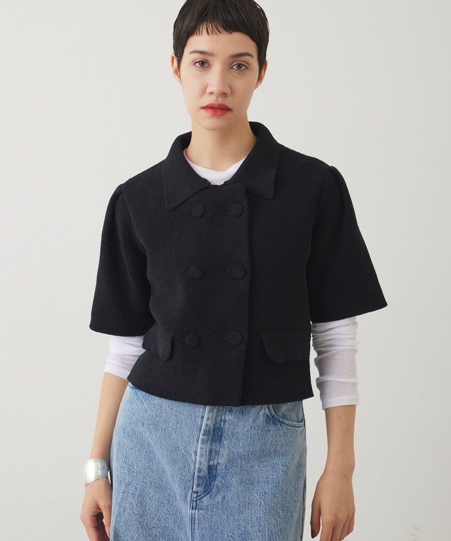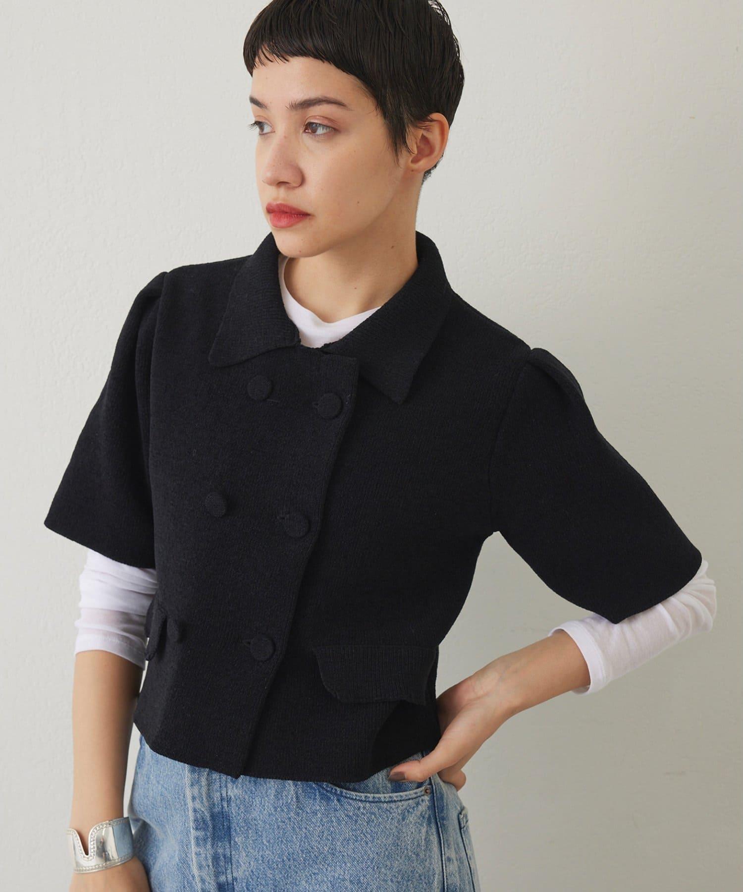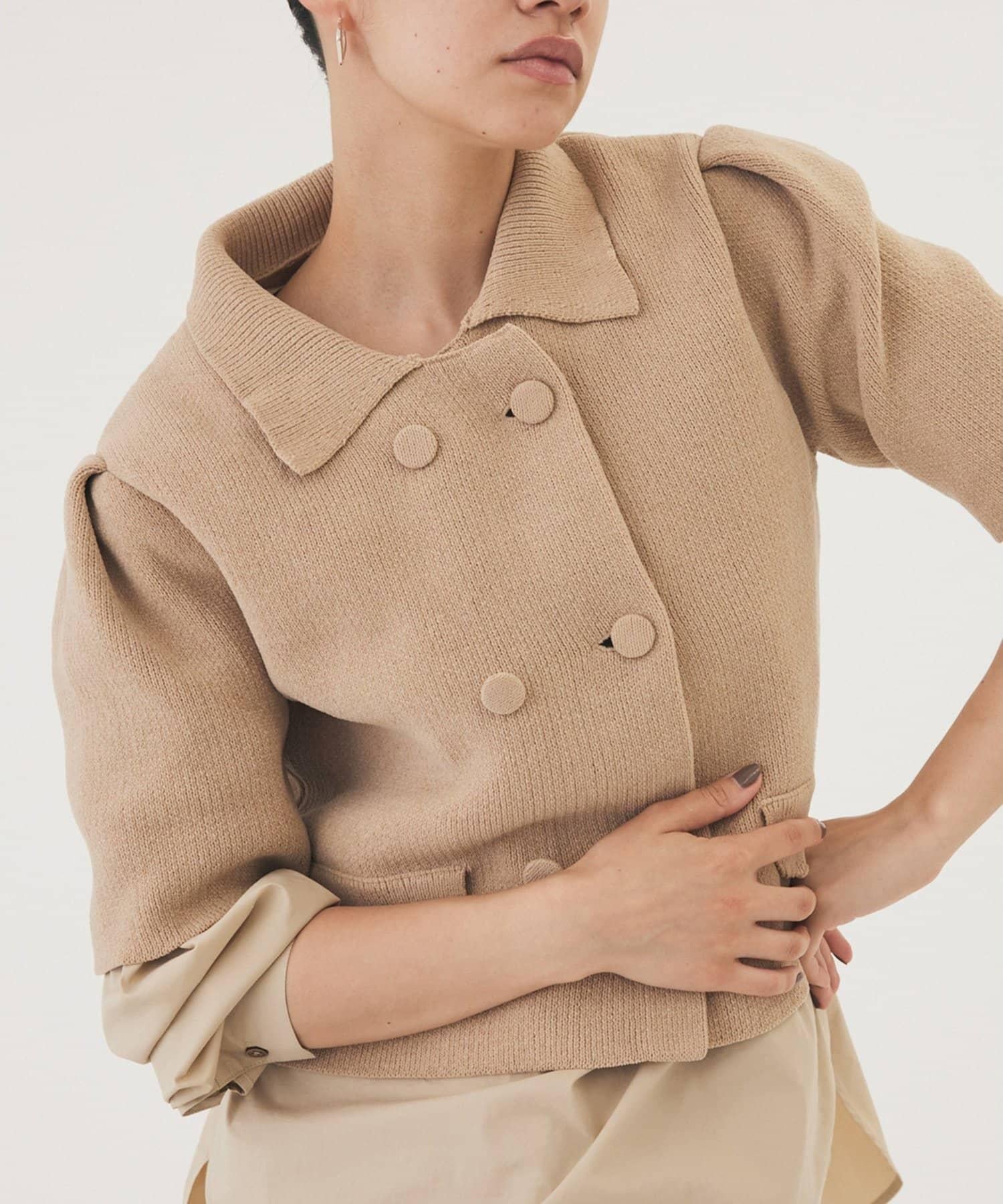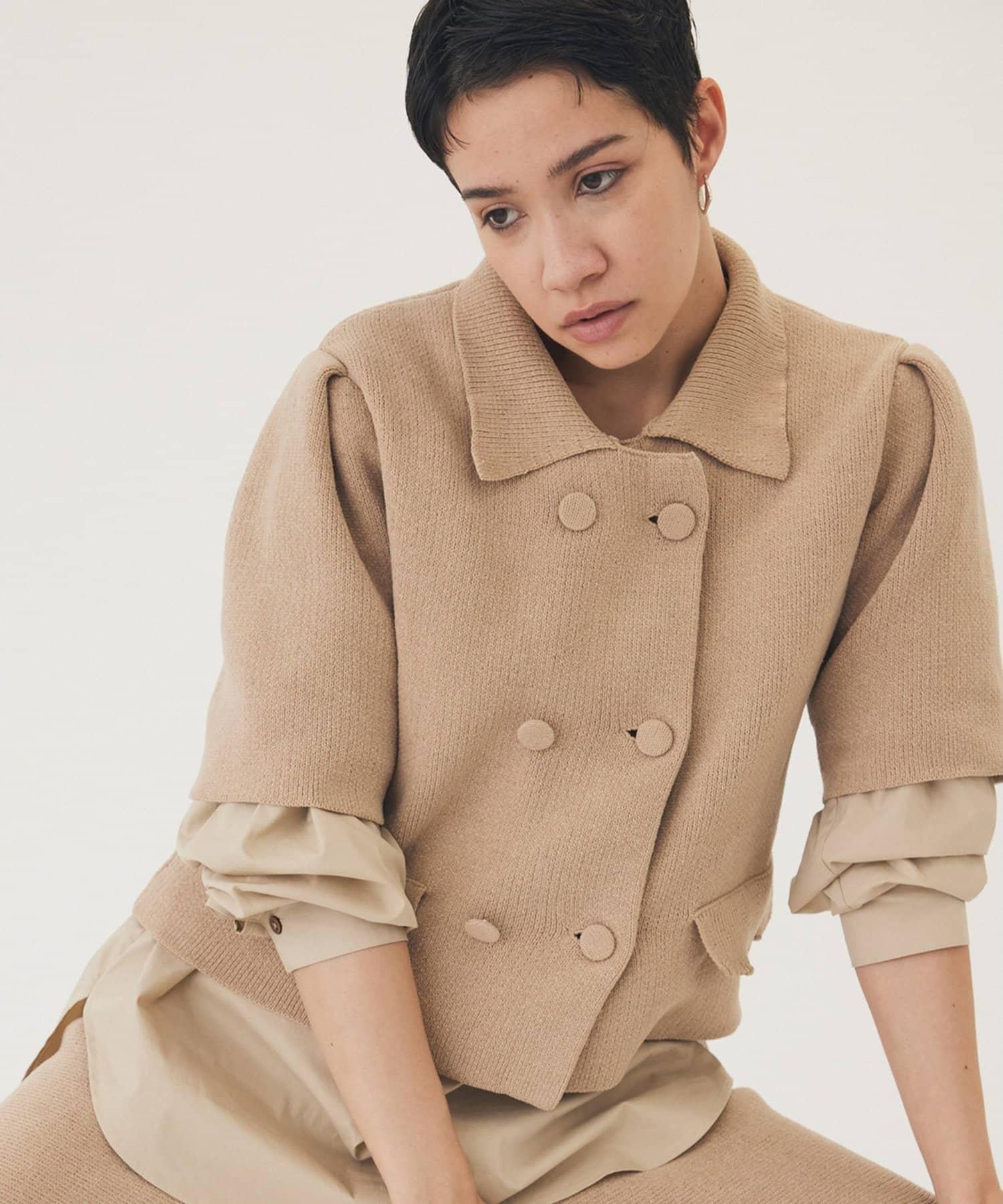 衣領和雙排扣的設計使這款單品具有短袖夾克的感覺。
