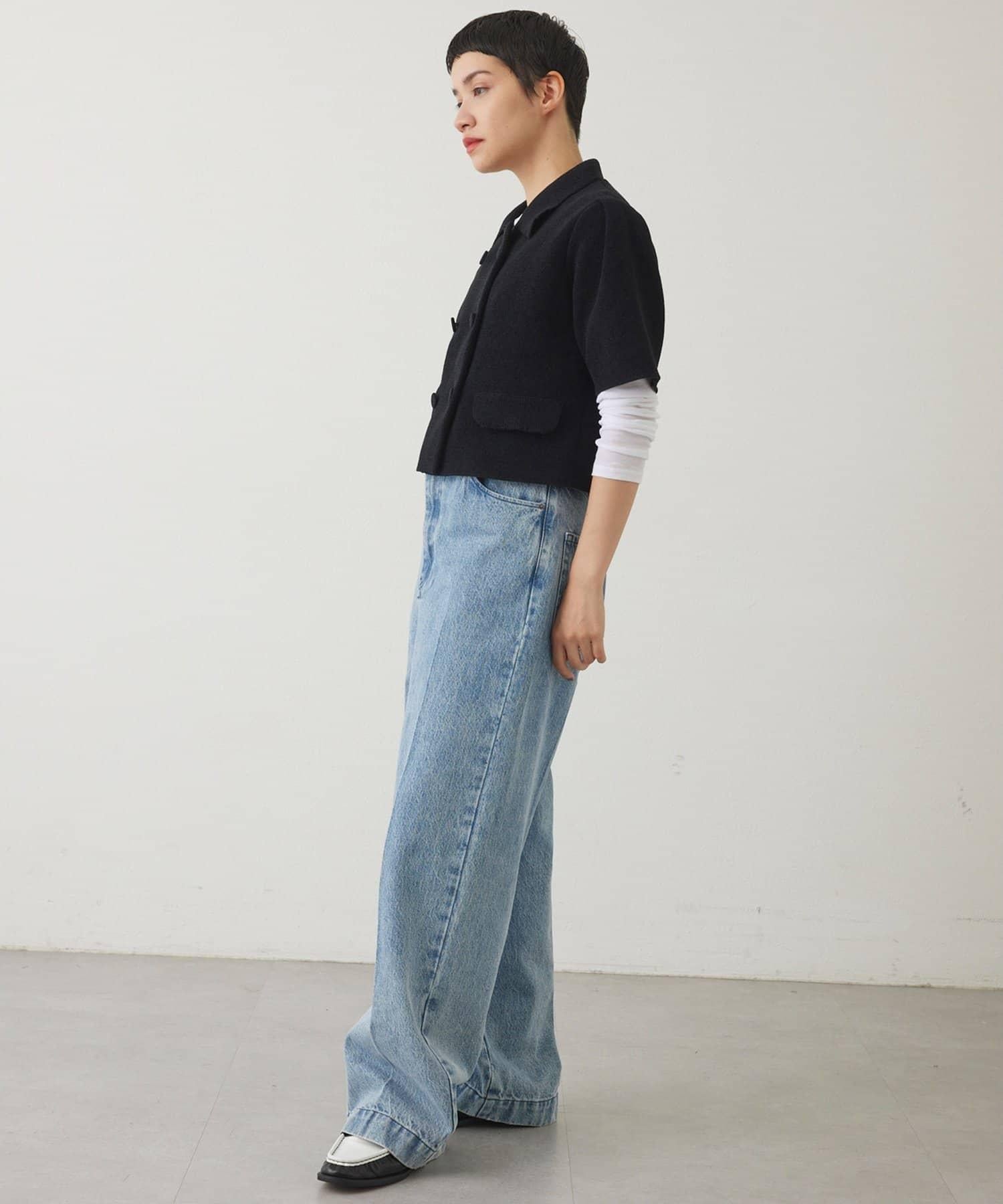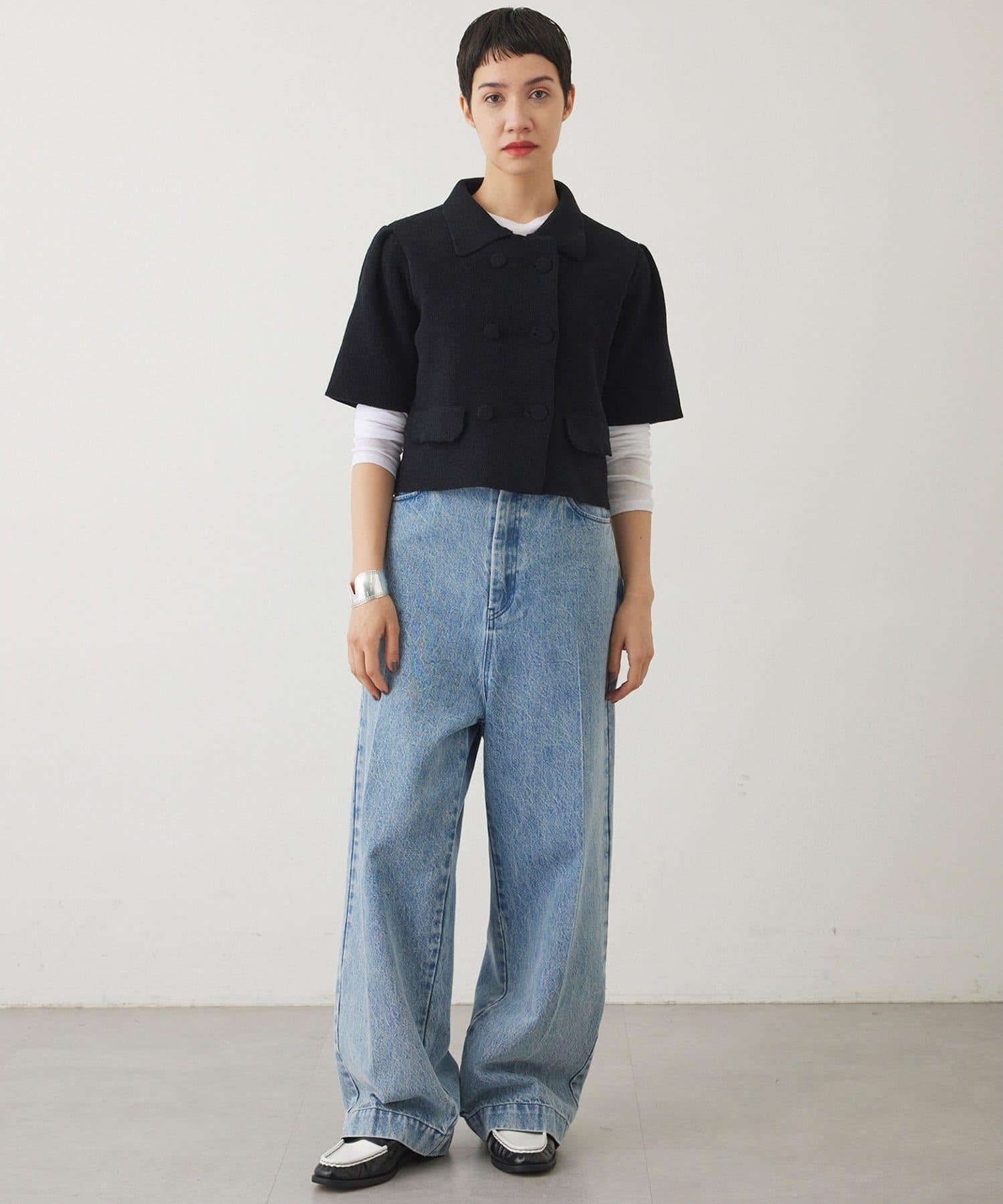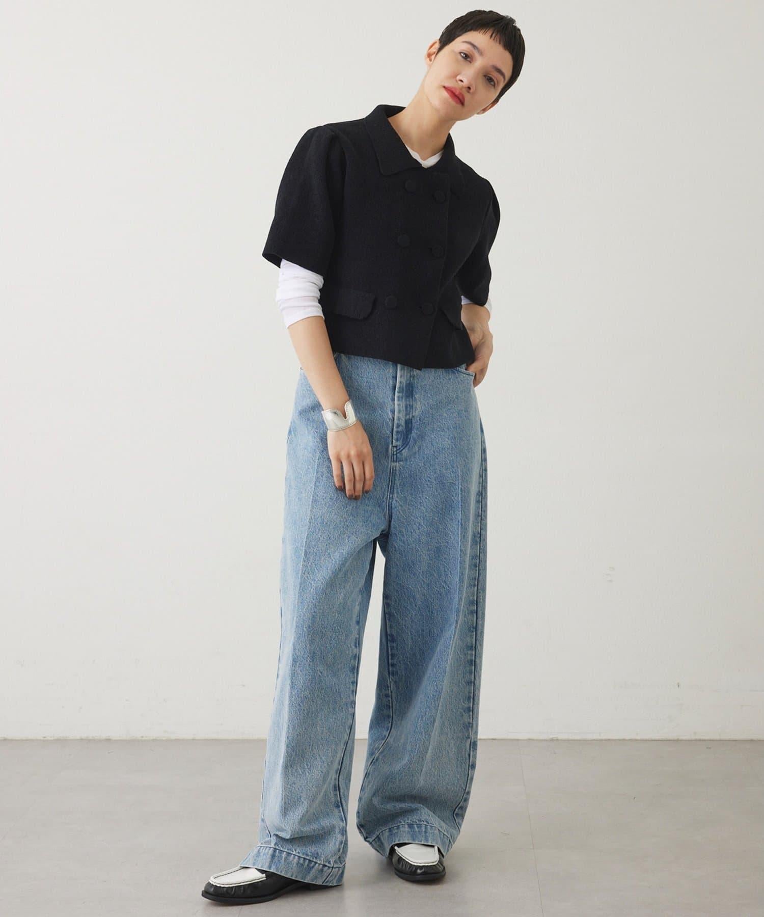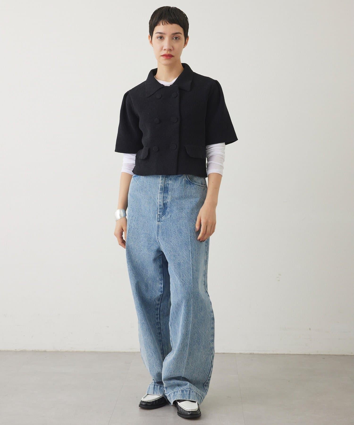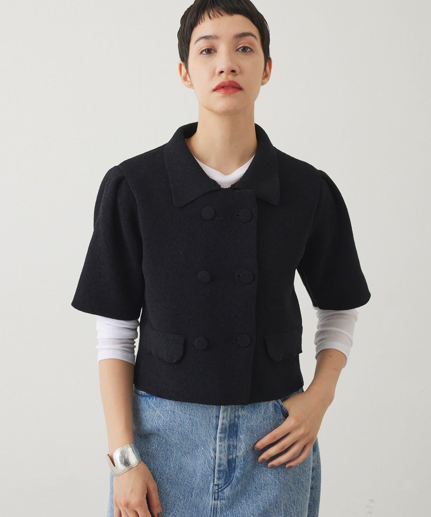 衣領和雙排扣的設計使這款單品具有短袖夾克的感覺。