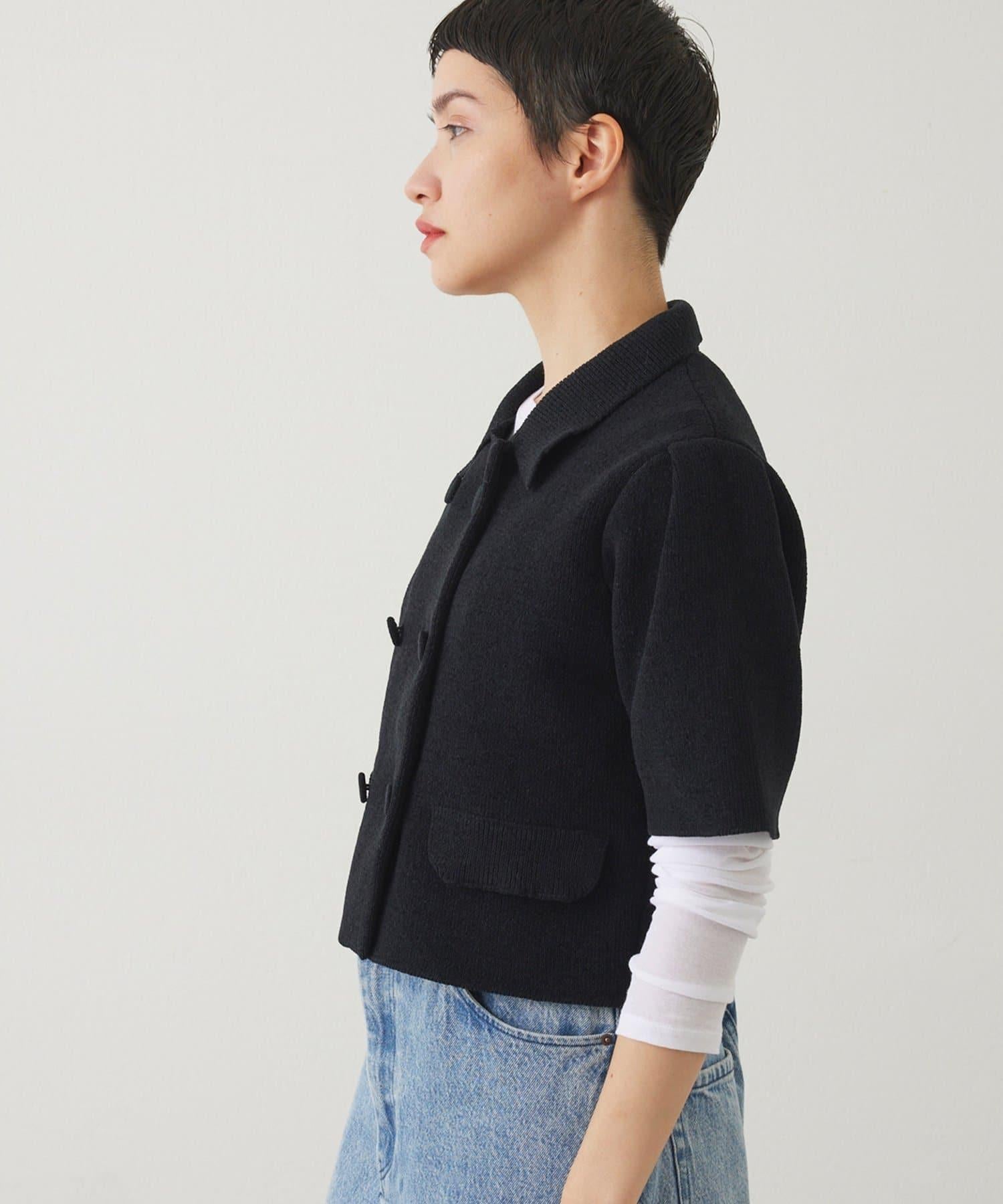 短款開衫由微微隆起的絲絨狀紗線製成。