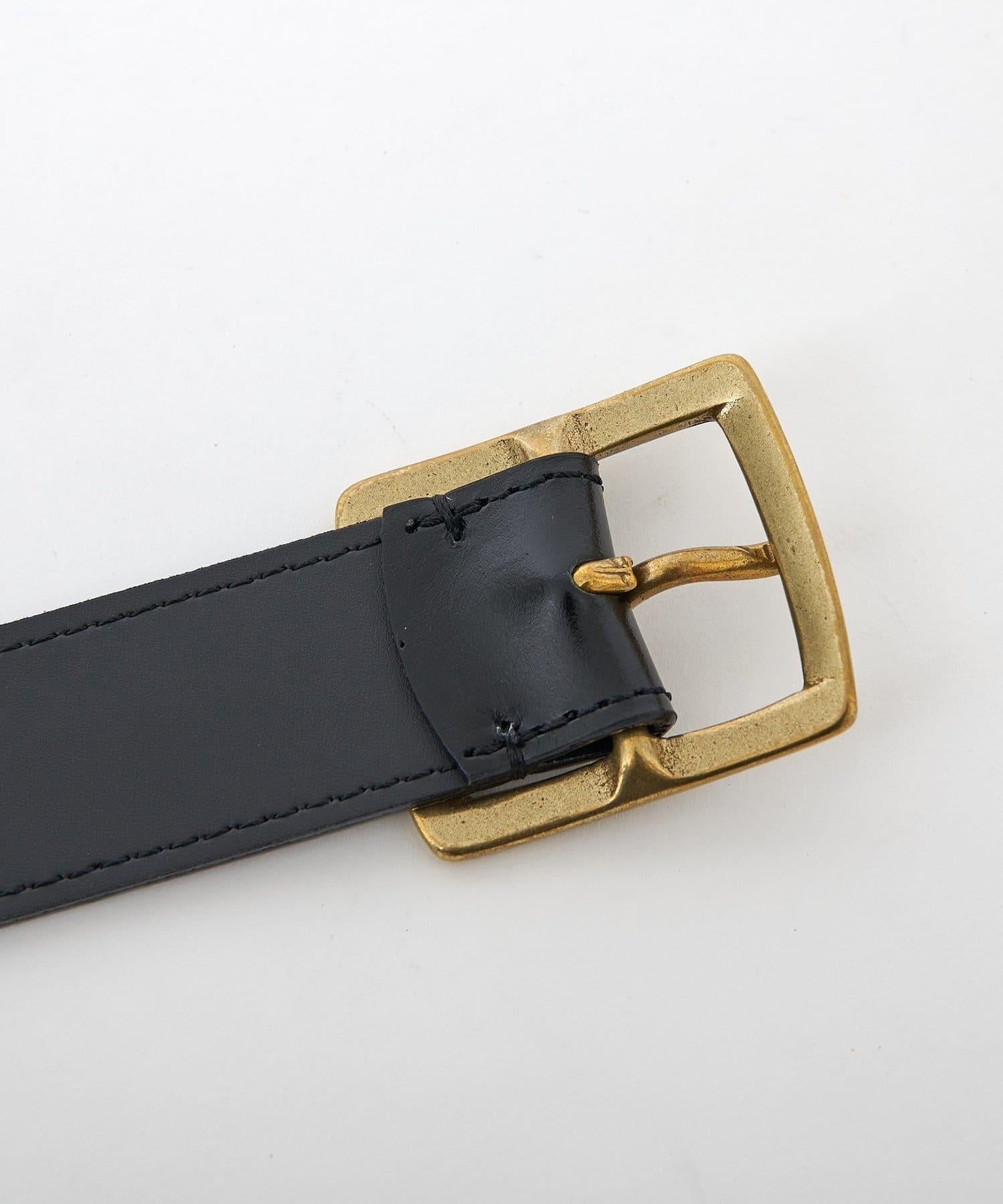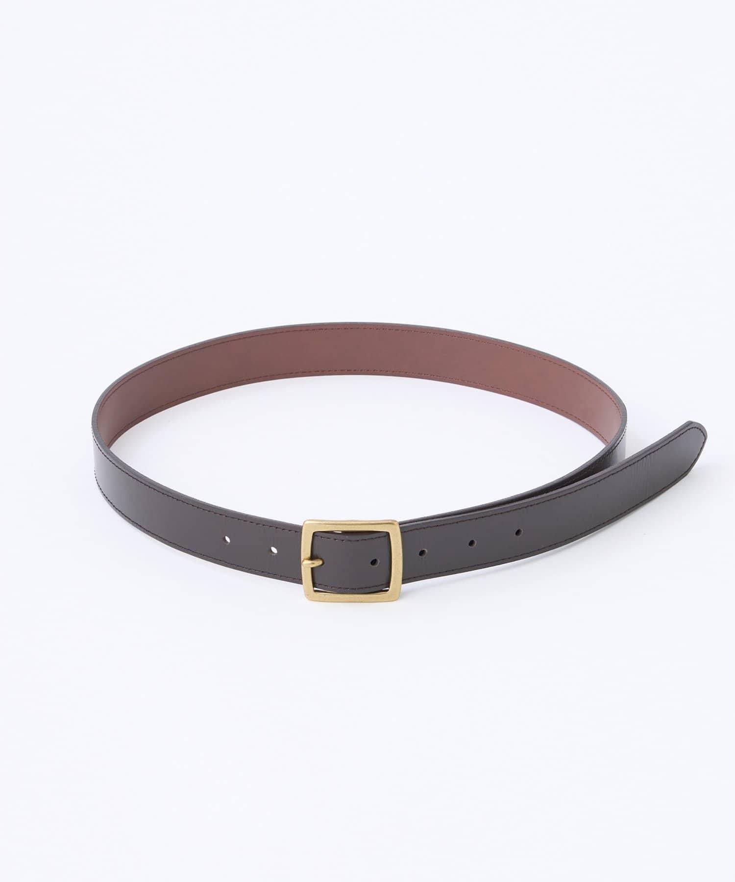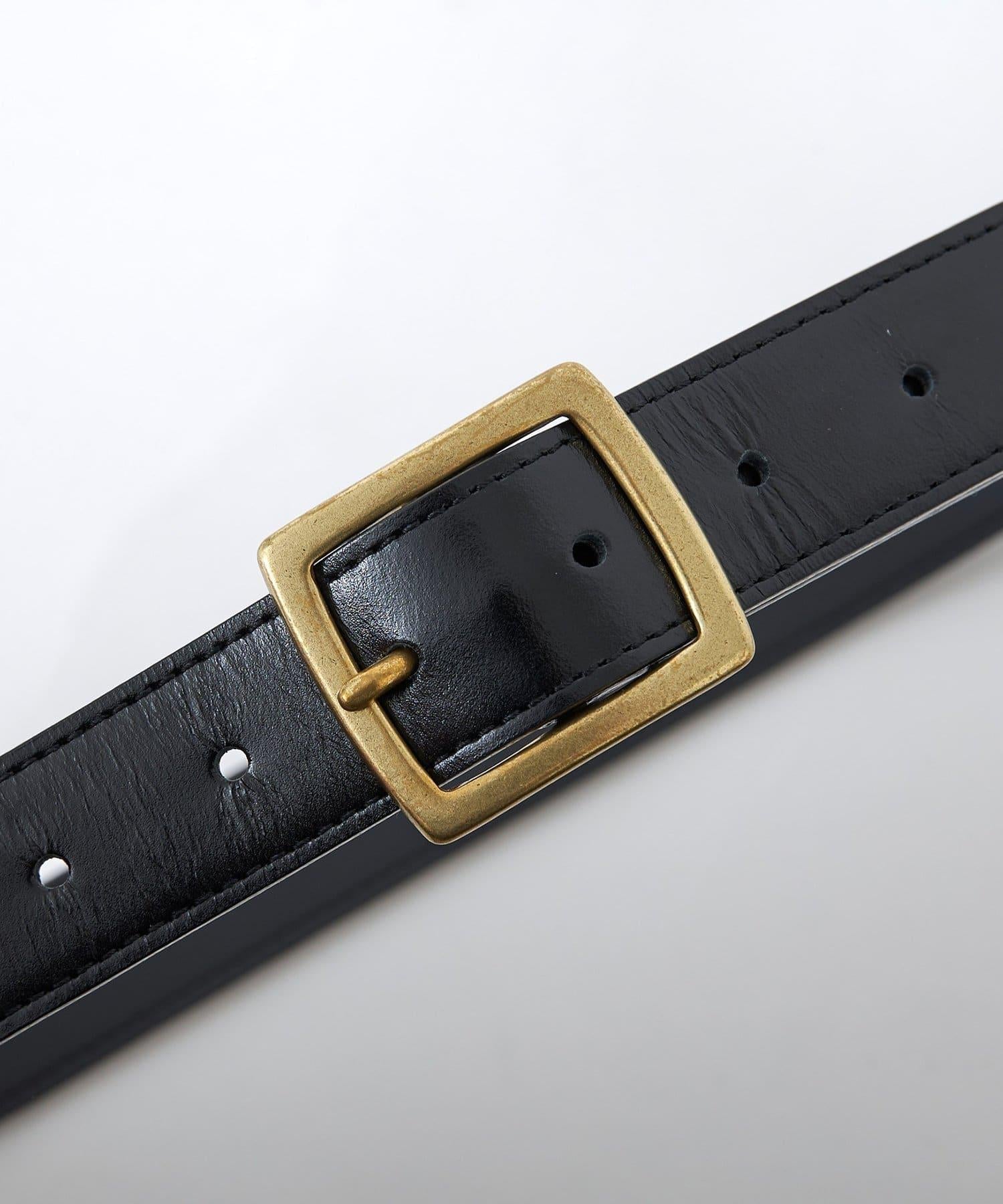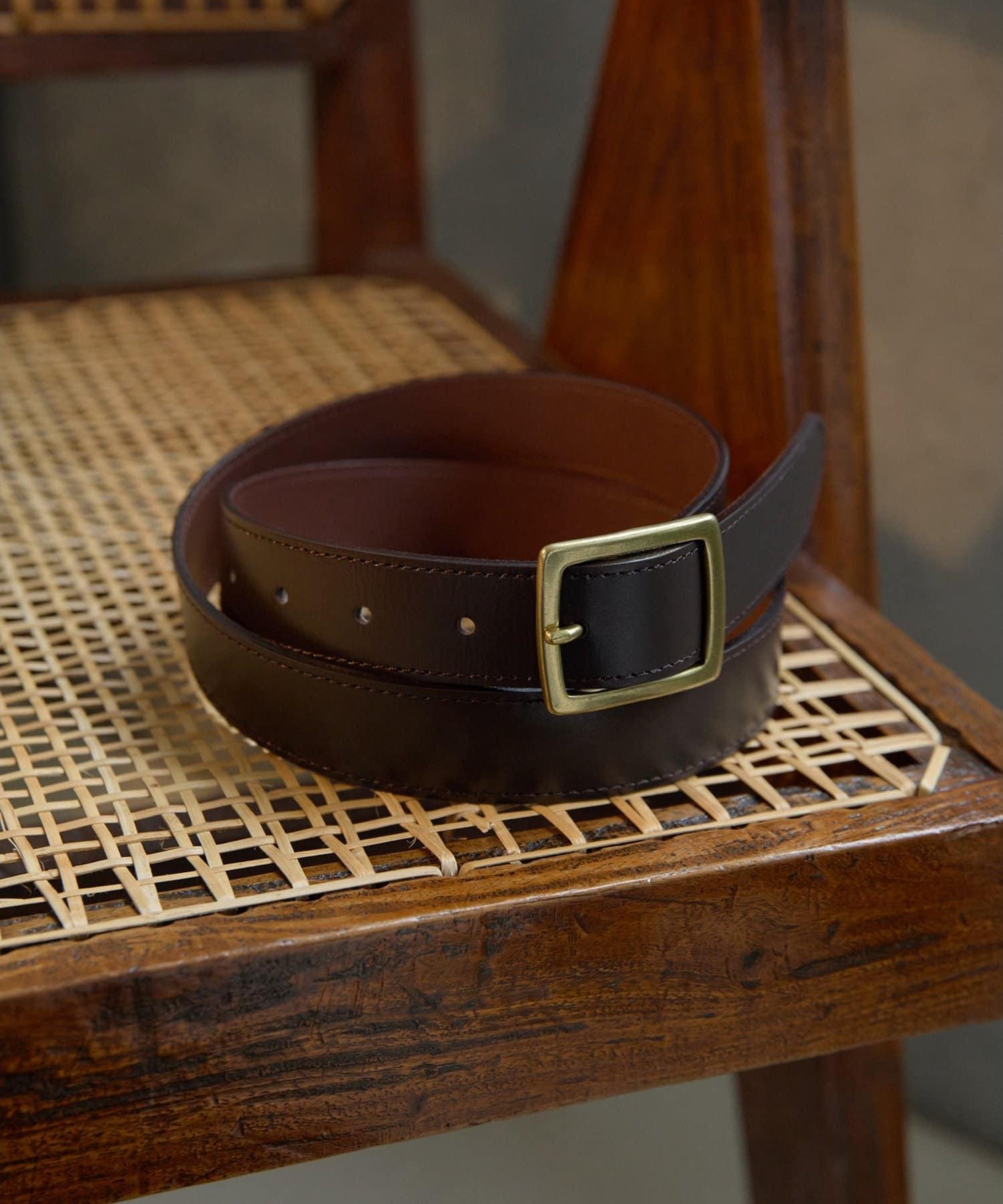 這款真皮腰帶配有方形帶扣,看起來十分利落。