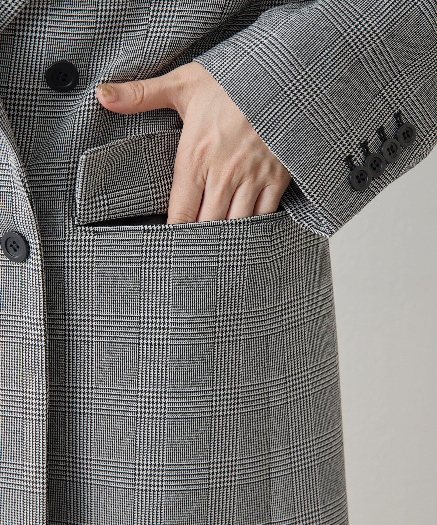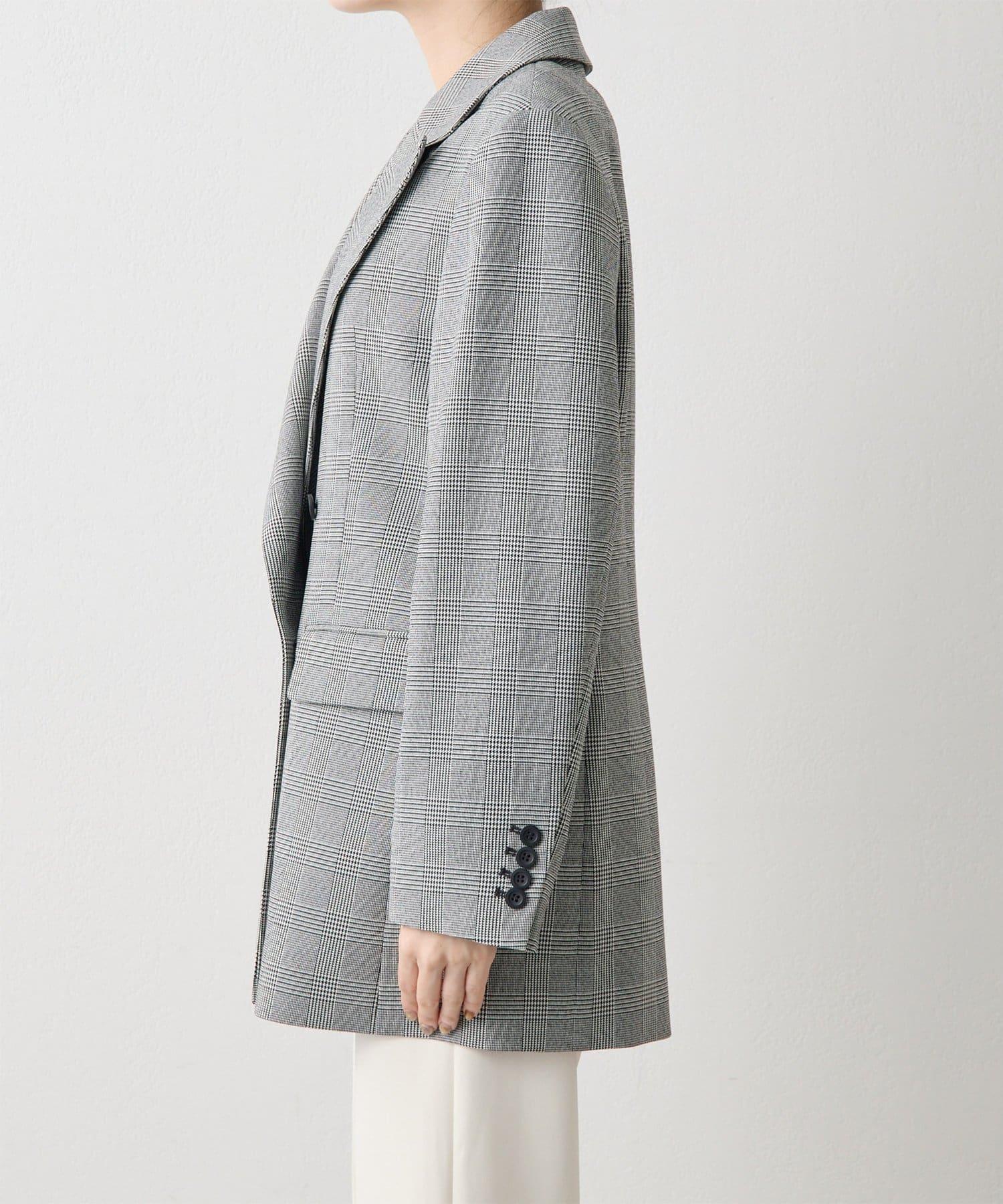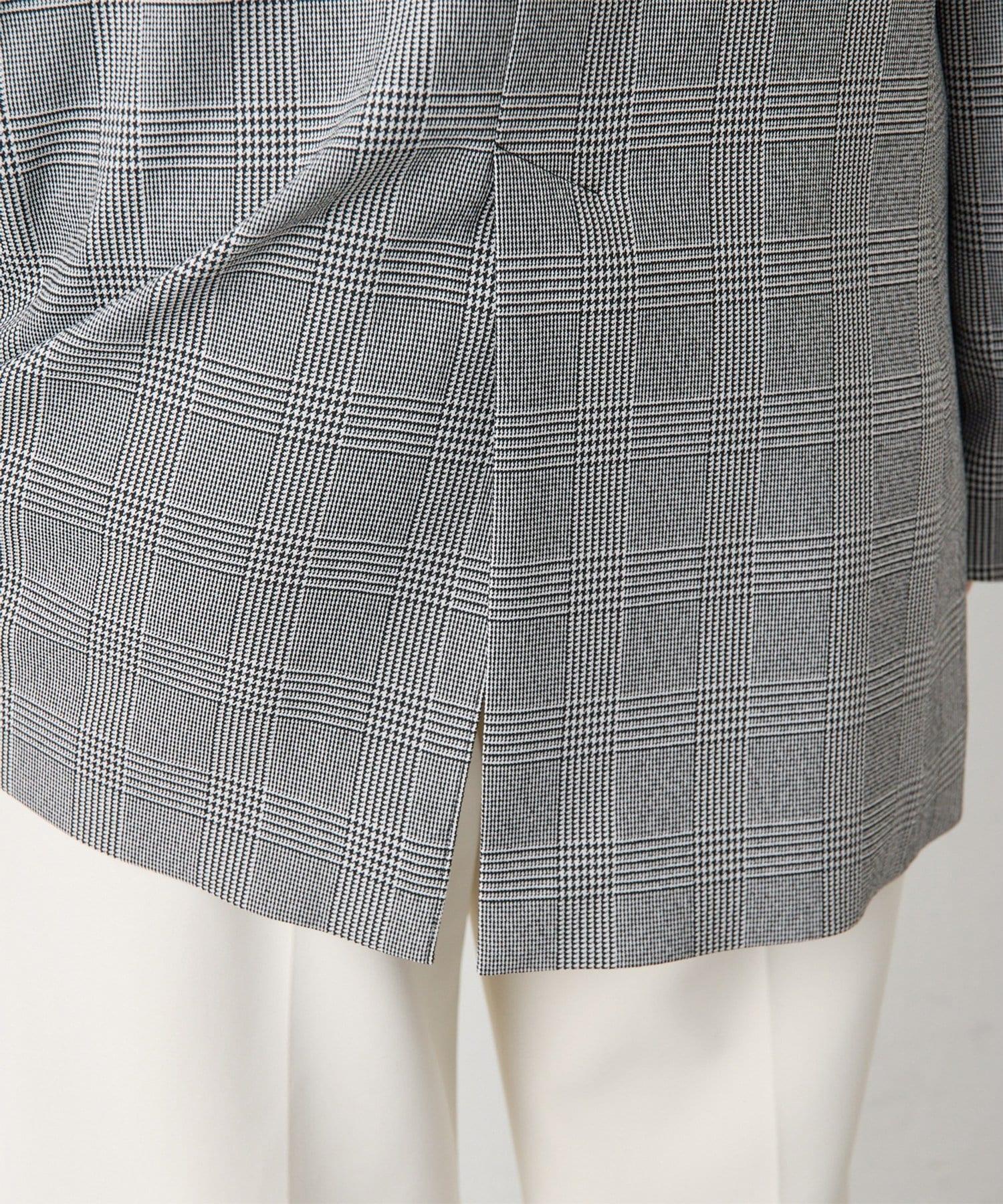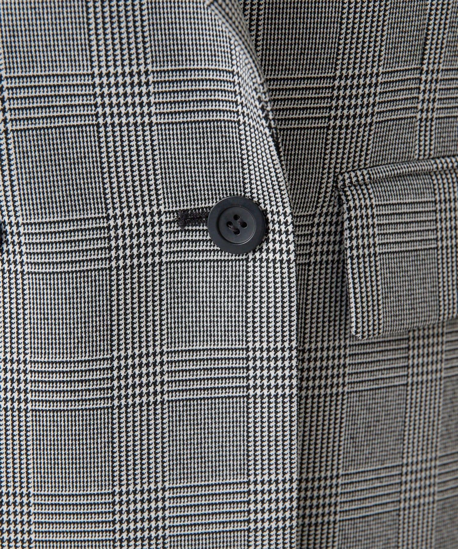 這款格紋面料由 100% 聚酯纖維製成,具有羊毛的質感和豐滿度。