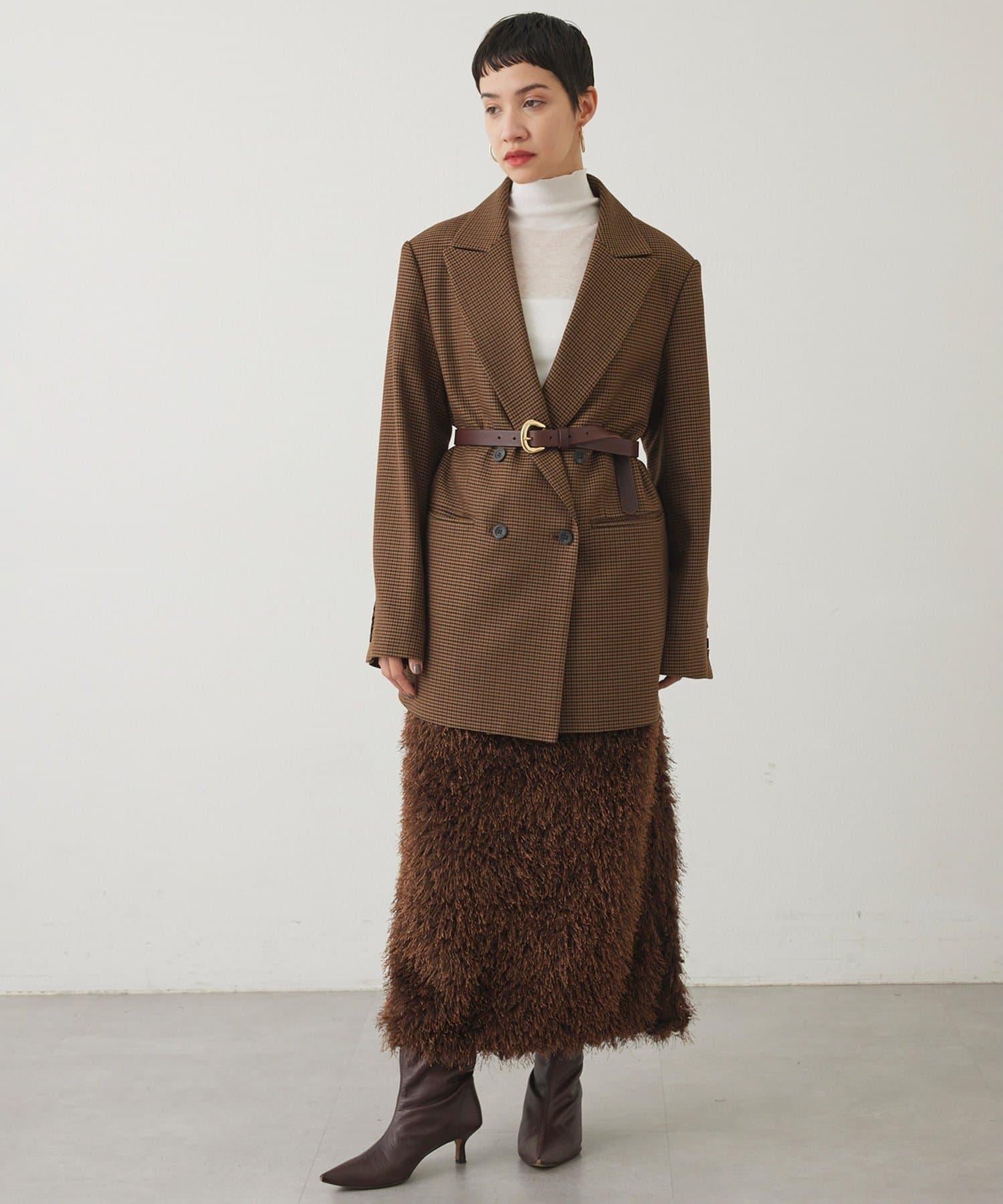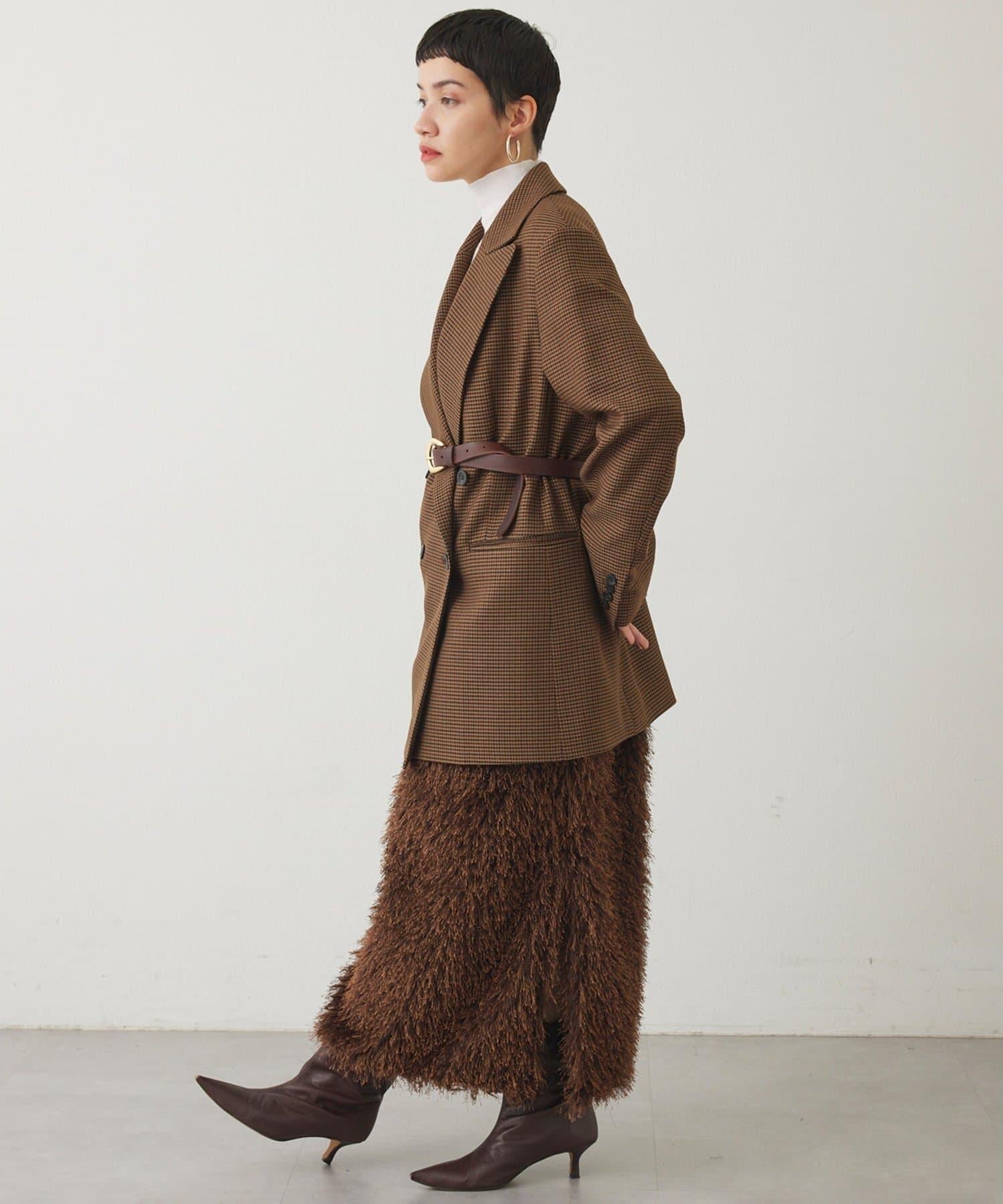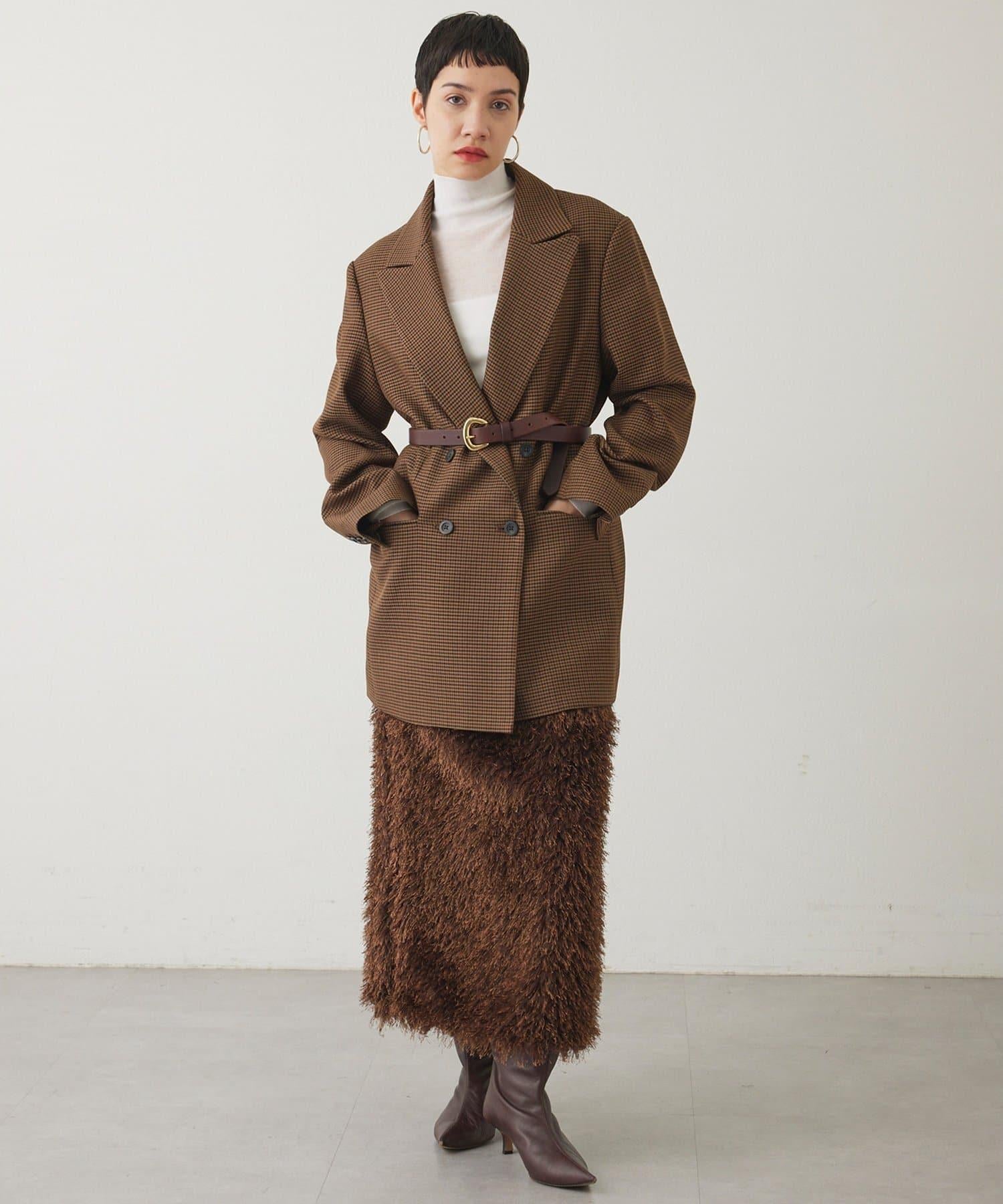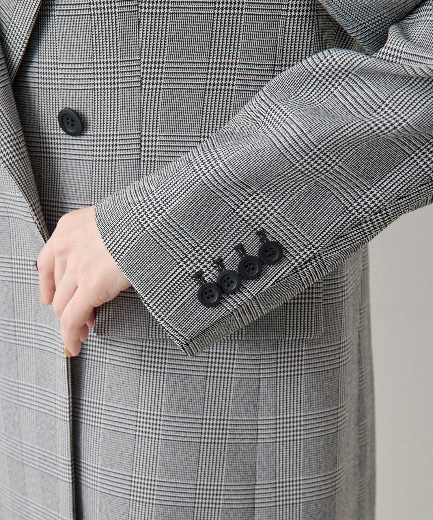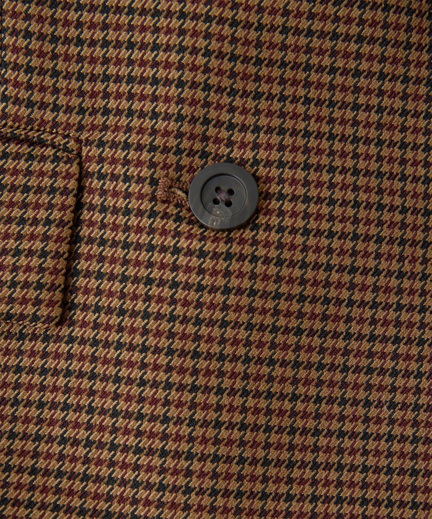 這款格紋面料由 100% 聚酯纖維製成,具有羊毛的質感和豐滿度。
