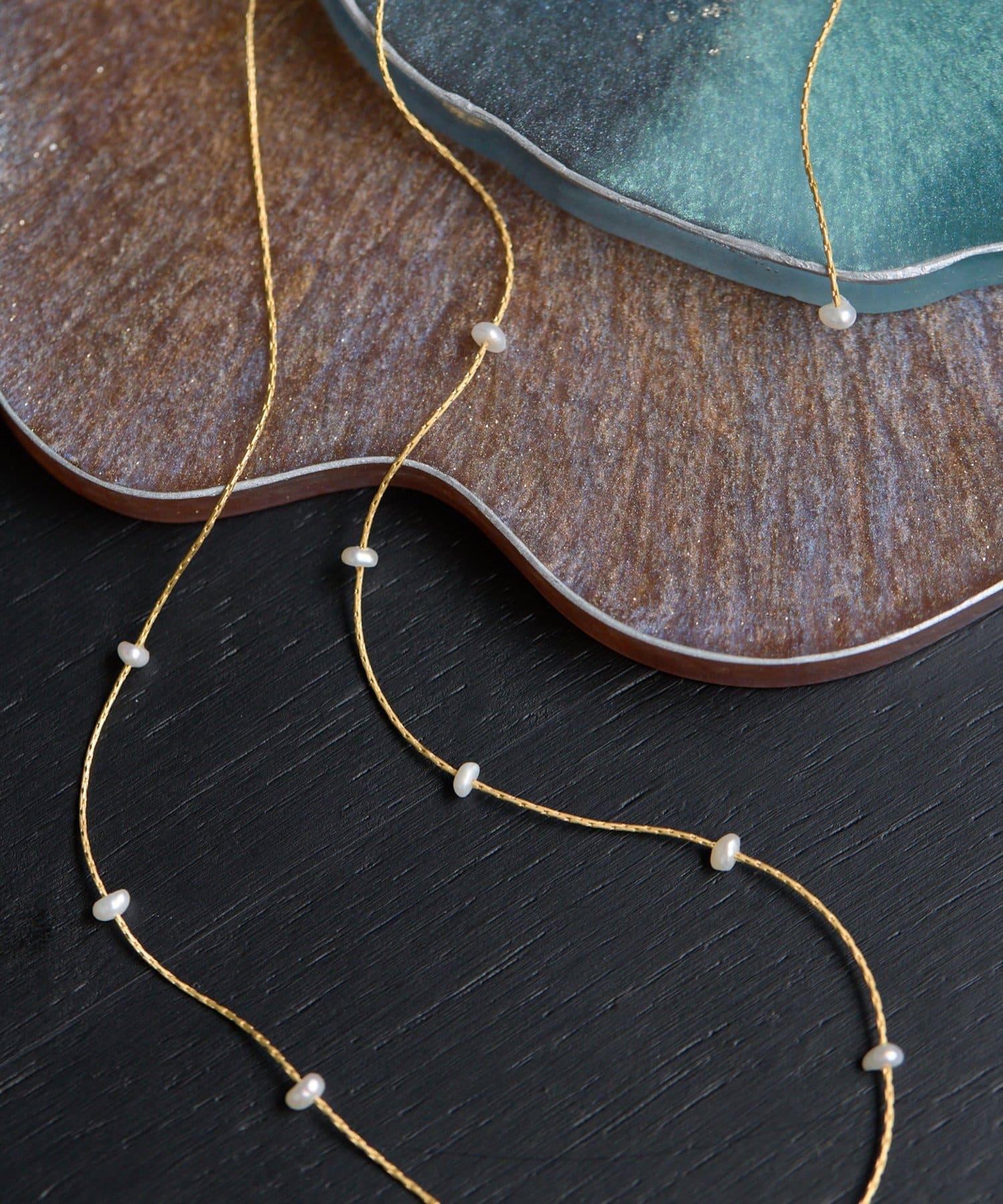 吊墜項鍊,精緻的鏈條上散落著小顆淡水珍珠。