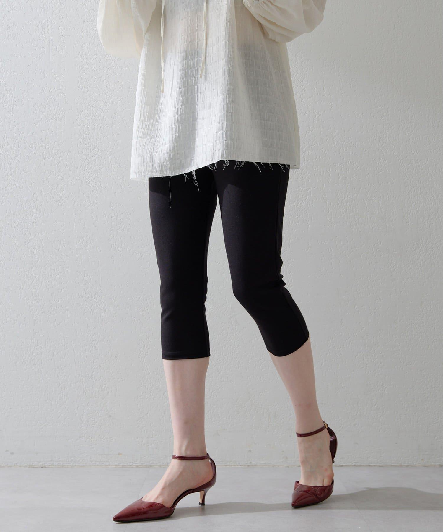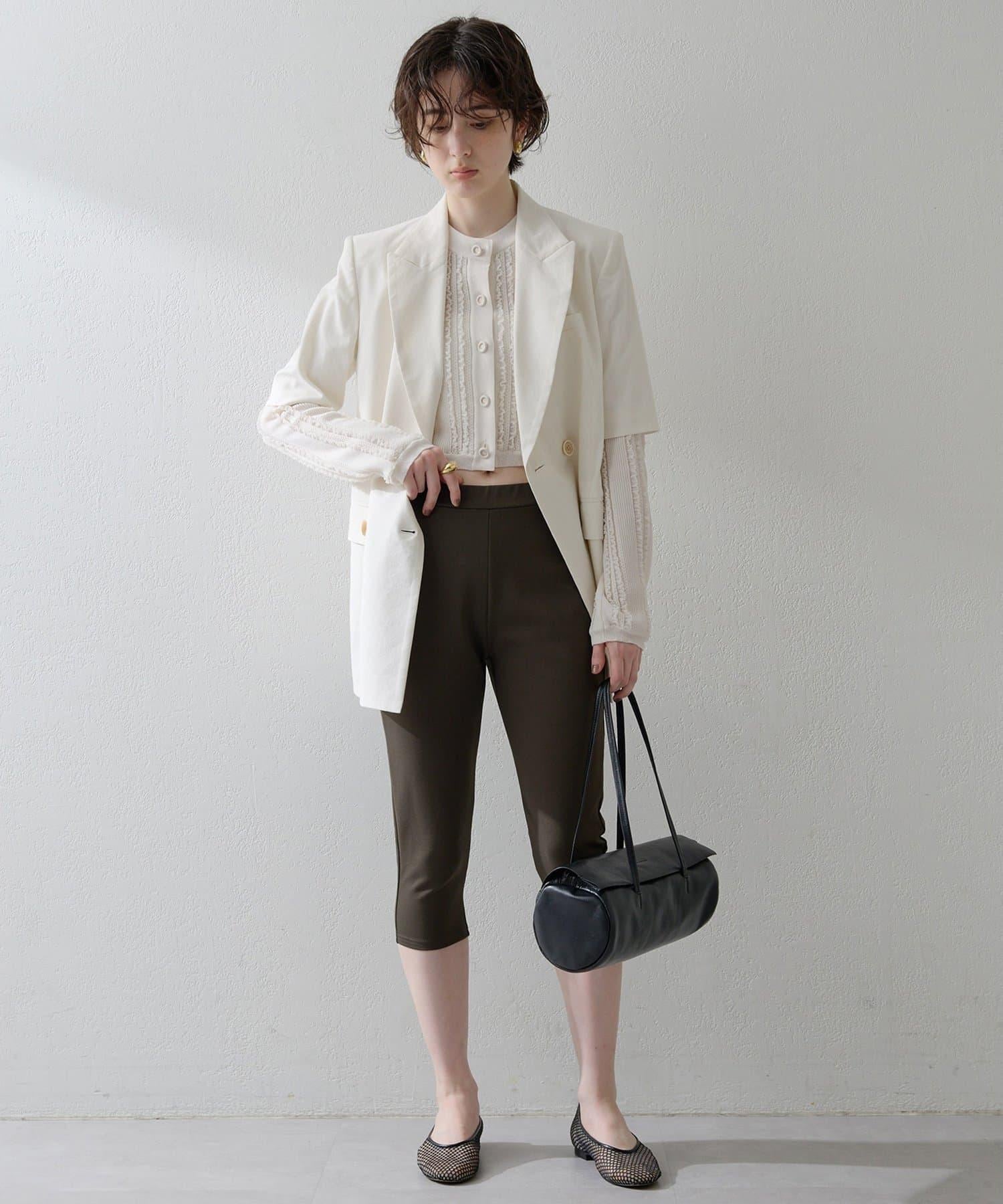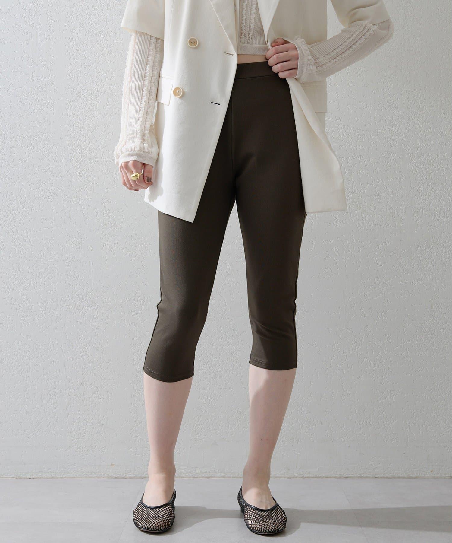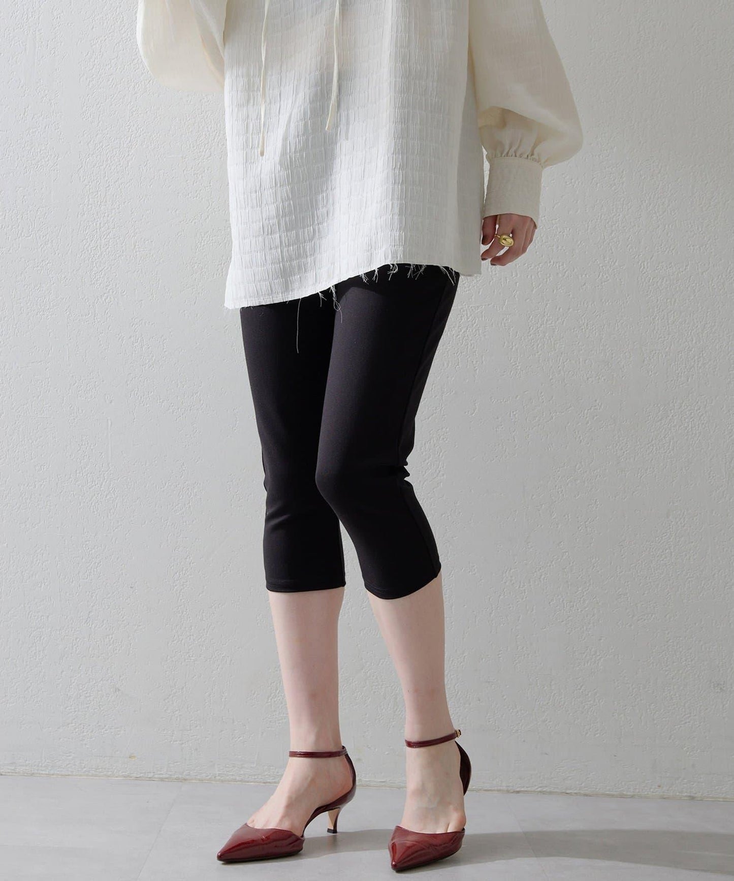 披風面料的卡普里長褲,長度在膝蓋以下。