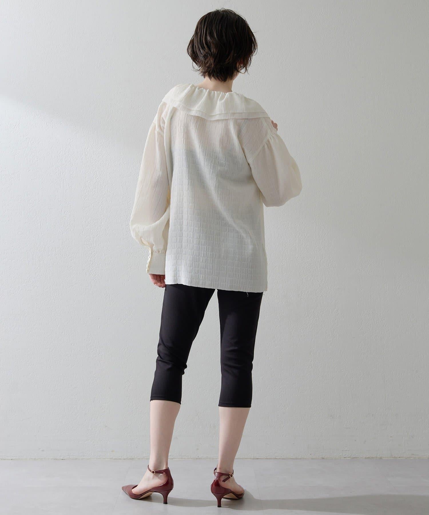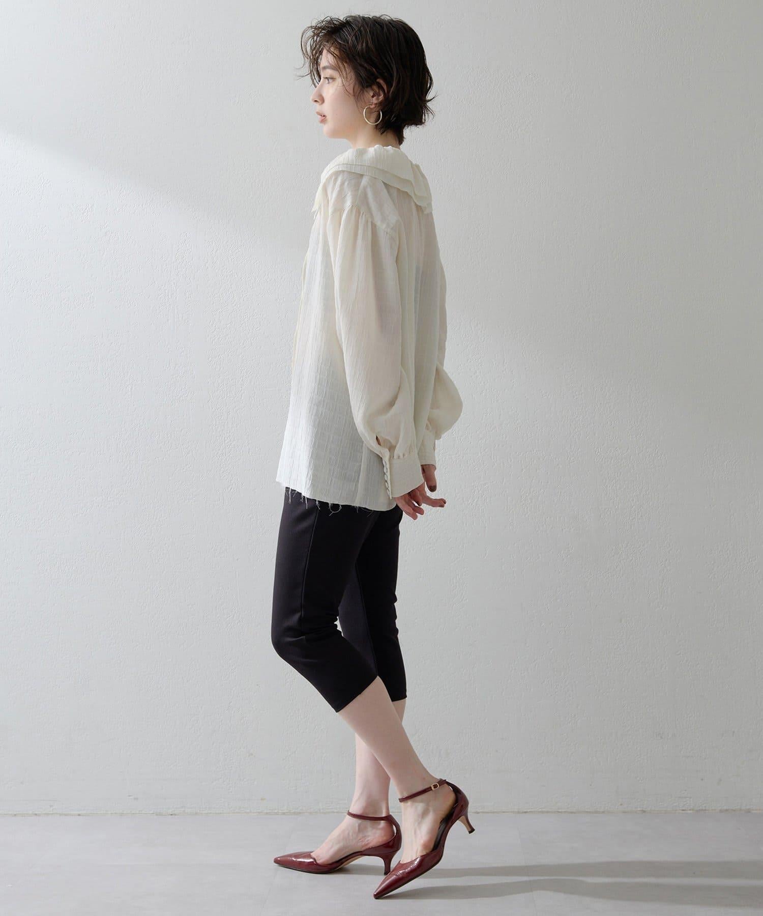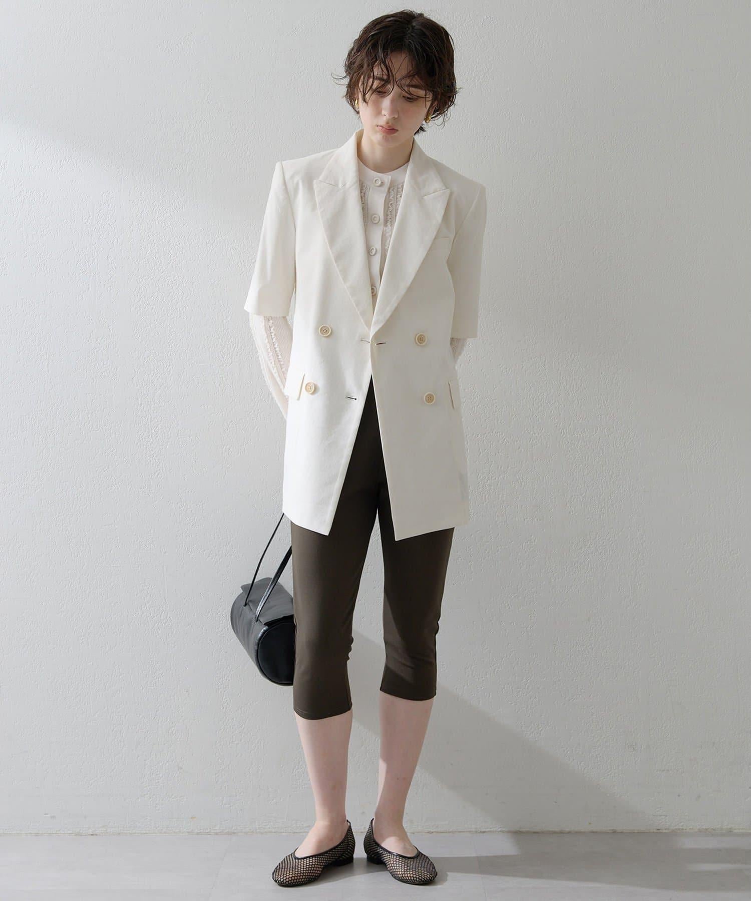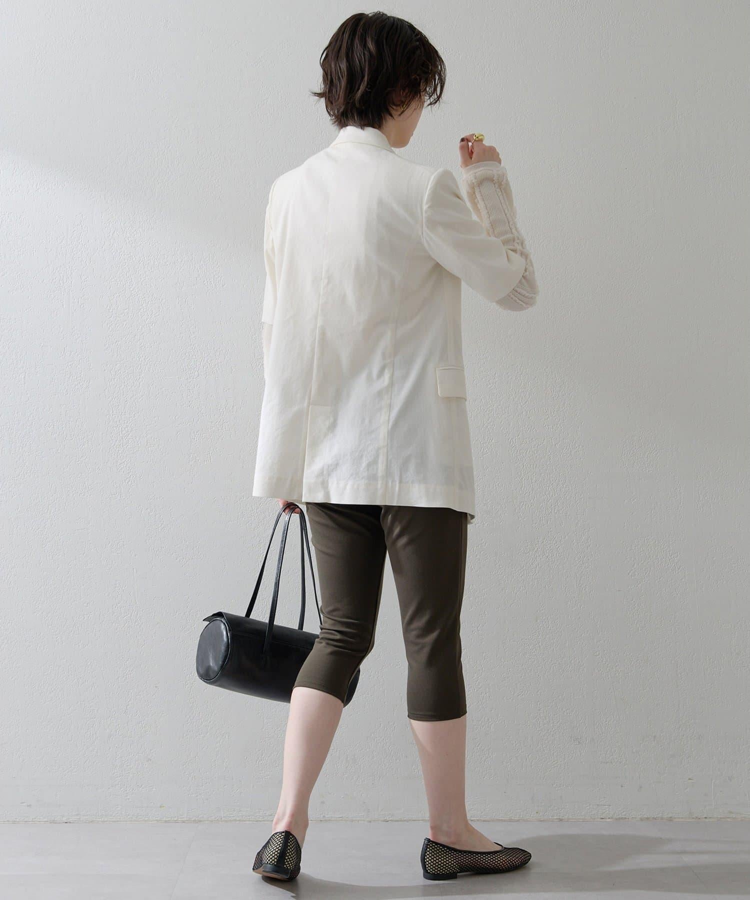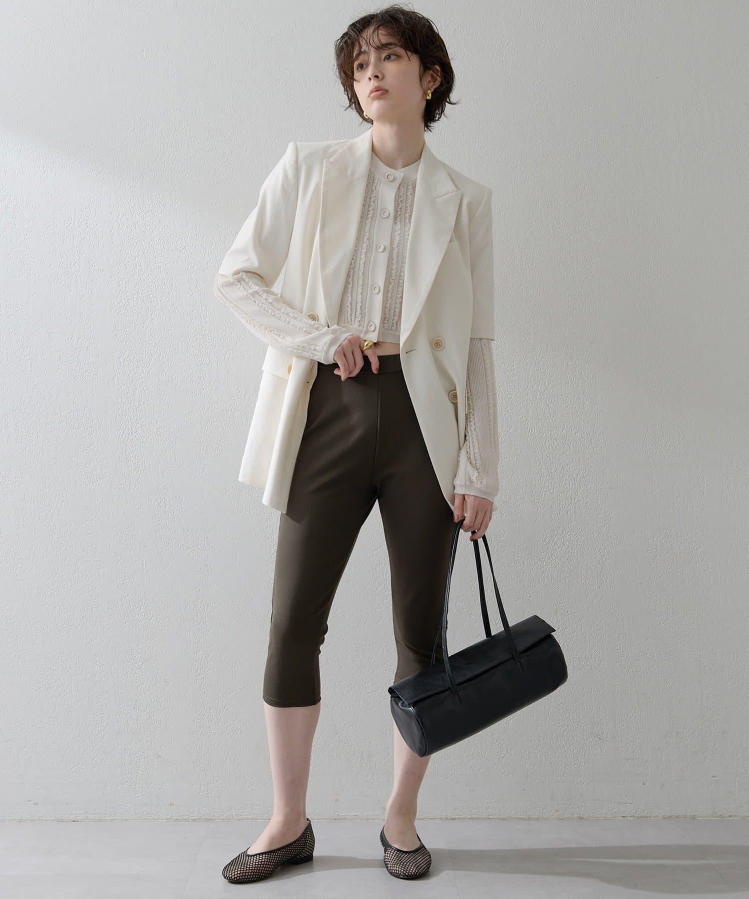 披風面料的卡普里長褲,長度在膝蓋以下。
