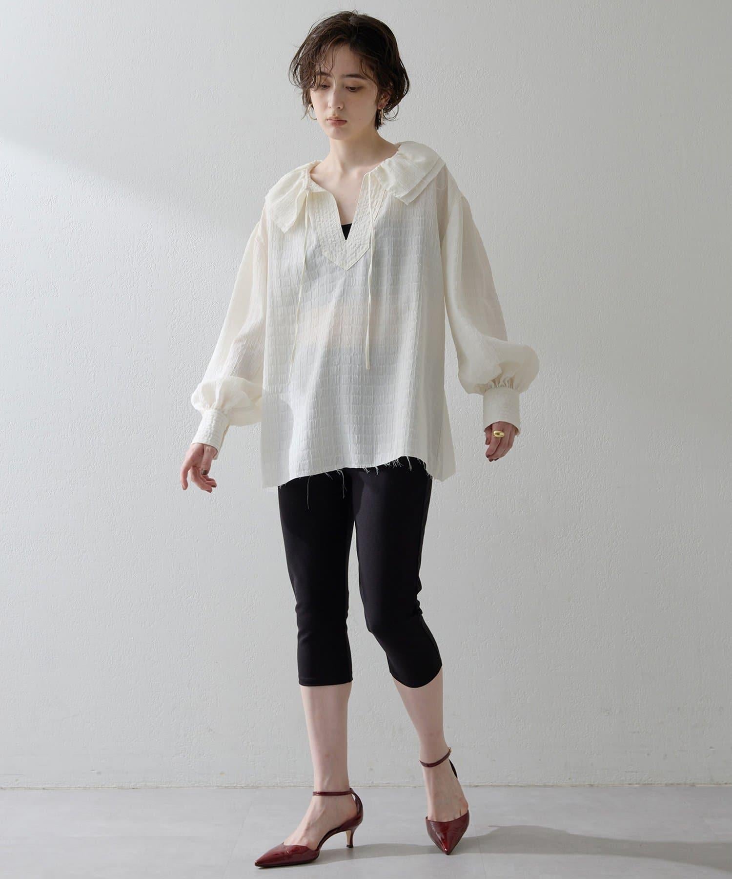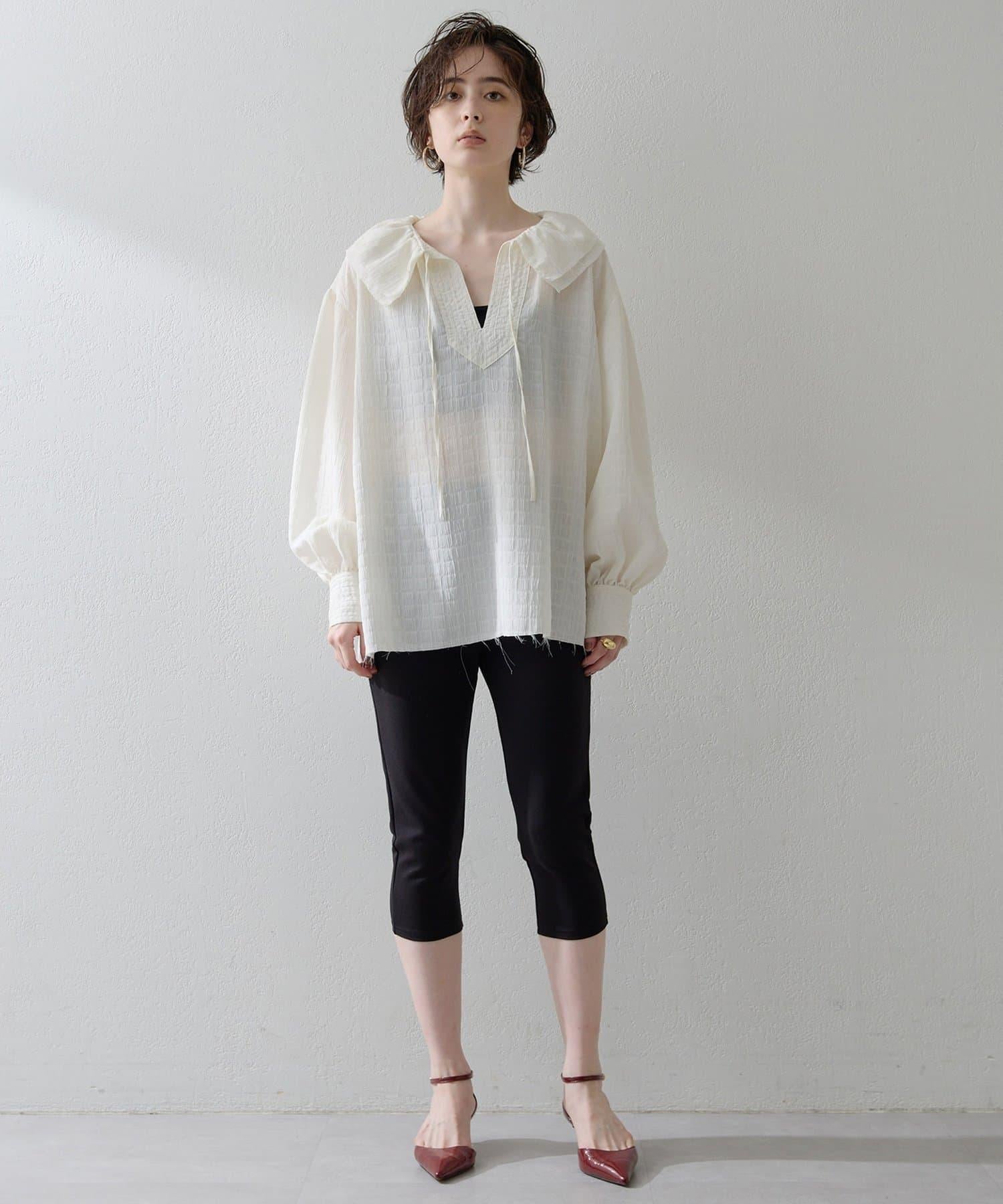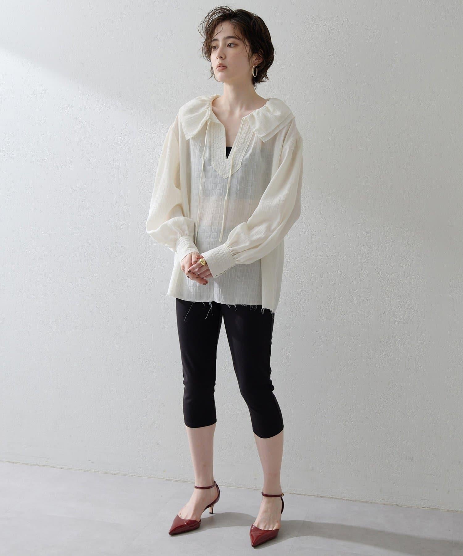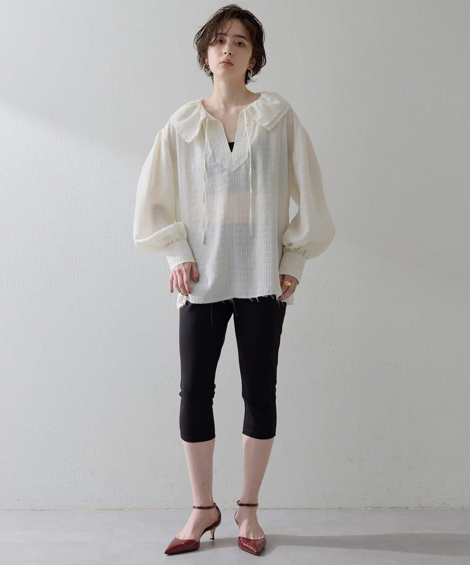 披風面料的卡普里長褲,長度在膝蓋以下。