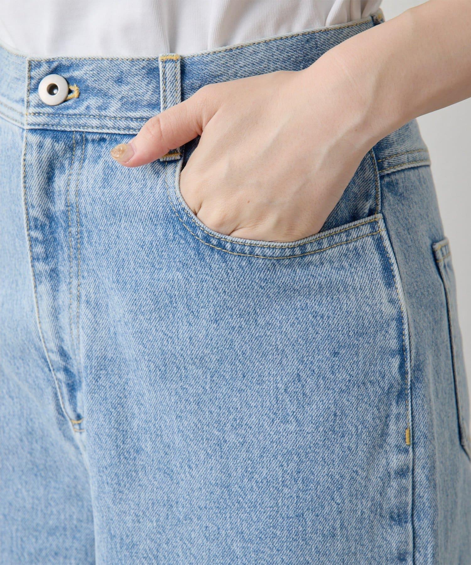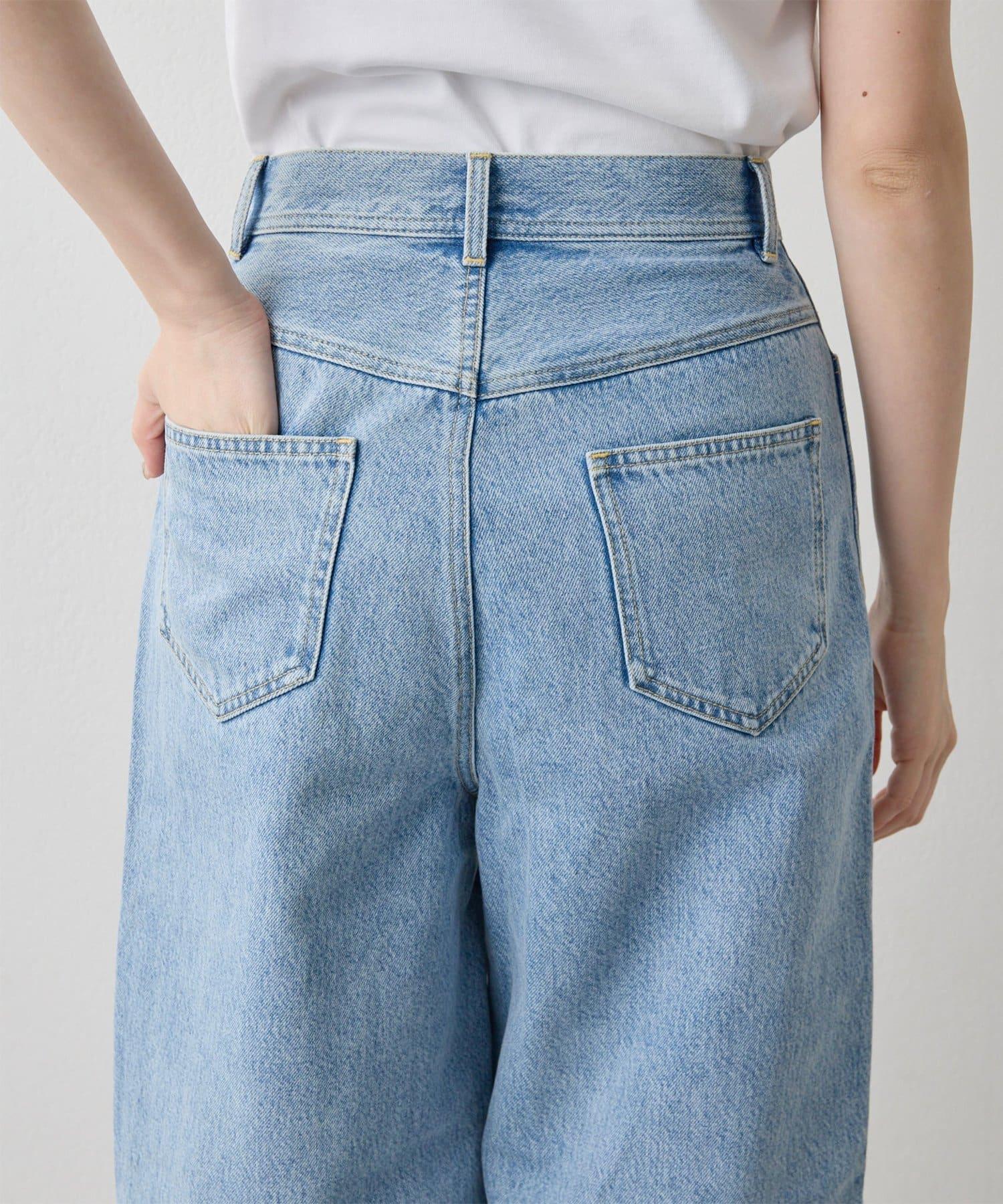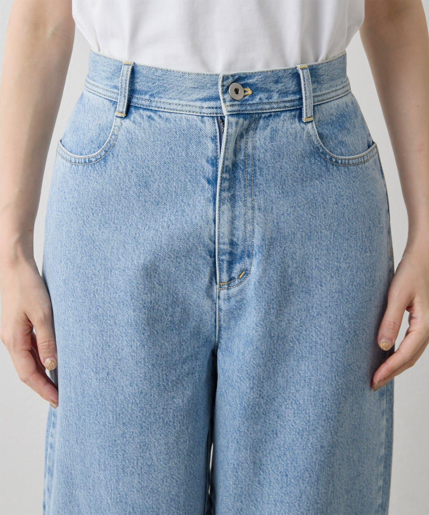 褲腳寬敞,高腰設計使腰線整齊乾淨,勾勒出優美的腿部線條。
