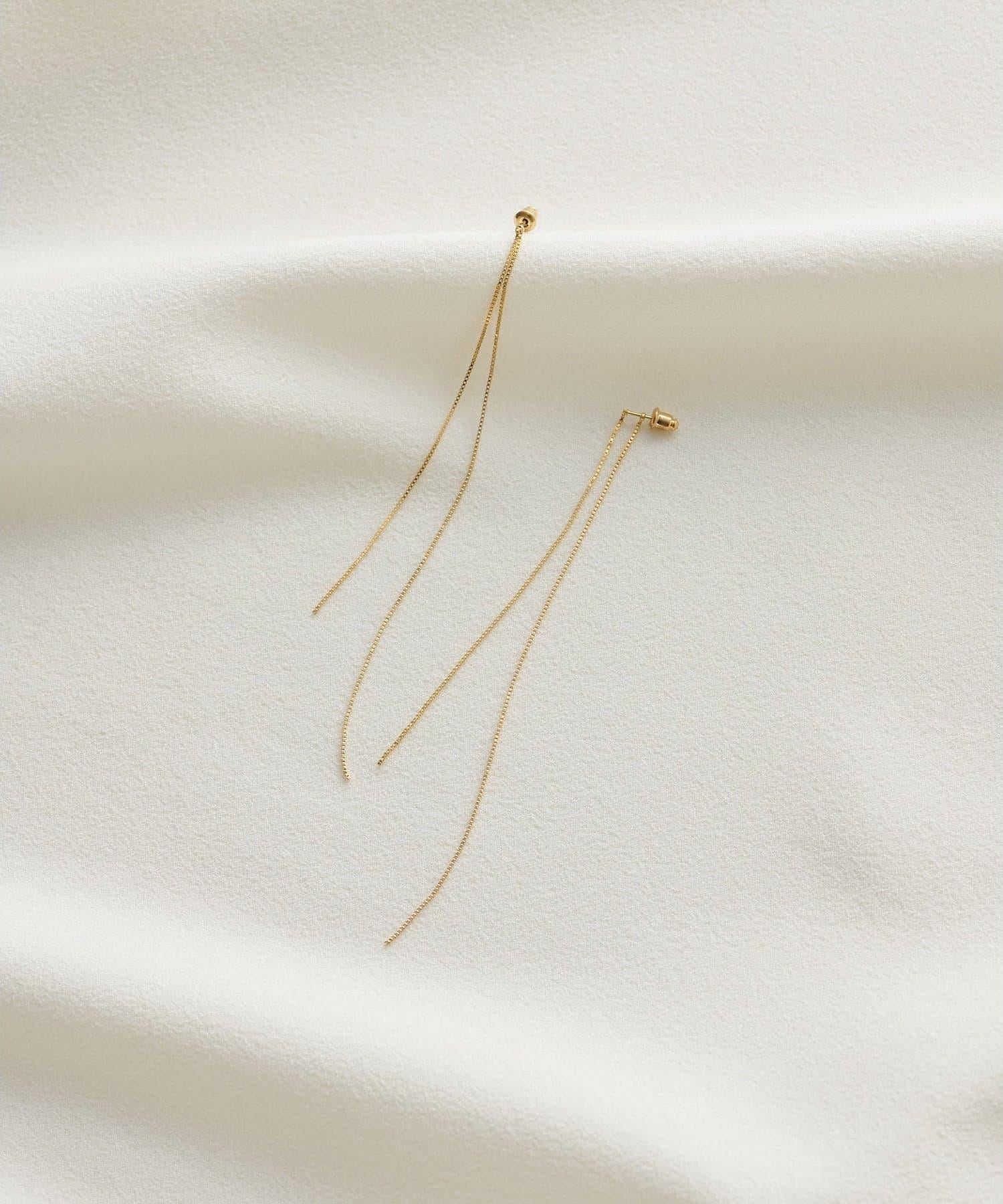 長鏈條可拆卸,因此您可以單獨佩戴,也可以將較長的鏈條穿過耳後佩戴。