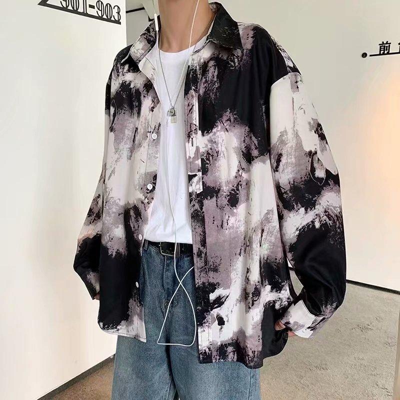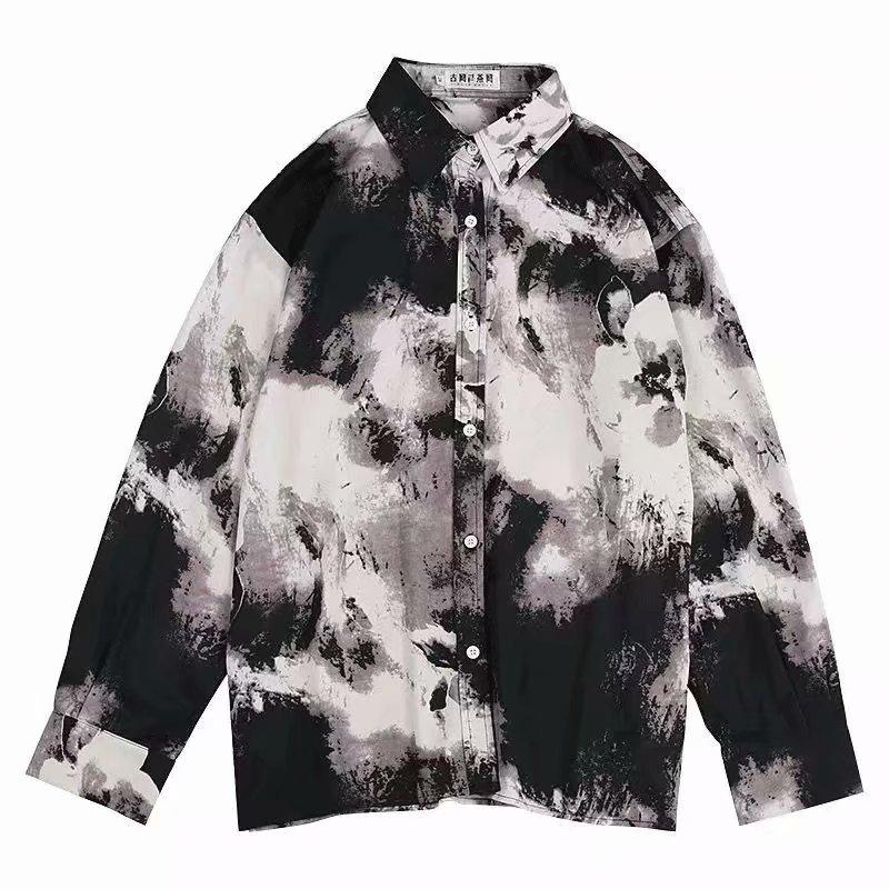 TIE DYE 長袖 打結染總花紋 淺灰色襯衫 GRAY (CT7219)