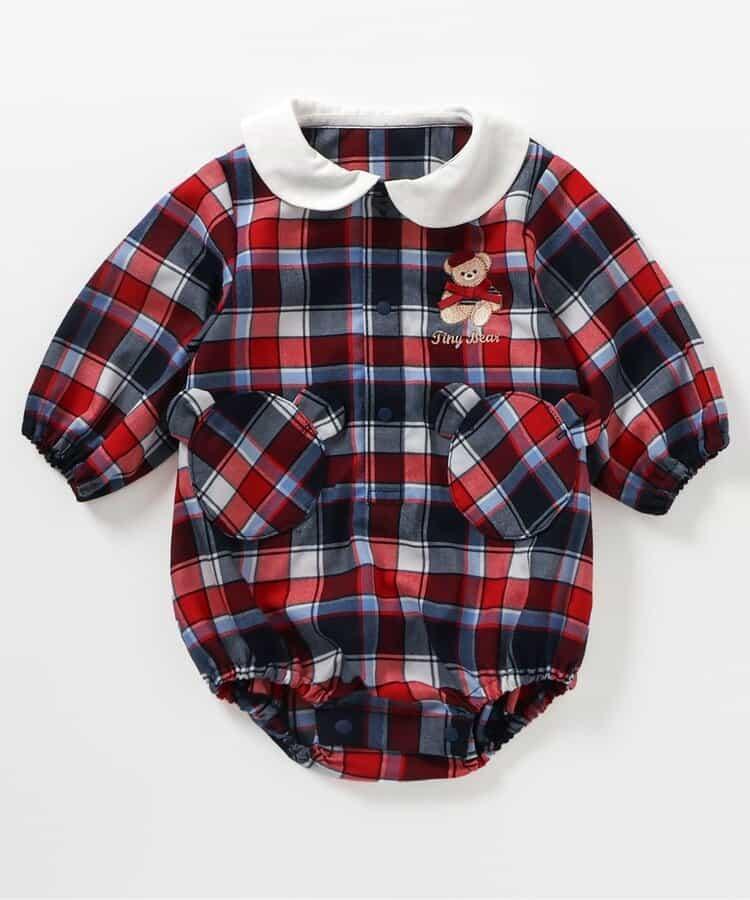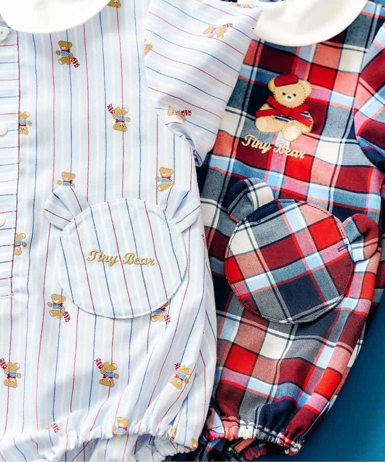 <div"><p>[8月8日(星期五)10:00起發售]<br><br>"慶祝Tiny Bear♪四週年的新產品"<br><br>這款連體衣採用圓領設計,看起來非常整潔。<br><br>有兩種顏色可供選擇:一種是條紋圖案,胸前繡有小熊手提箱的圖案;另一種是棋盤格圖案,胸前繡有小熊圖案。<br><br>小熊口袋和臀部的小熊圖案從各個角度看都非常可愛。<br><br>無論是單穿,還是搭配緊身褲、連褲襪或襪子,都可以長期使用。<br><br>與連衣裙和襯衫的設計相似,因此我們也推薦兄弟姐妹鏈接搭配!<BR><BR>和 Tiny Bear 一起享受秋冬出遊的樂趣吧!<BR><BR><BR><BR><BR><BR><BR><BR><BR><BR><BR><BR><BR>本產品在穿著和洗滌過程中,可能會因摩擦而導致蓬鬆、脫落和起球。為確保美觀使用本產品,請注意以下事項。<br>○ 請用去毛器或剪刀小心剪開絨毛球。<br>○ 如果絨毛粘在其他物品上,請用膠帶或刷子清除。<br>○ 請勿與其他產品一起清洗。<br>○ 避免滾筒烘乾。<br><br> 本產品為顏料印花。<br>購買前請注意以下事項。<br><br>○ 佩戴時,染料可能會因摩擦而轉移到其他物品上。此外,如果汗水或雨水浸溼了物品,染料可能會轉移,敬請注意。<br>○ 與淺色疊穿時請注意。<br>○ 洗滌時,請將衣服反過來單獨洗滌,因為顏色可能會褪色。<br>○ 避免將衣服弄溼,以免將顏色轉移到其他產品上。<br>○ 如果顏色遷移到其他衣物上,請立即清洗。<br>○ 反覆使用後,顏色會逐漸褪去並變白。<br>○ 每件衣服的顏色和質地可能會有所不同,這是此工藝的特點。<br><br></p></div>