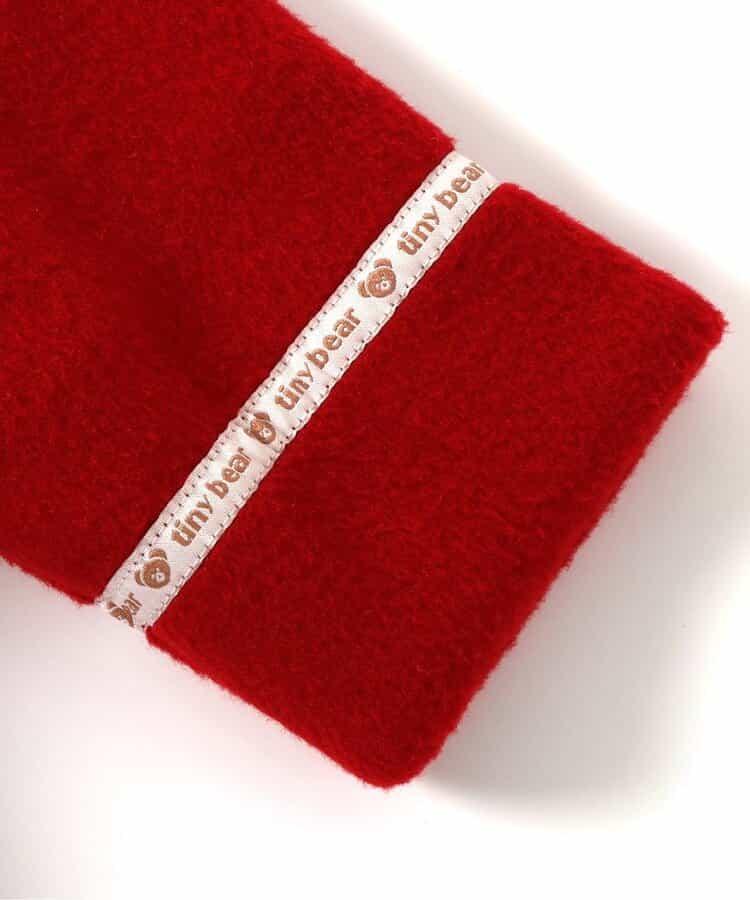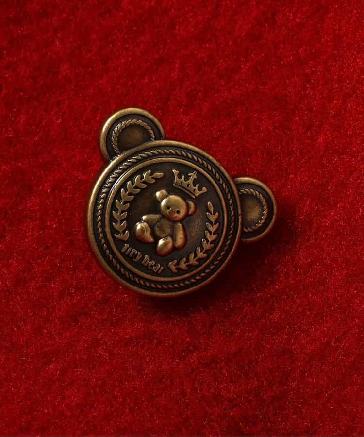 紐扣和口袋都是小熊的圖案,領子和袖子上還有小熊設計的膠帶。