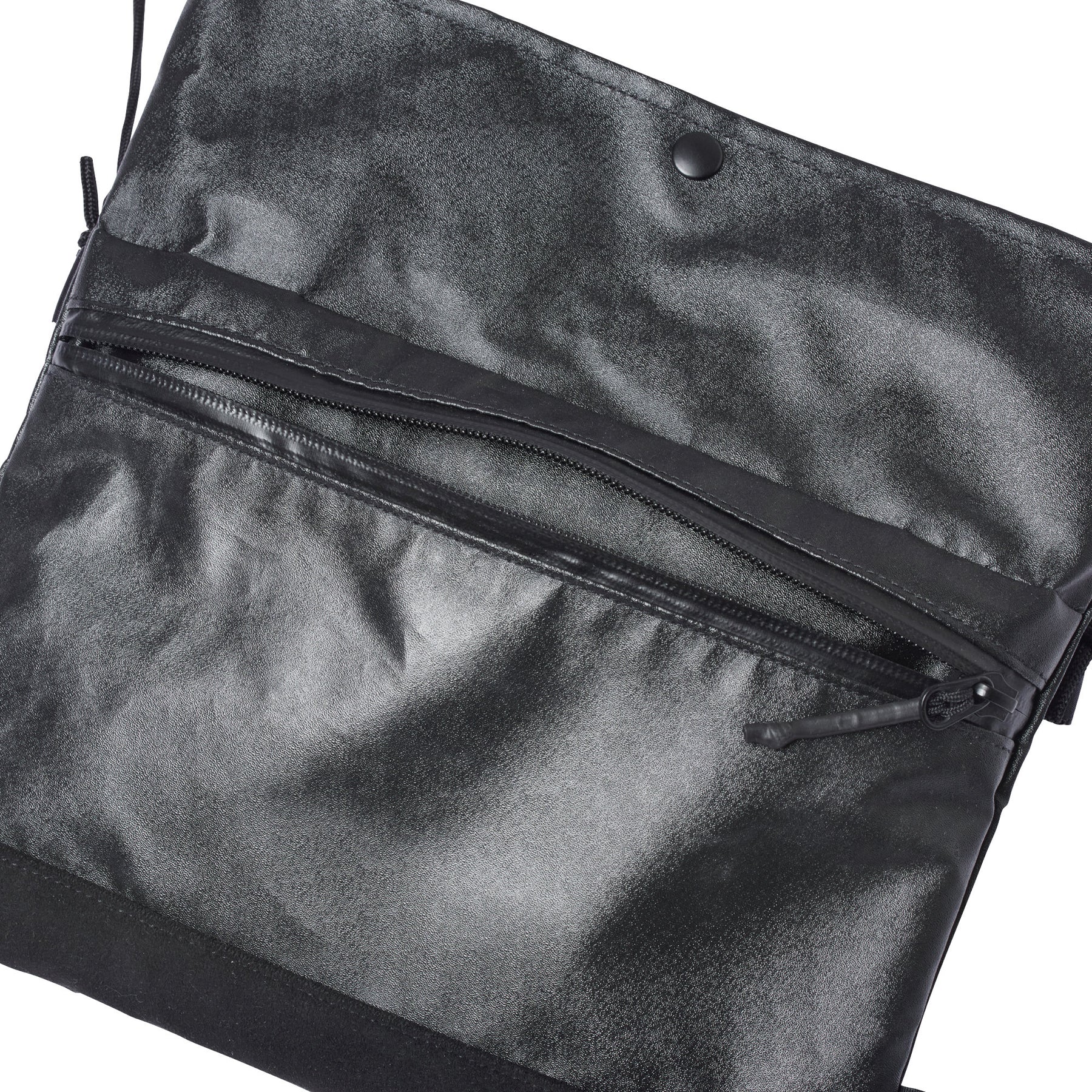 Sacoche的扁平無袋設計,可以在頂部摺疊,享受兩種形式。肩帶可以調節。底部由生態絨面革製成,具有類似絨面革的精細和光滑的感覺。
