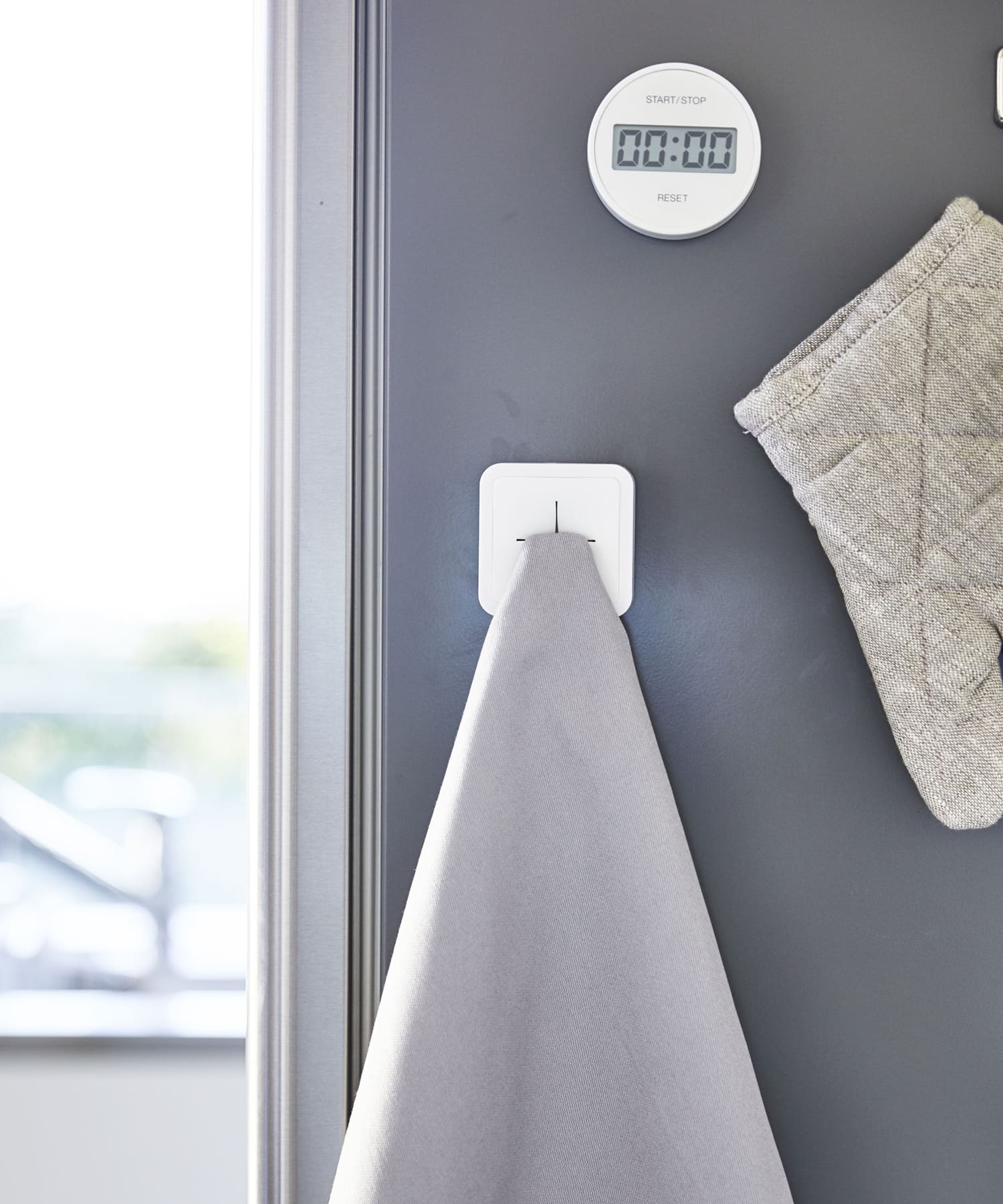 ,毛巾架可以很容易地用磁鐵固定在冰箱或類似的地方,使用起來很簡單。