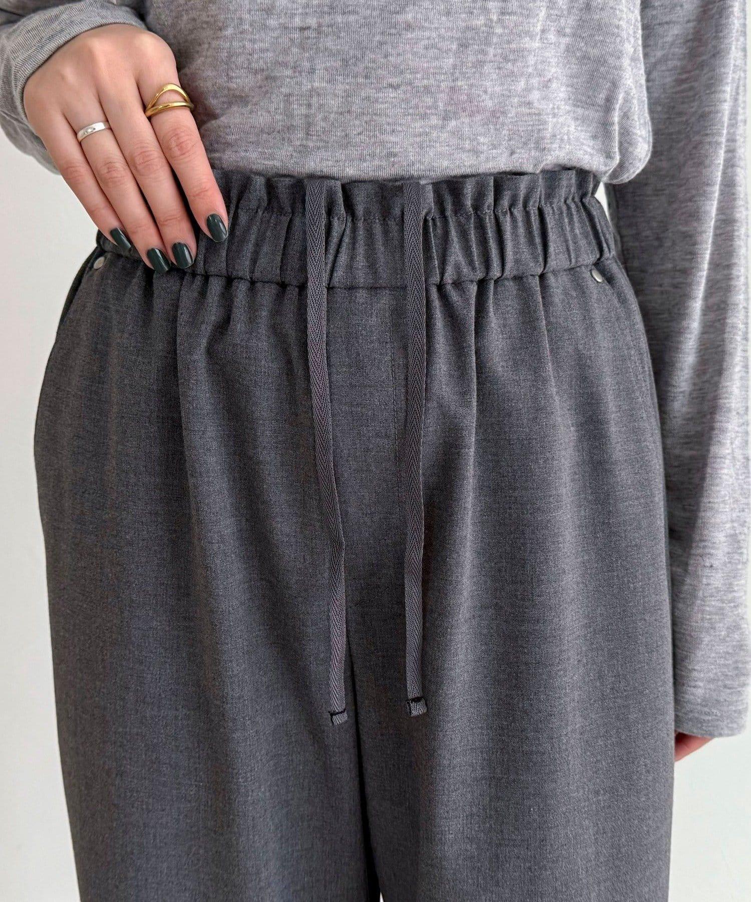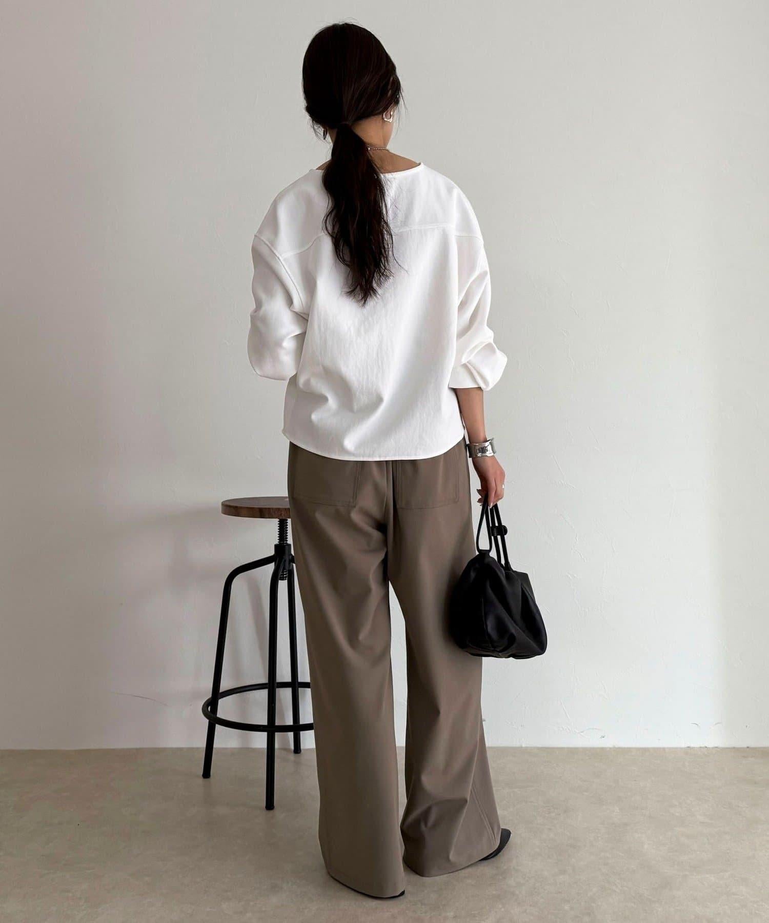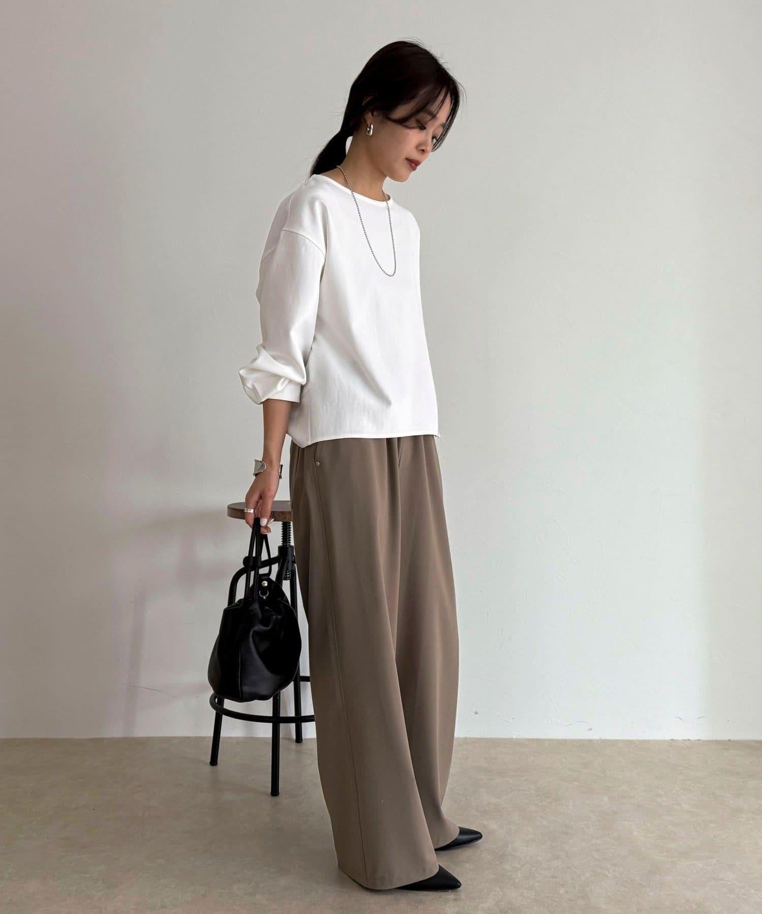 這款半寬褲採用 TR 面料製成,給人一種慵懶的感覺。