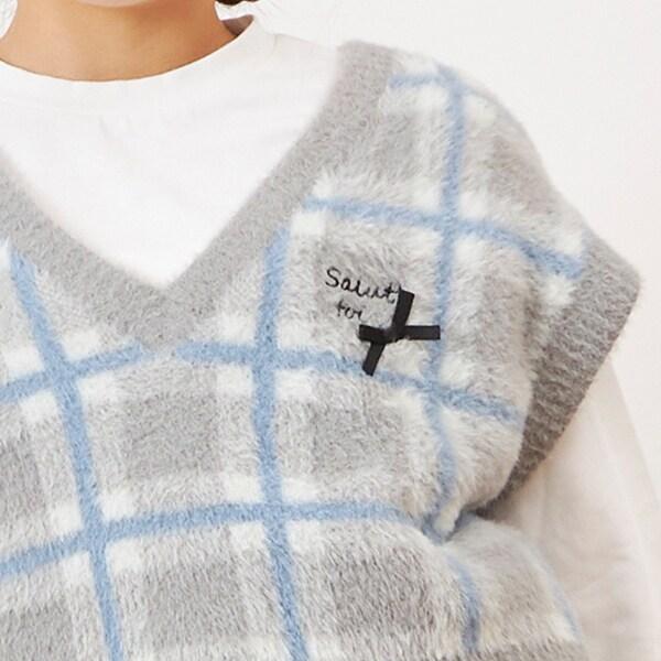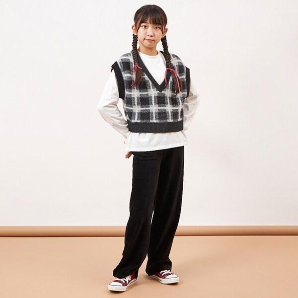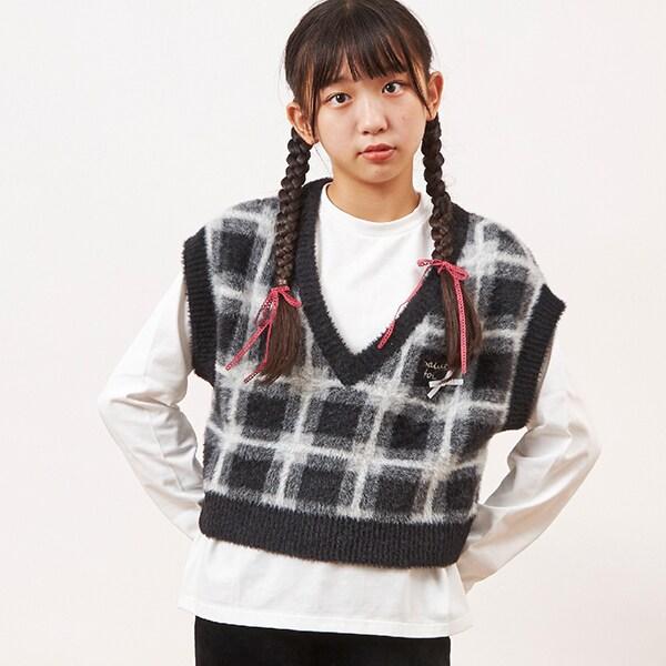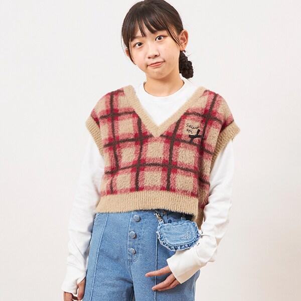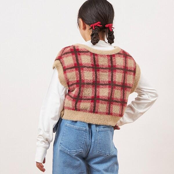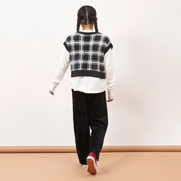 套裝由針織 T 恤和毛茸茸的針織馬甲組成。馬甲可機洗,T恤胸前有一個小口袋,袖口有羅紋拇指。馬甲採用漂亮的大格紋色調,易於與任何色彩搭配。馬甲既可作為套裝使用,也可與手頭的其他單品協調搭配,讓您享受多種穿著方式。