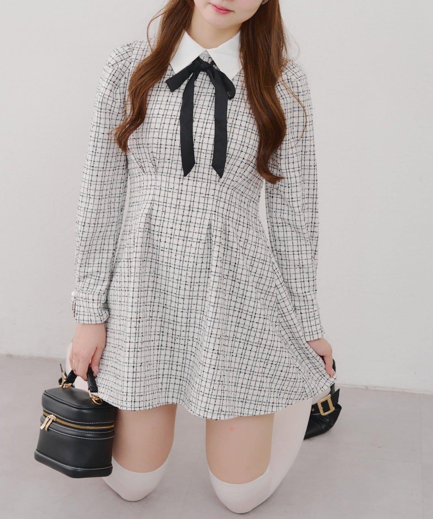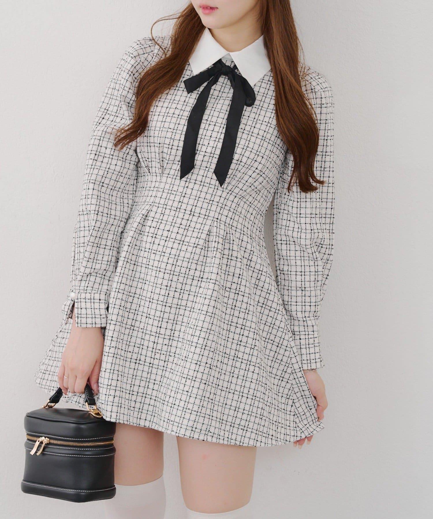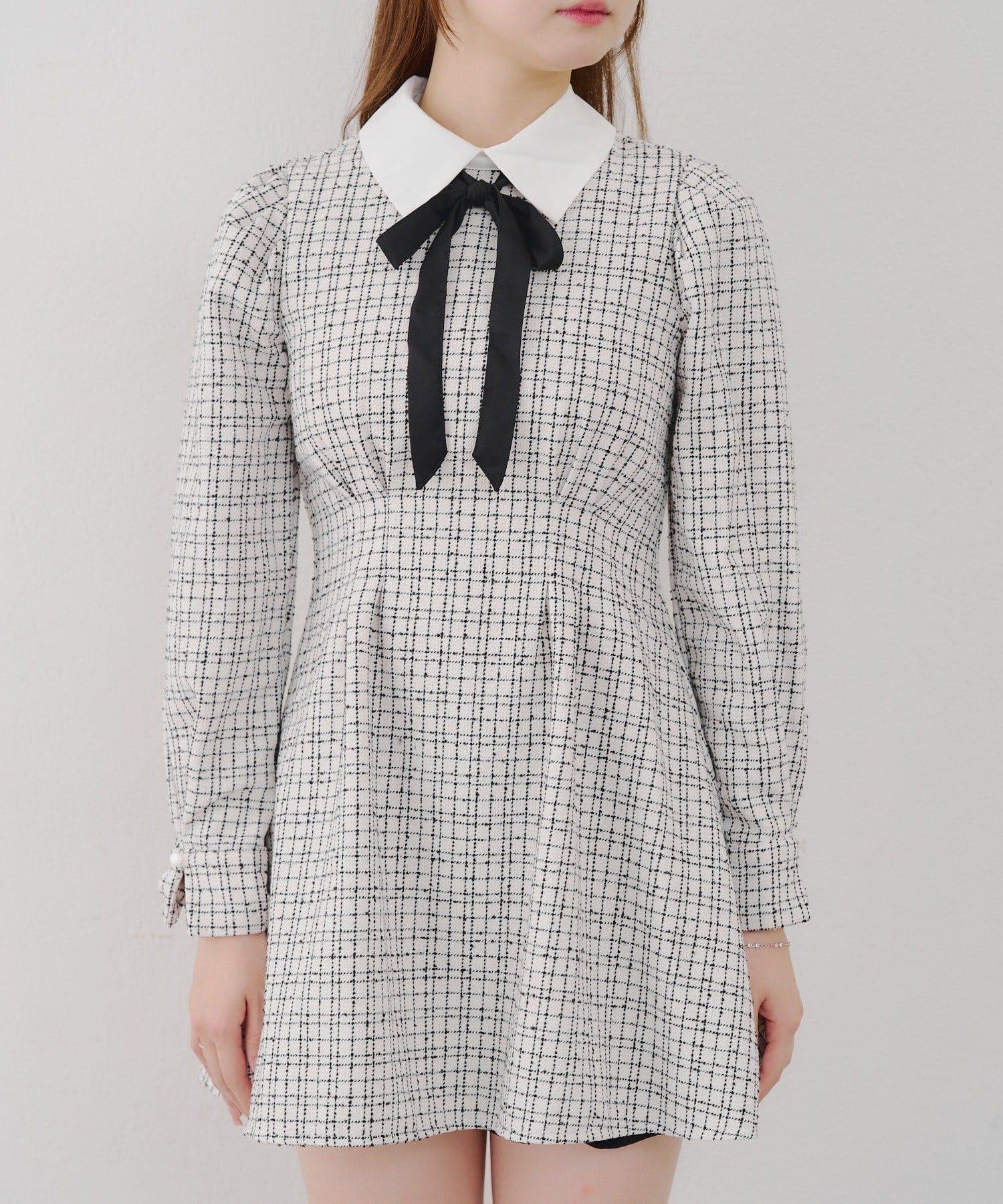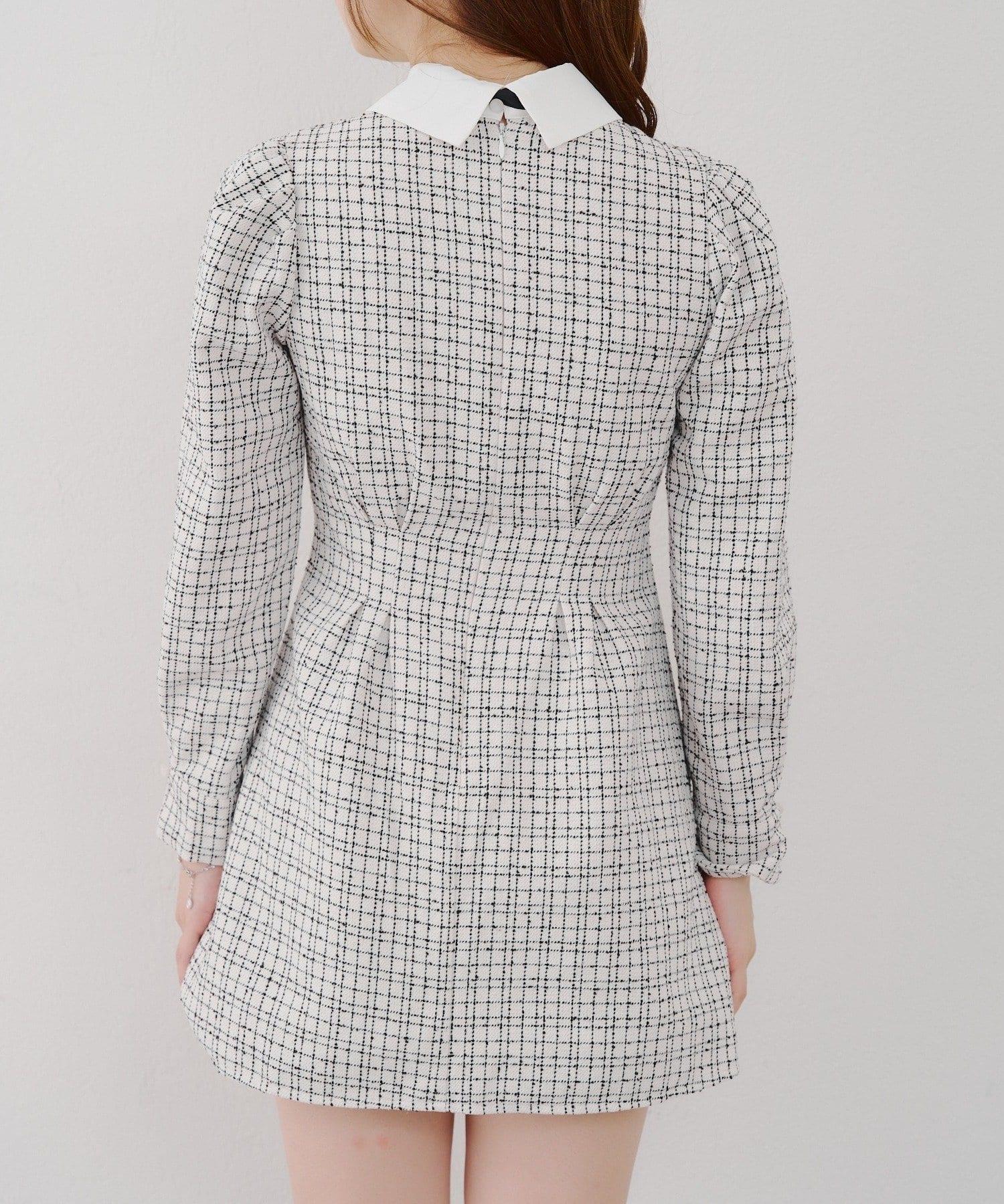 【Tweed Collection】拼色領口粗花呢迷你連衣裙