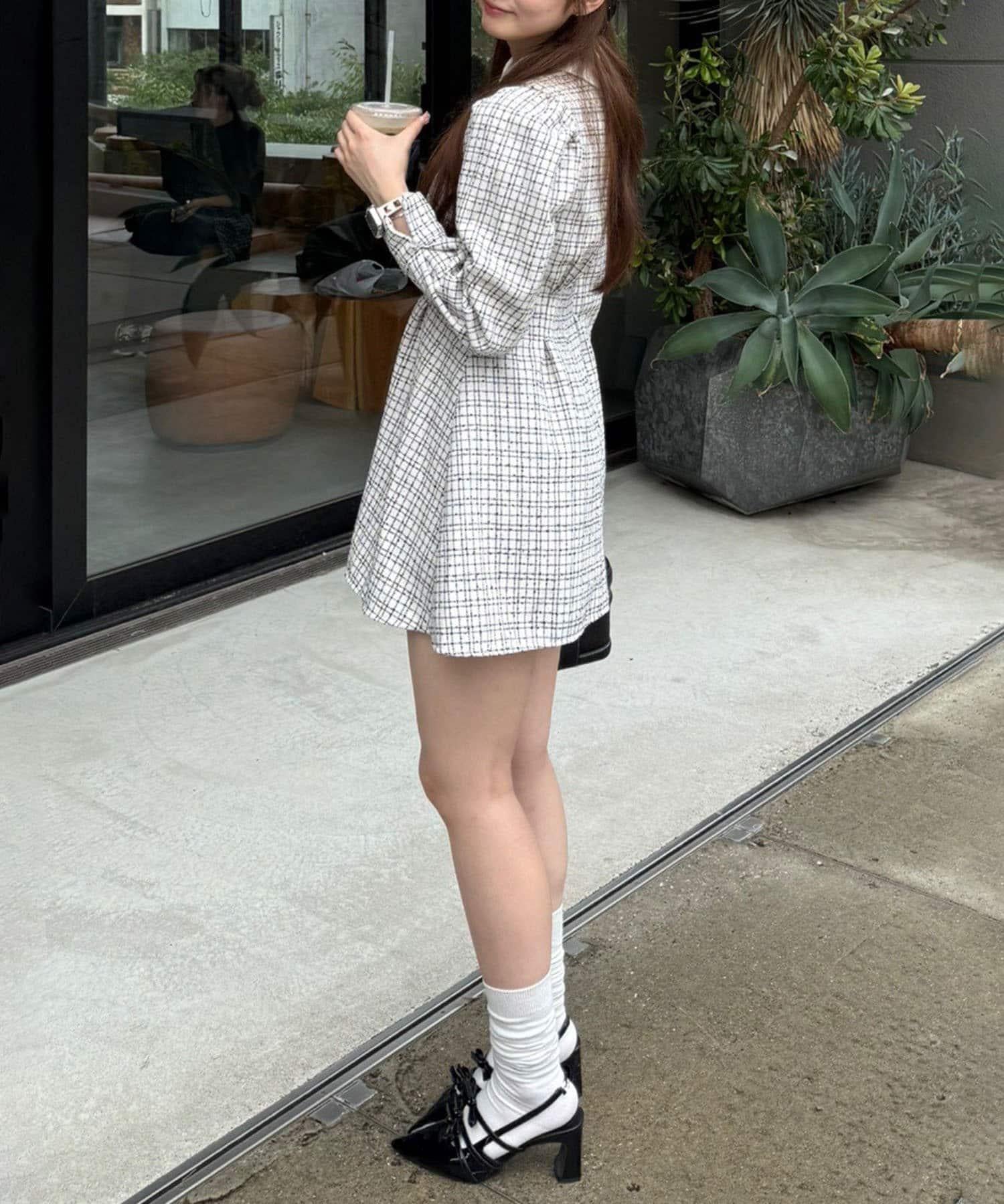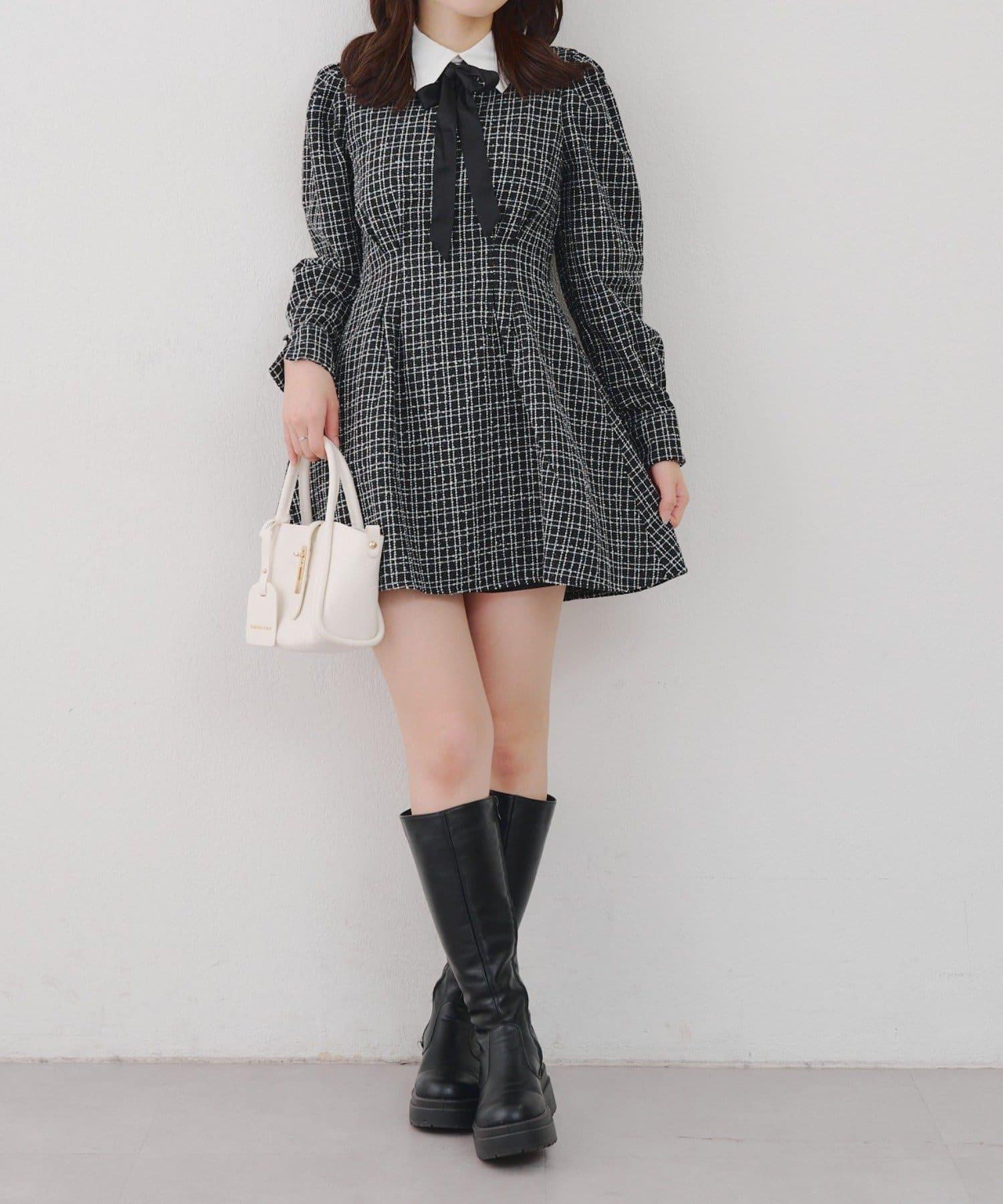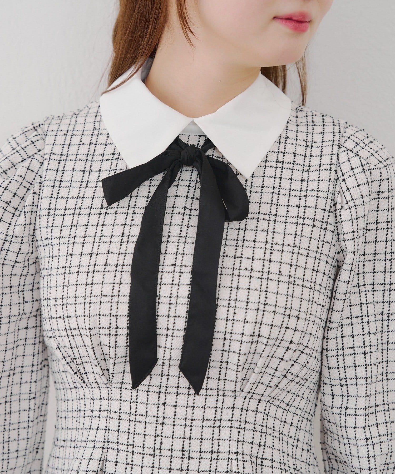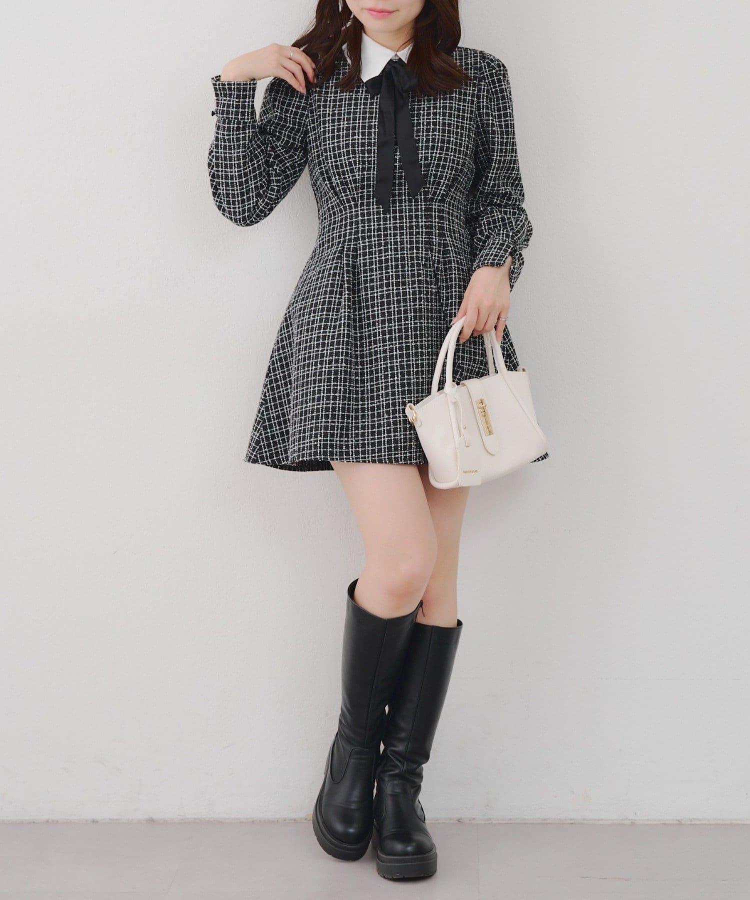 【Tweed Collection】拼色領口粗花呢迷你連衣裙