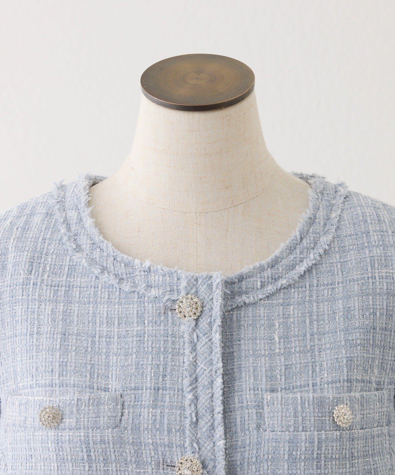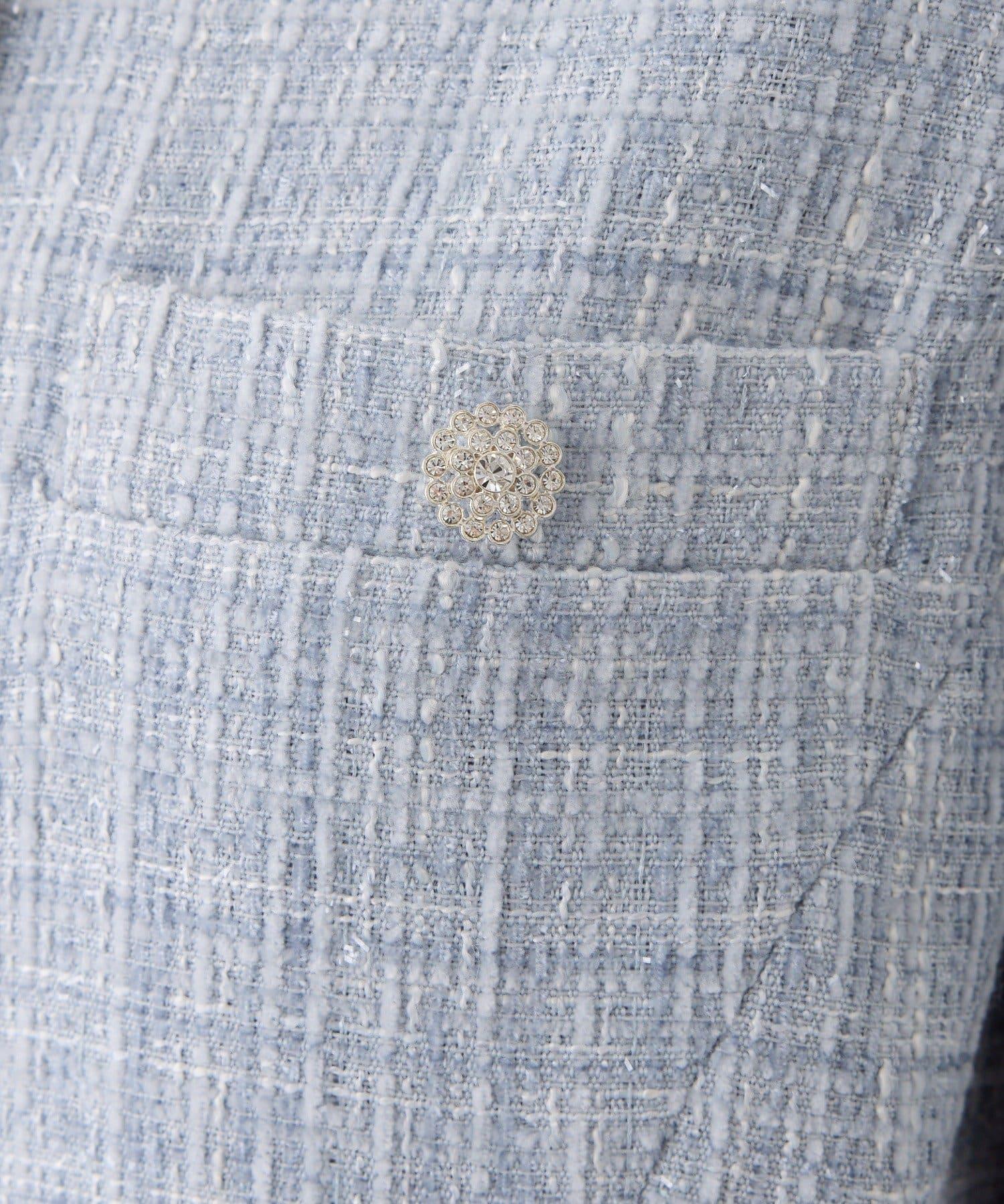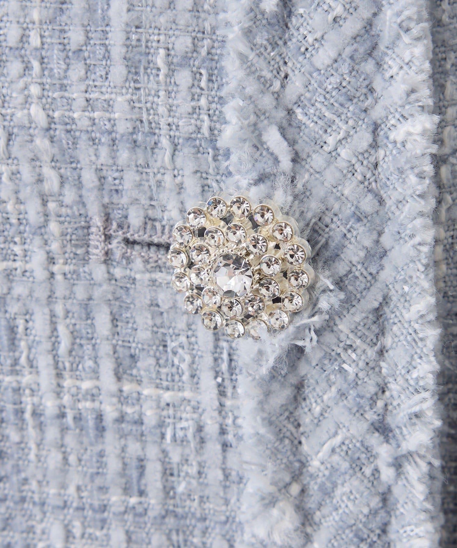 優雅的無領剪裁搭配閃亮紐扣,是一款魅力十足的夾克。