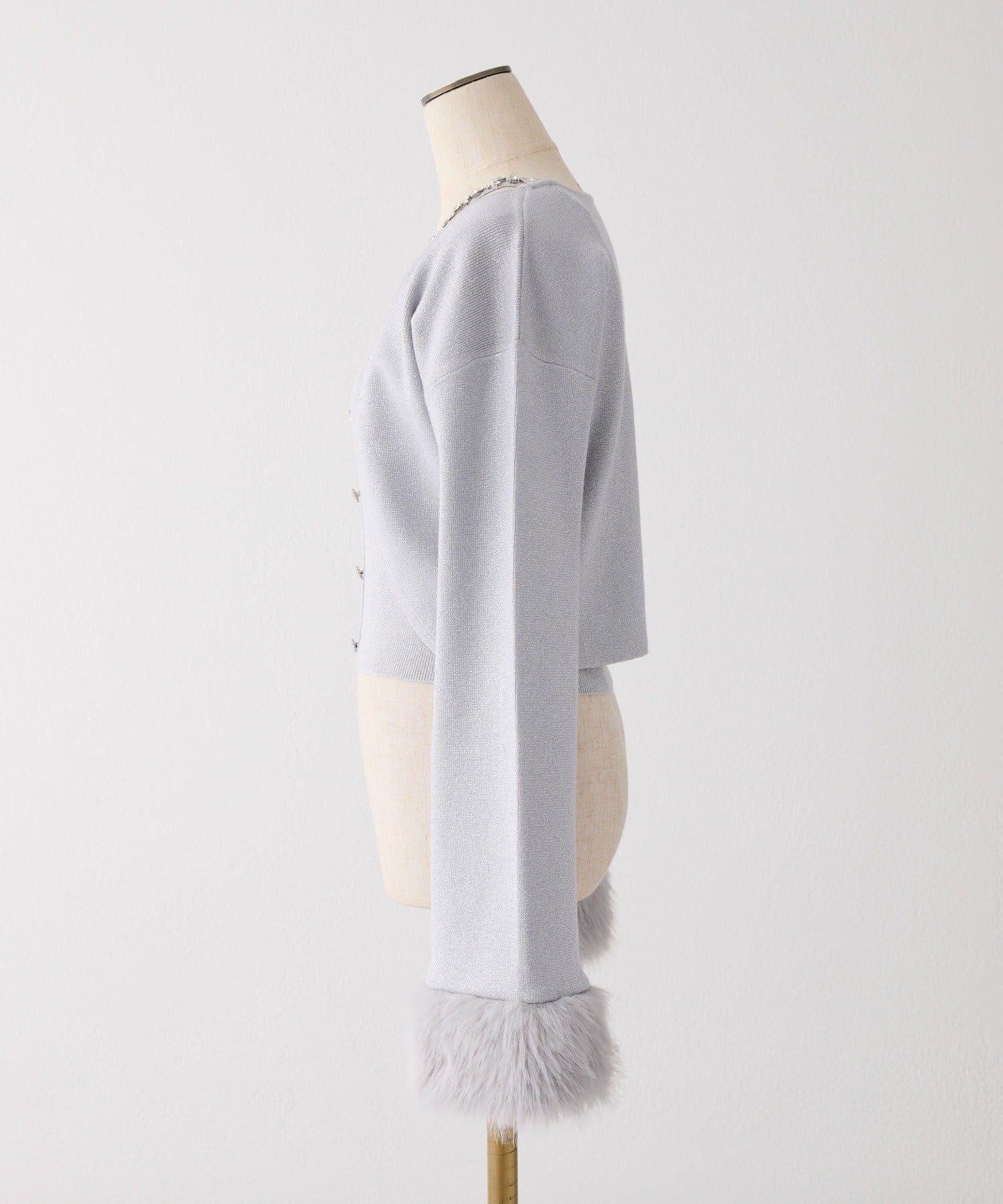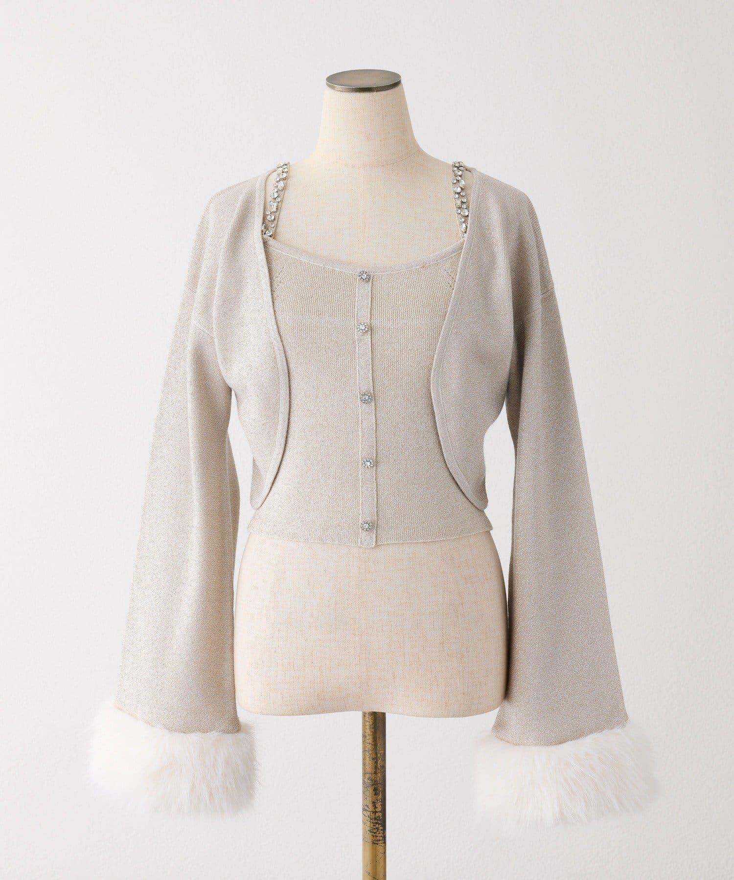 預約商品【Twinkle Collection】袖部毛絨短外套+亮片吊帶上衣套裝