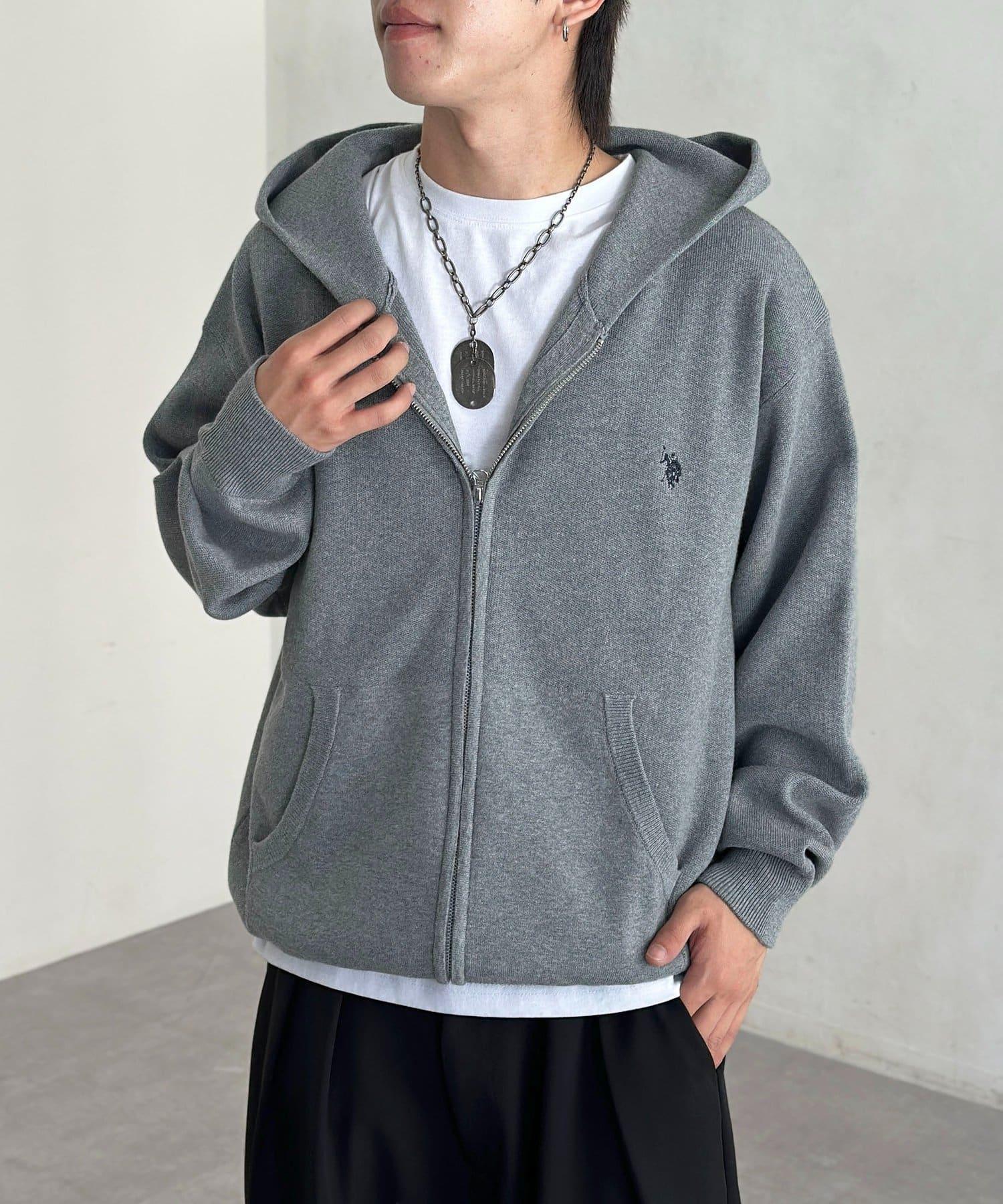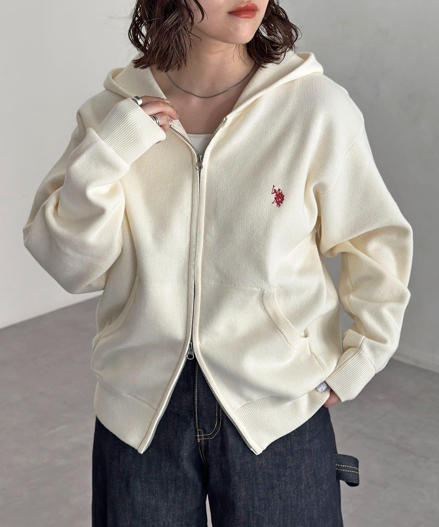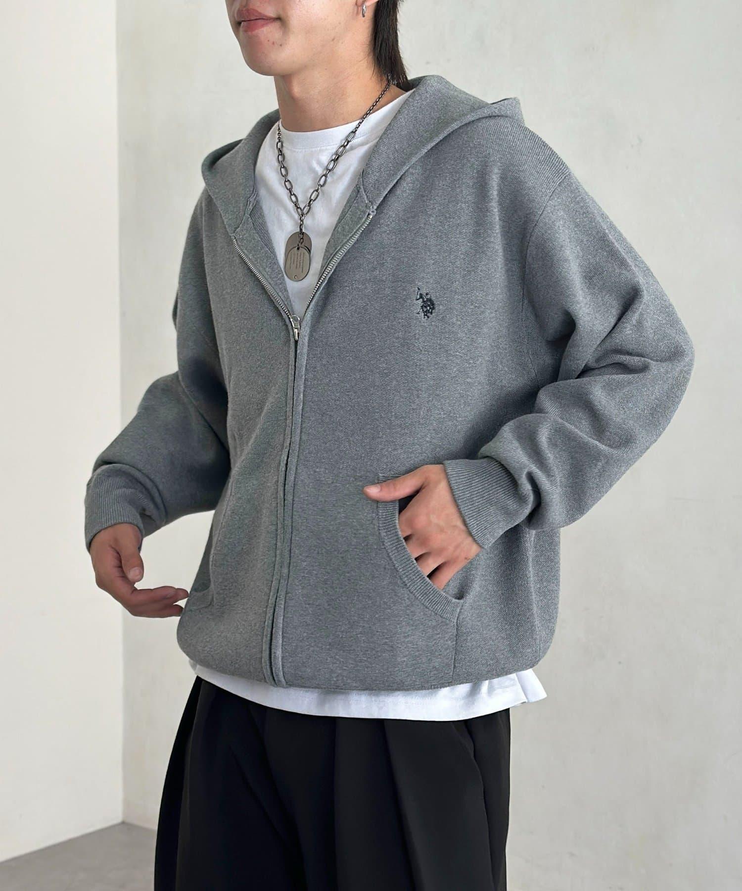 【U.S. POLO ASSN.】衛衣風針織拉鍊連帽衫