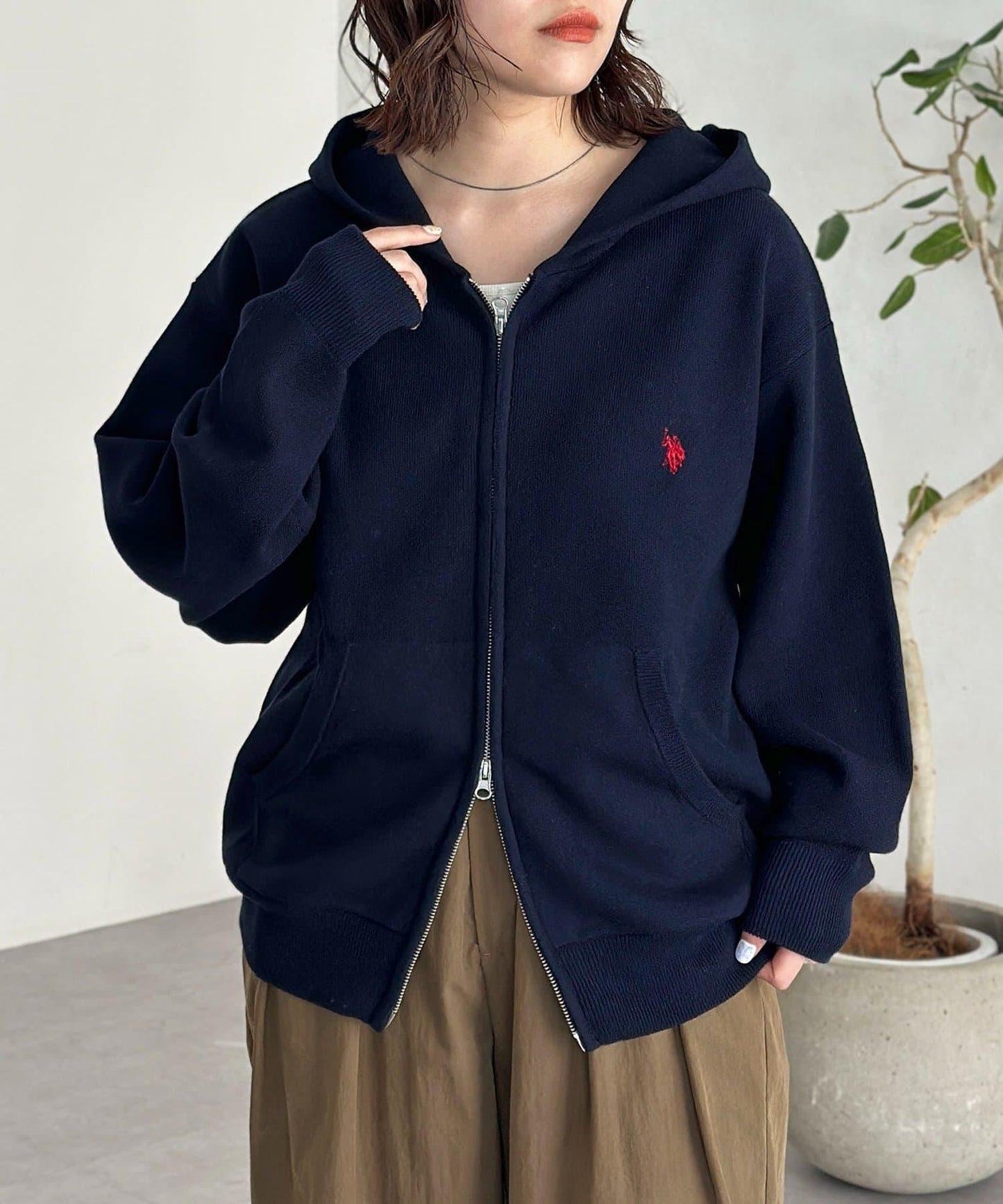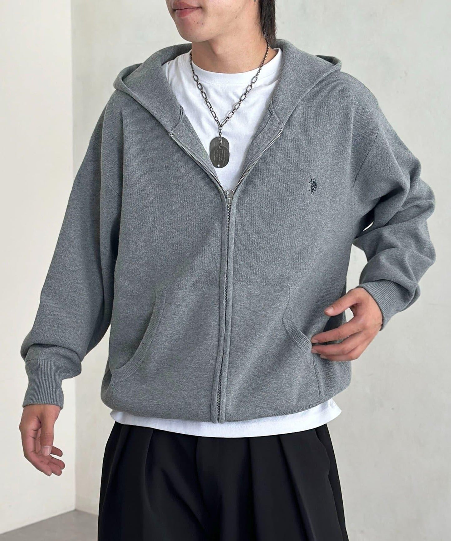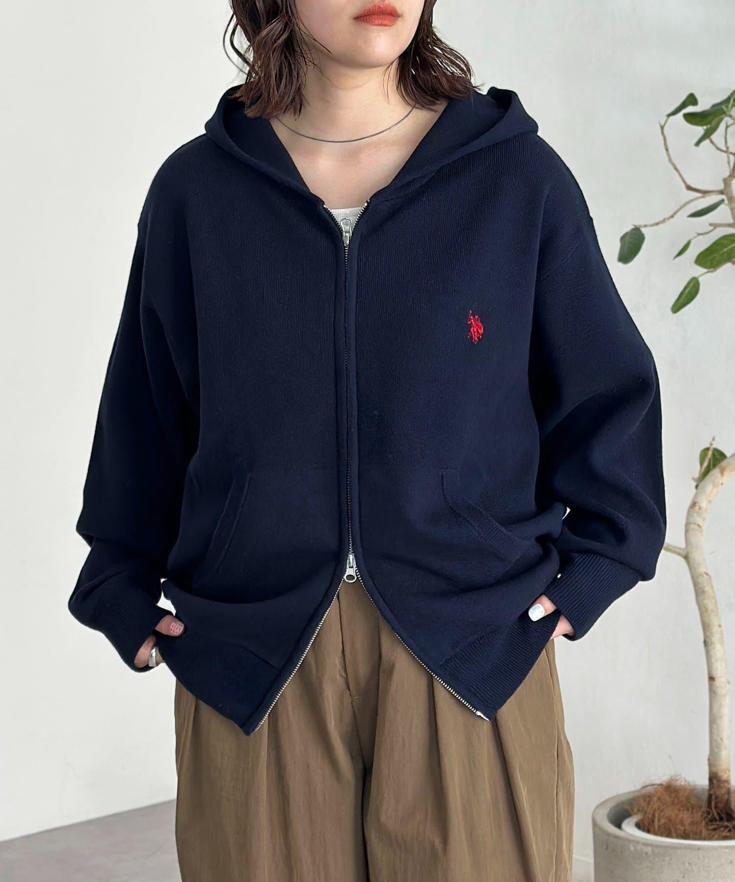 【U.S. POLO ASSN.】衛衣風針織拉鍊連帽衫