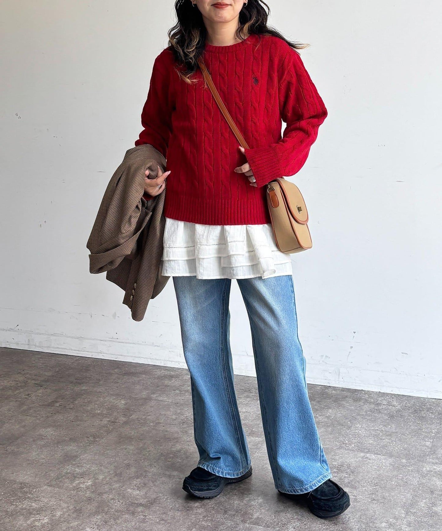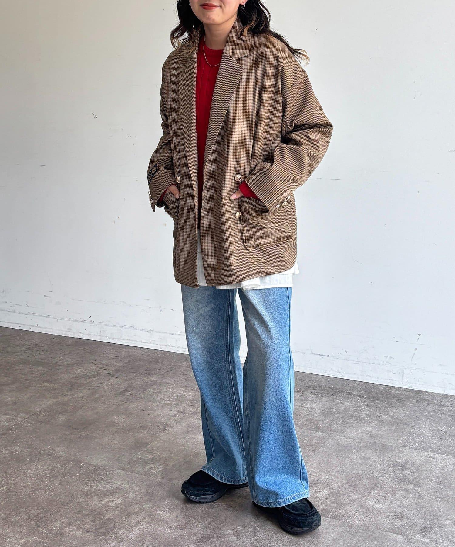 經典牛仔褲+運動鞋,打造休閒下裝。