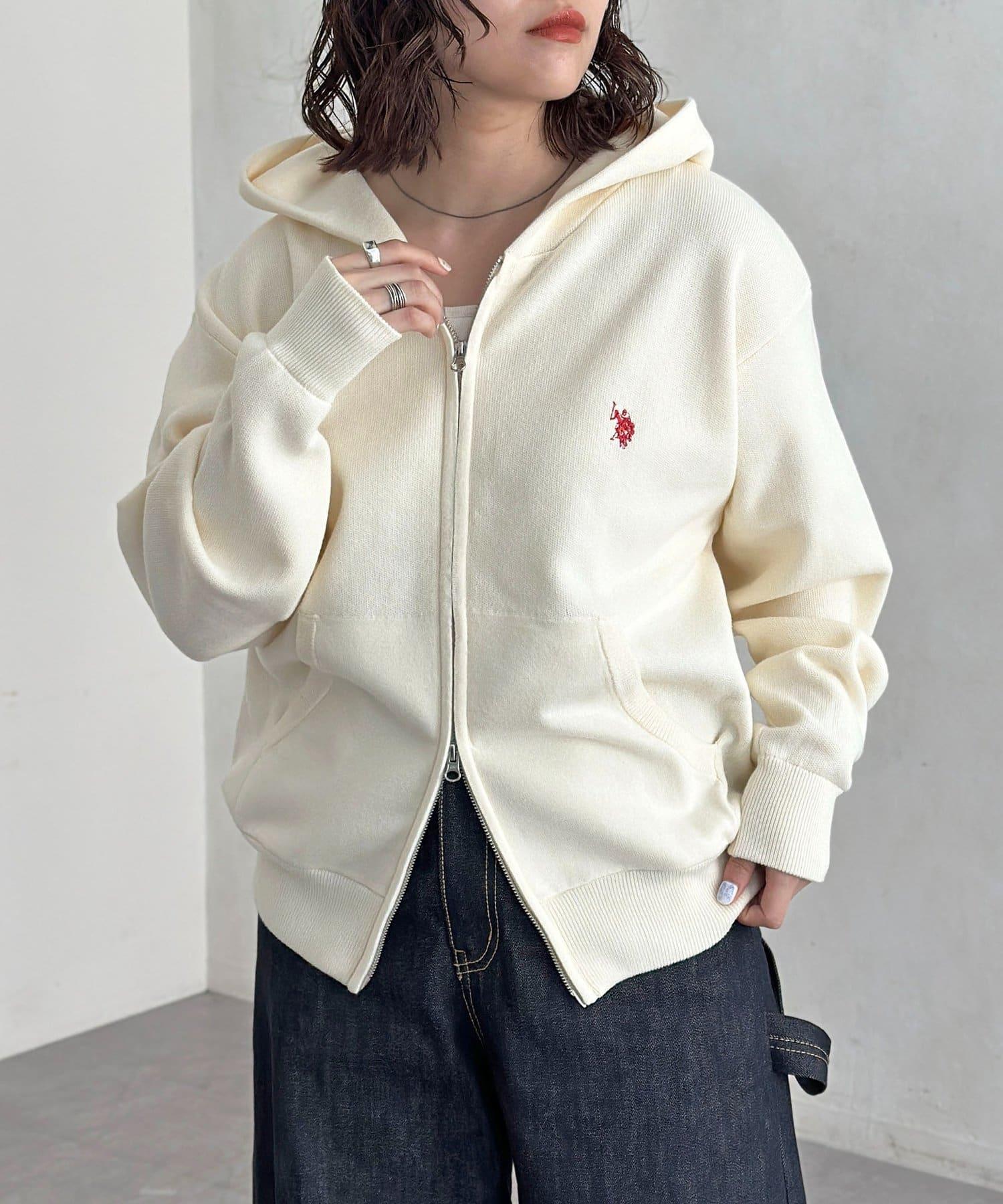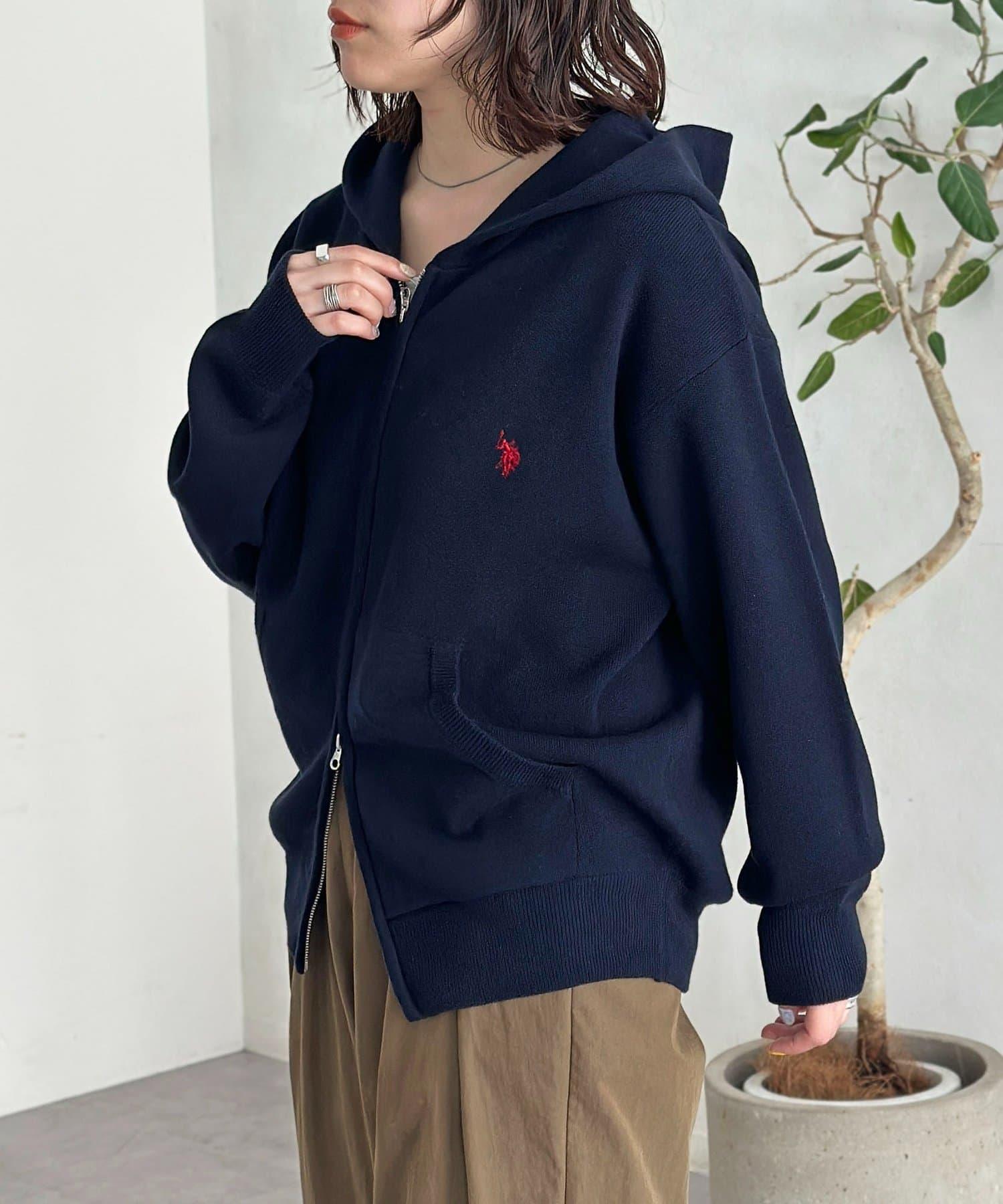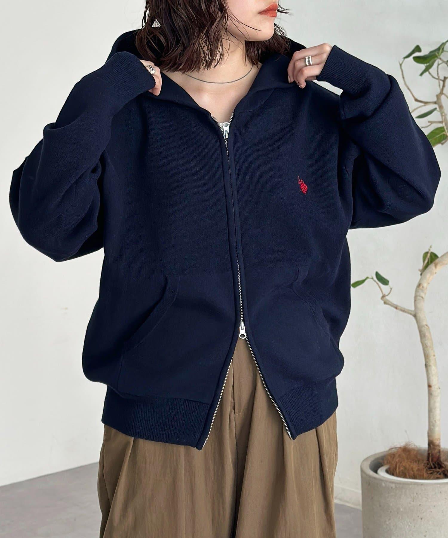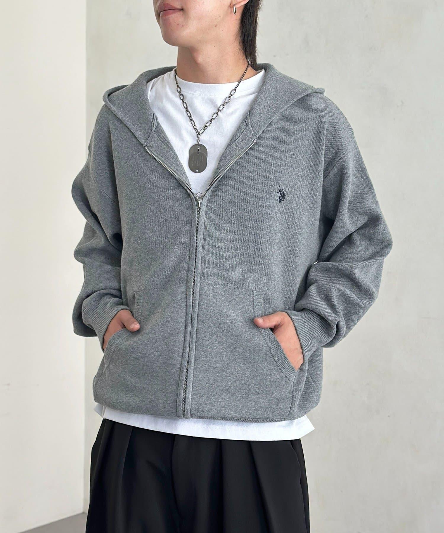【U.S. POLO ASSN.】衛衣風針織拉鍊連帽衫