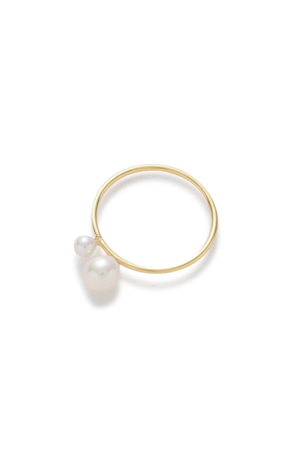 一款設計獨特的戒指,鑲有大小珍珠。大小不一的珍珠打造出簡單而獨特的點睛之筆,其輪廓既別緻又現代。精緻的戒指設計非常適合疊戴。