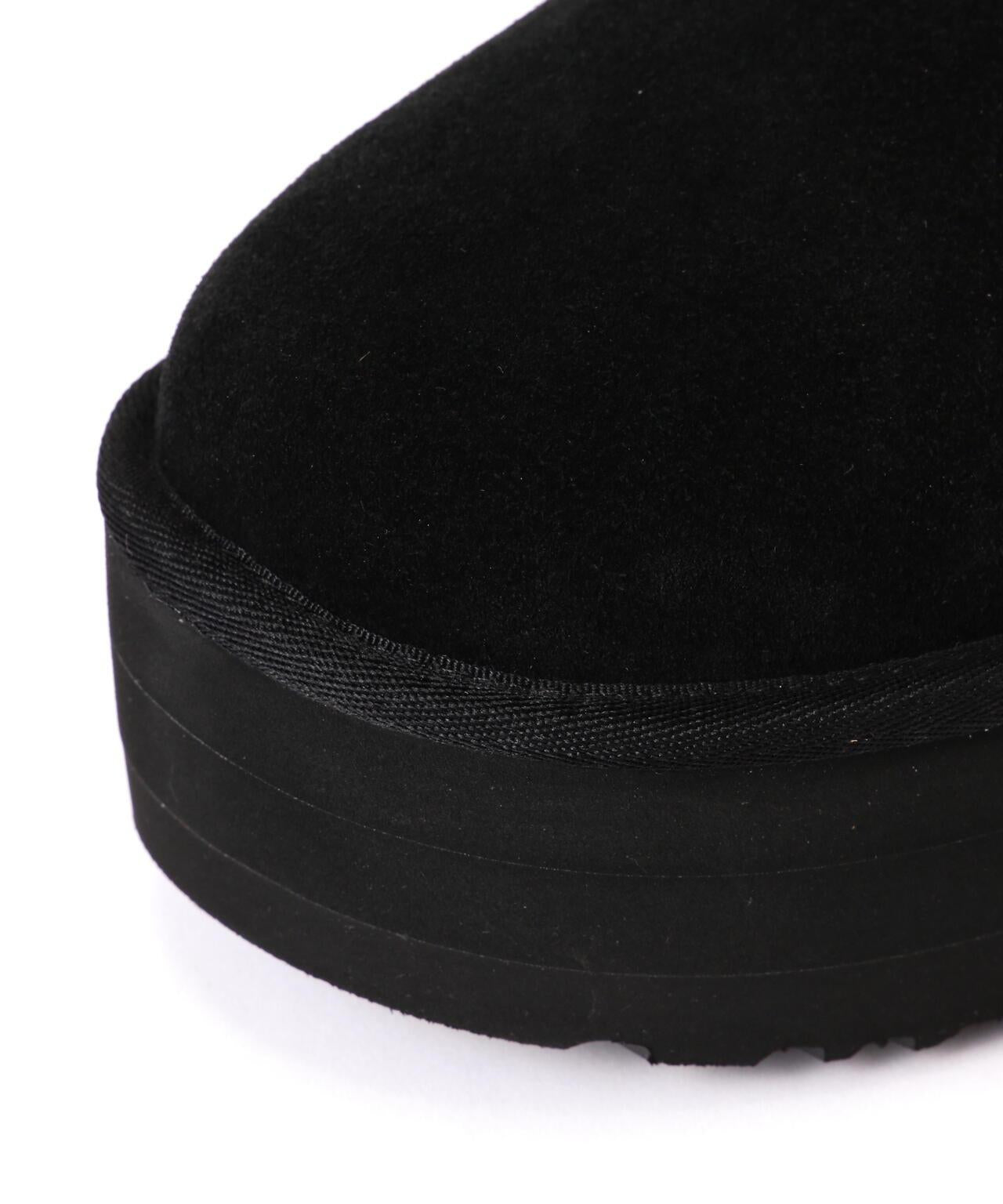 UGG 標誌性的經典靴子加入了 5 厘米高的平臺,使其更具現代感。除了大膽的平臺外觀,這款鞋還具有修飾腿部線條的效果。由於採用了豐富的絨面革和 UGG 獨特的 UGGplush 混紡材料,這款靴子擁有與原版相同的輕柔舒適感。該產品的外底採用從甘蔗中提取的 EVA 材料或 UGG 的 Treadlite 材料。這種 EVA 材料是一種負責任的化合物,通過使用甘蔗泡沫替代石油乙烯,有助於減少對化石燃料的依賴。該產品得到了 HERproject 的支持,HERproject 一直在與供應鏈中的婦女合作,以確保 UGG 的產品和服務符合她們的需求。