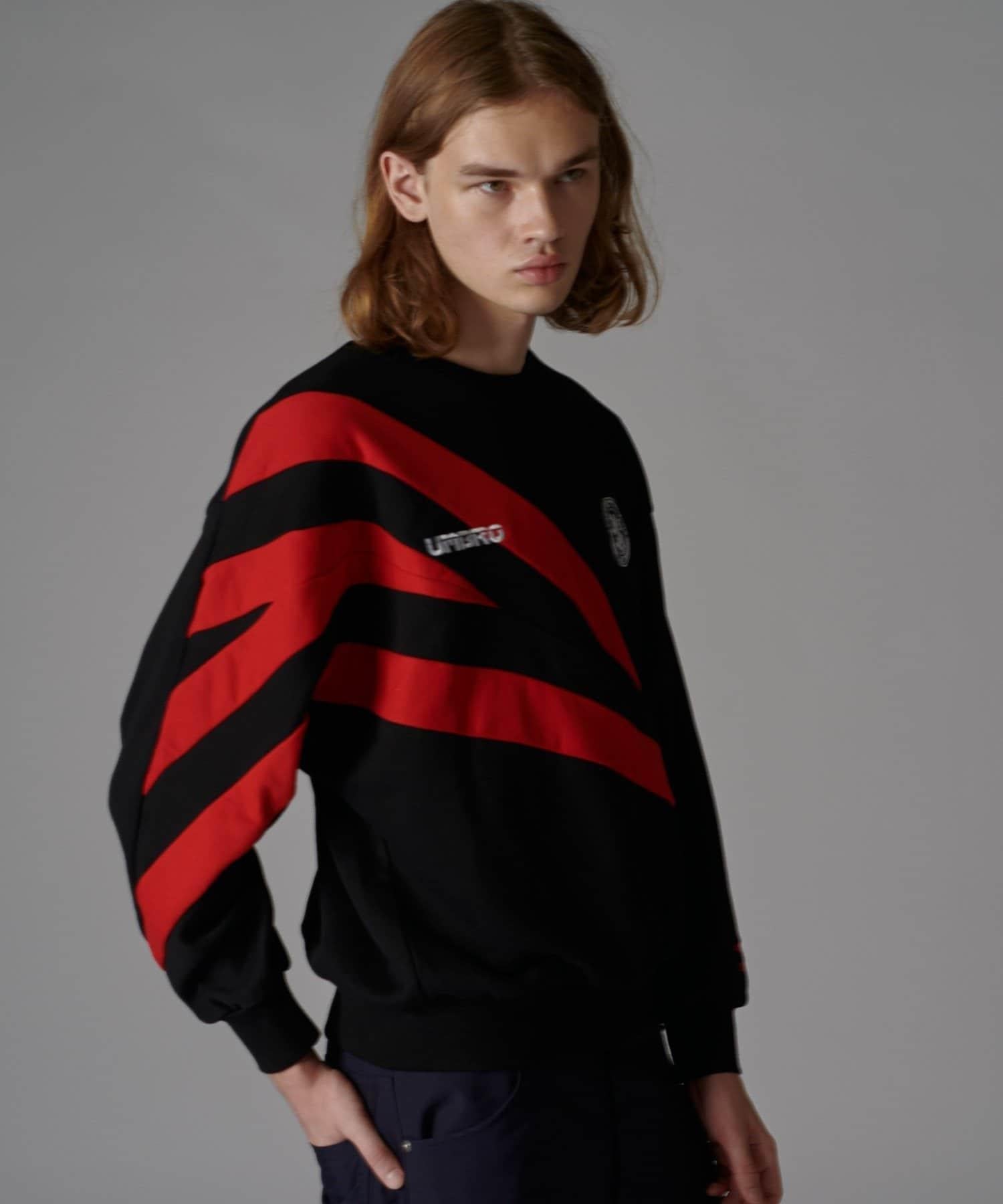 → 設計還注重細節。不對稱的圖案結構,右側為插肩袖,左側為垂肩袖,在增加視覺動感的同時,也營造出街頭感。
