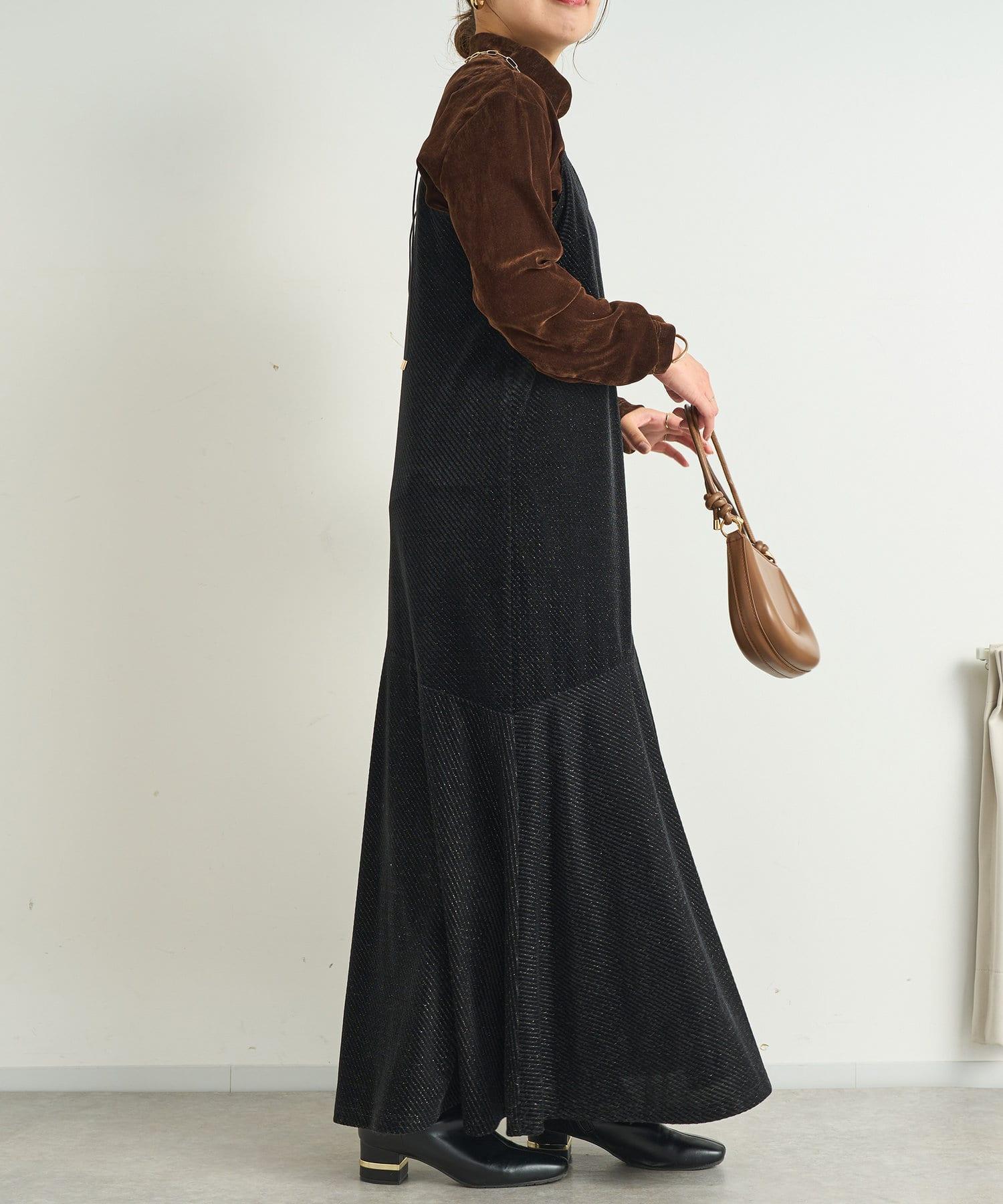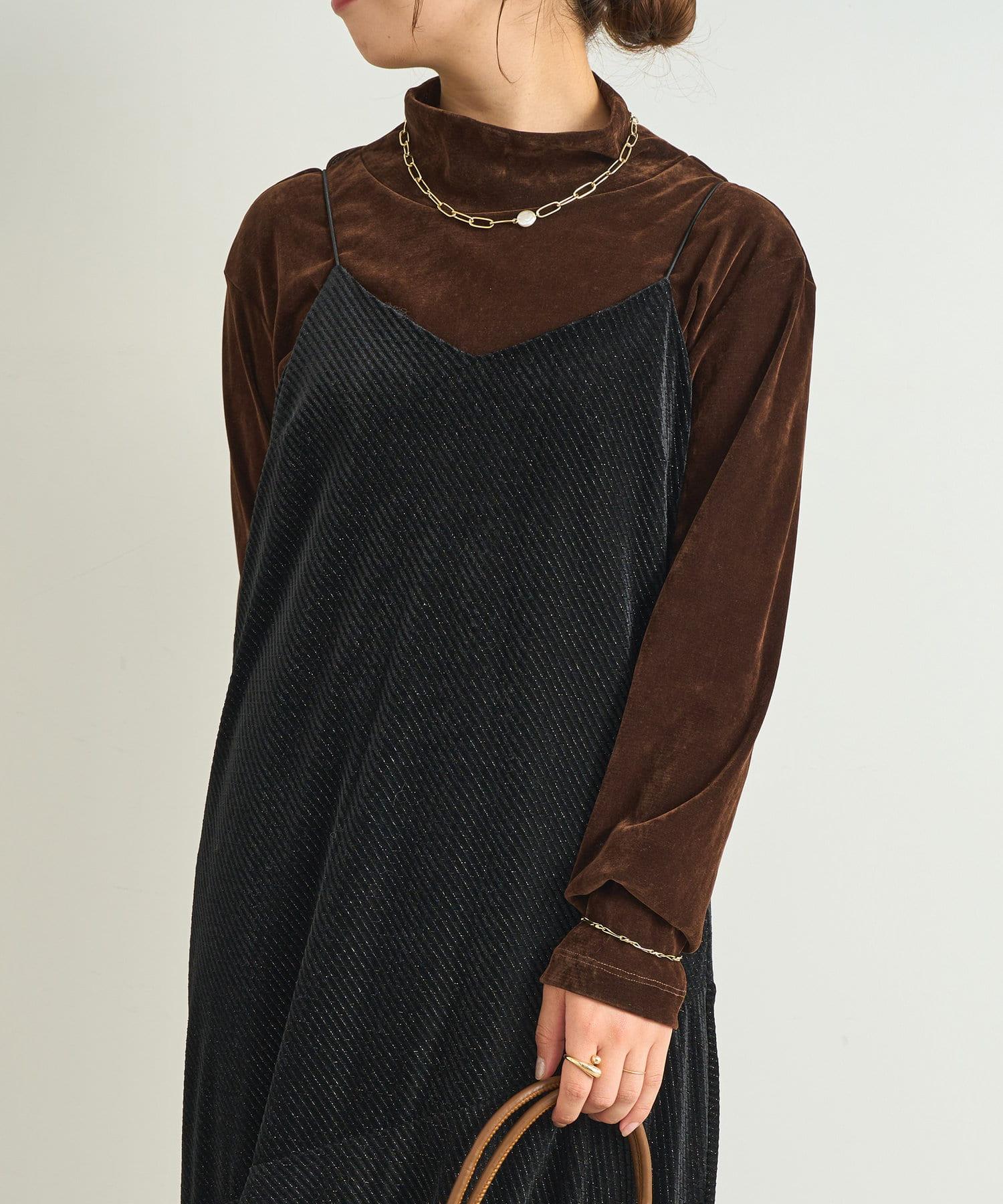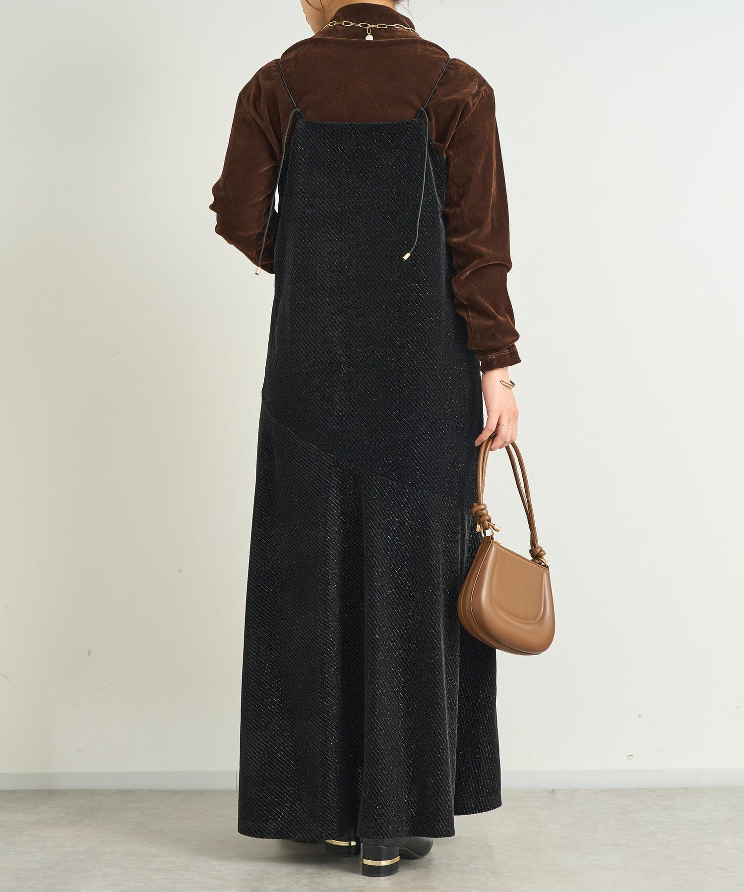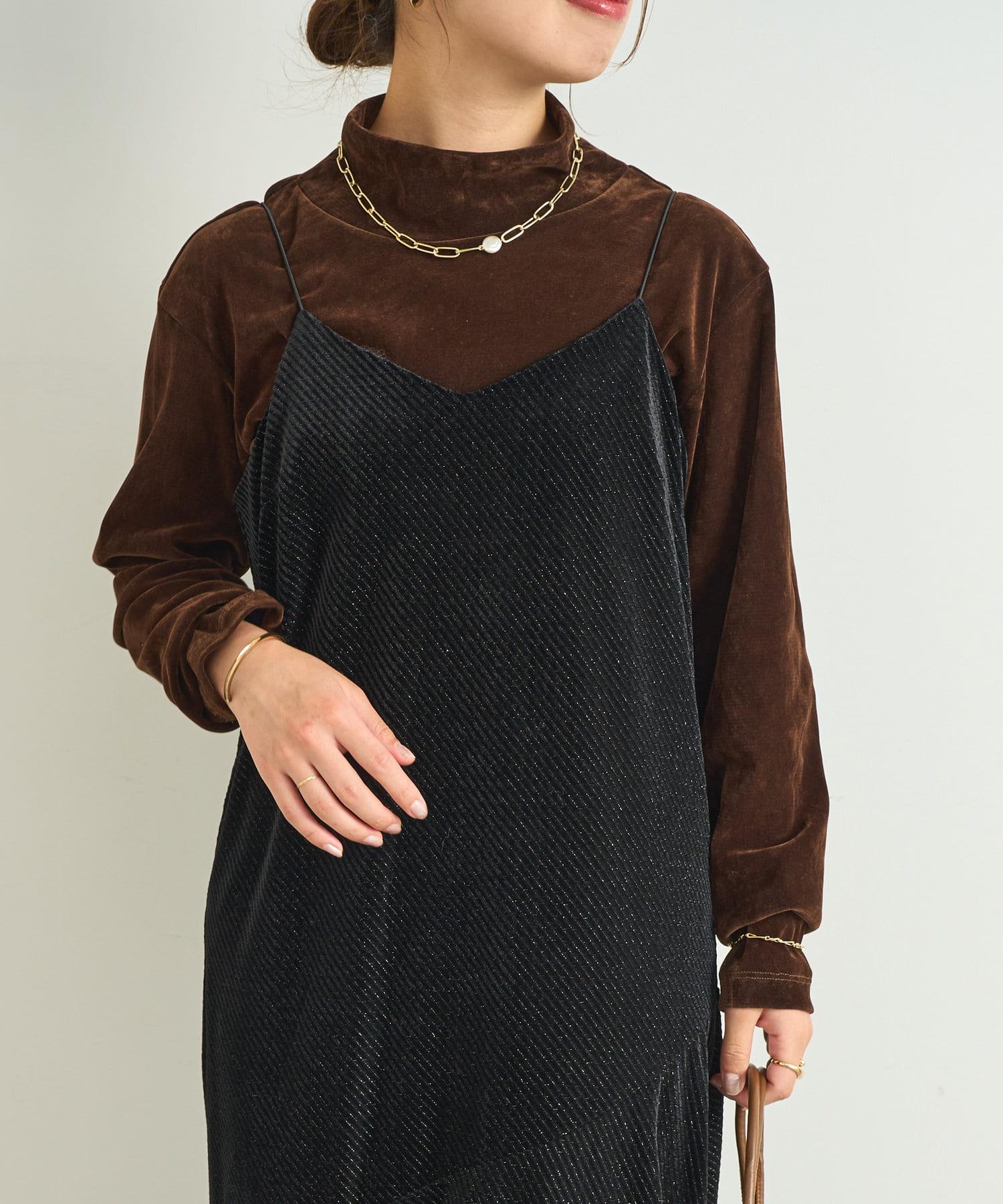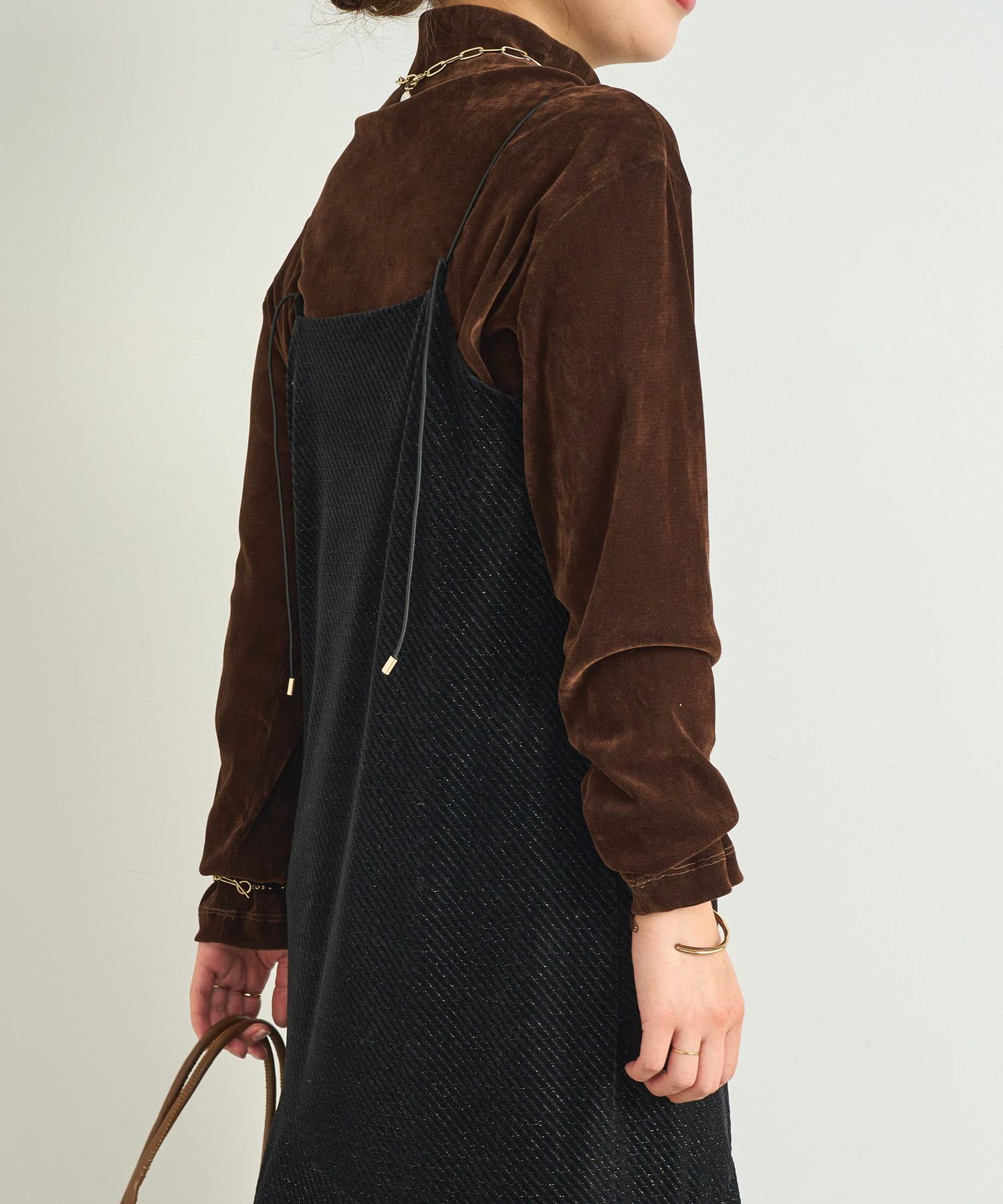 【un dix cors】帶亮絲天鵝絨拼接吊帶連衣裙