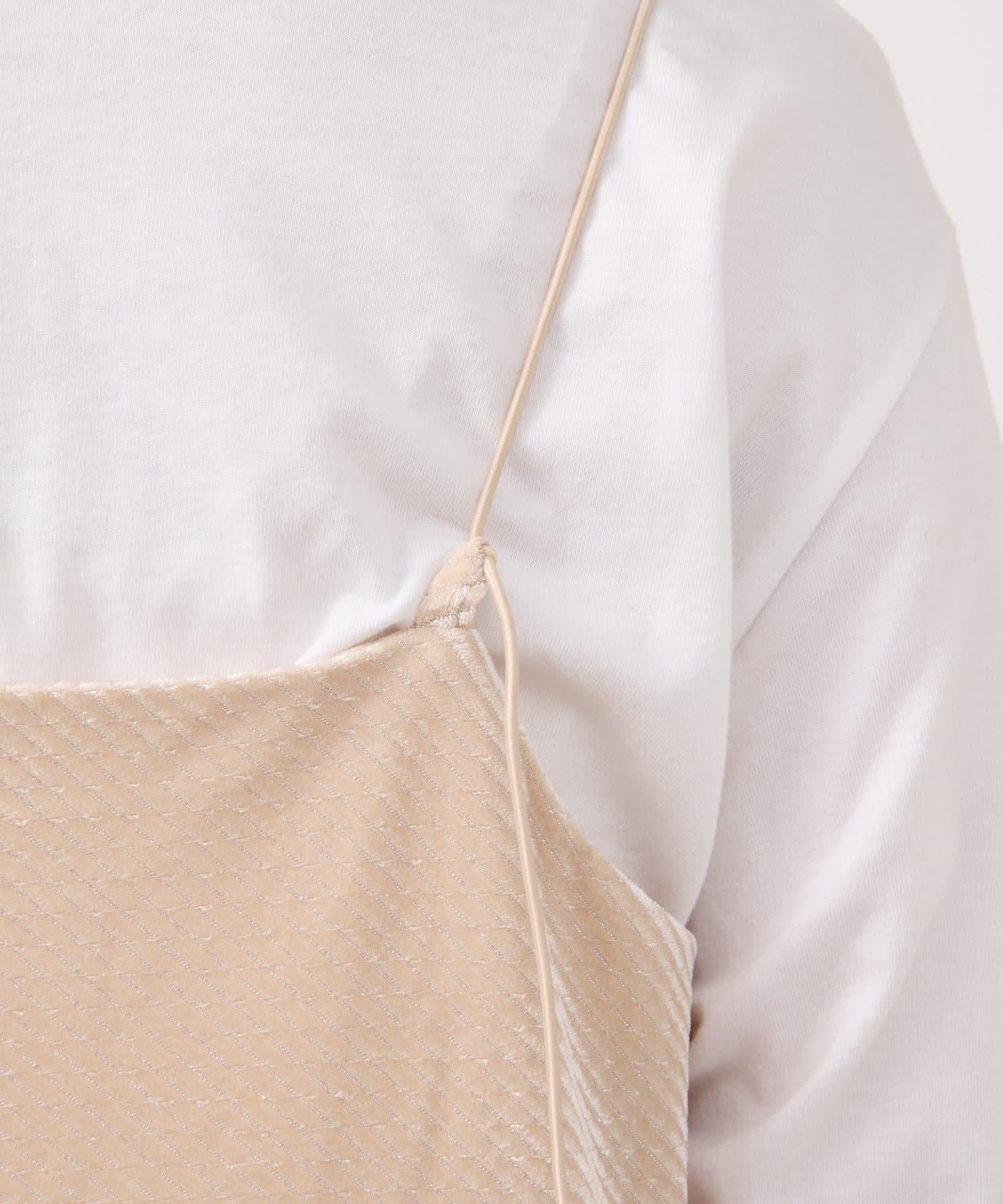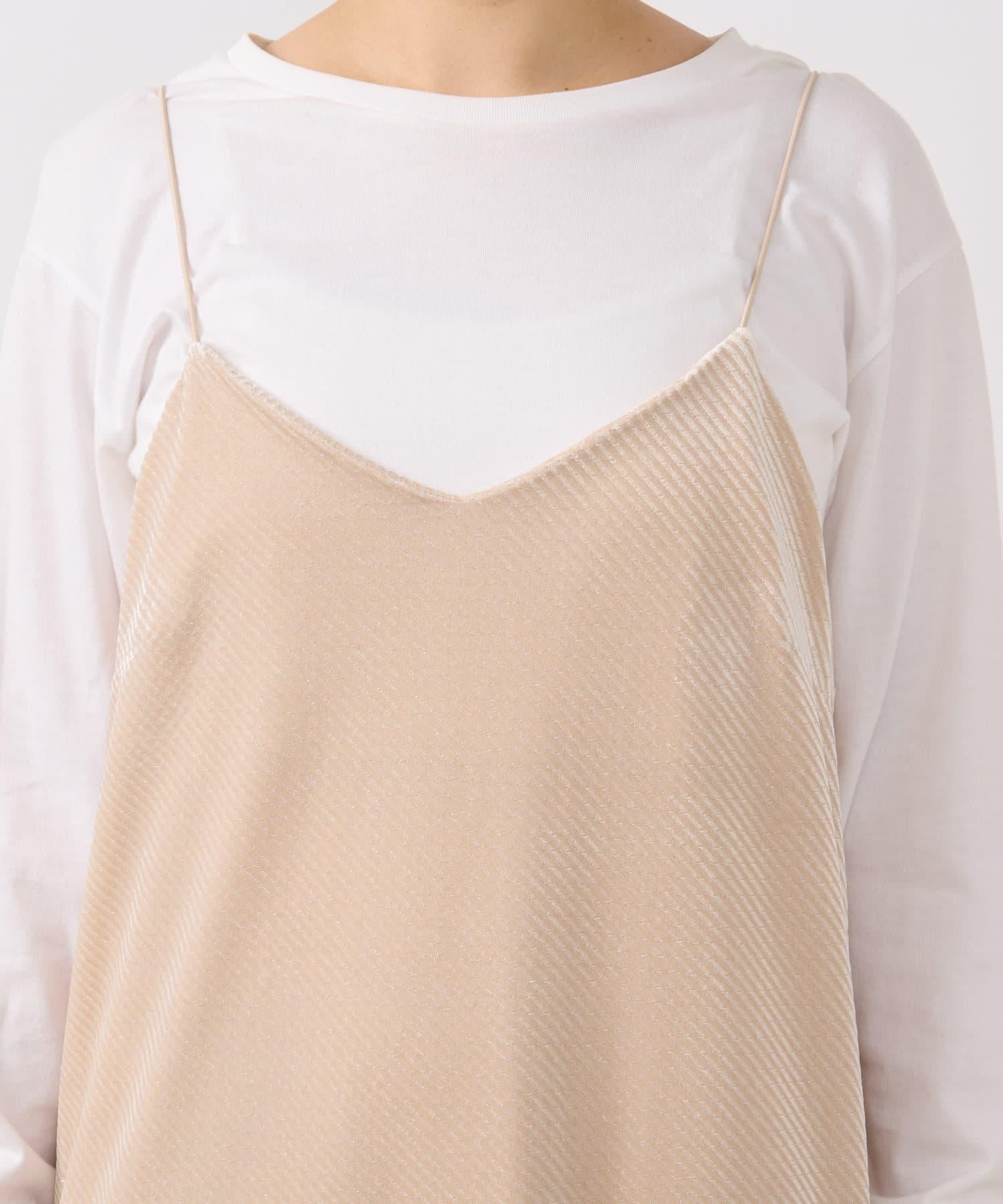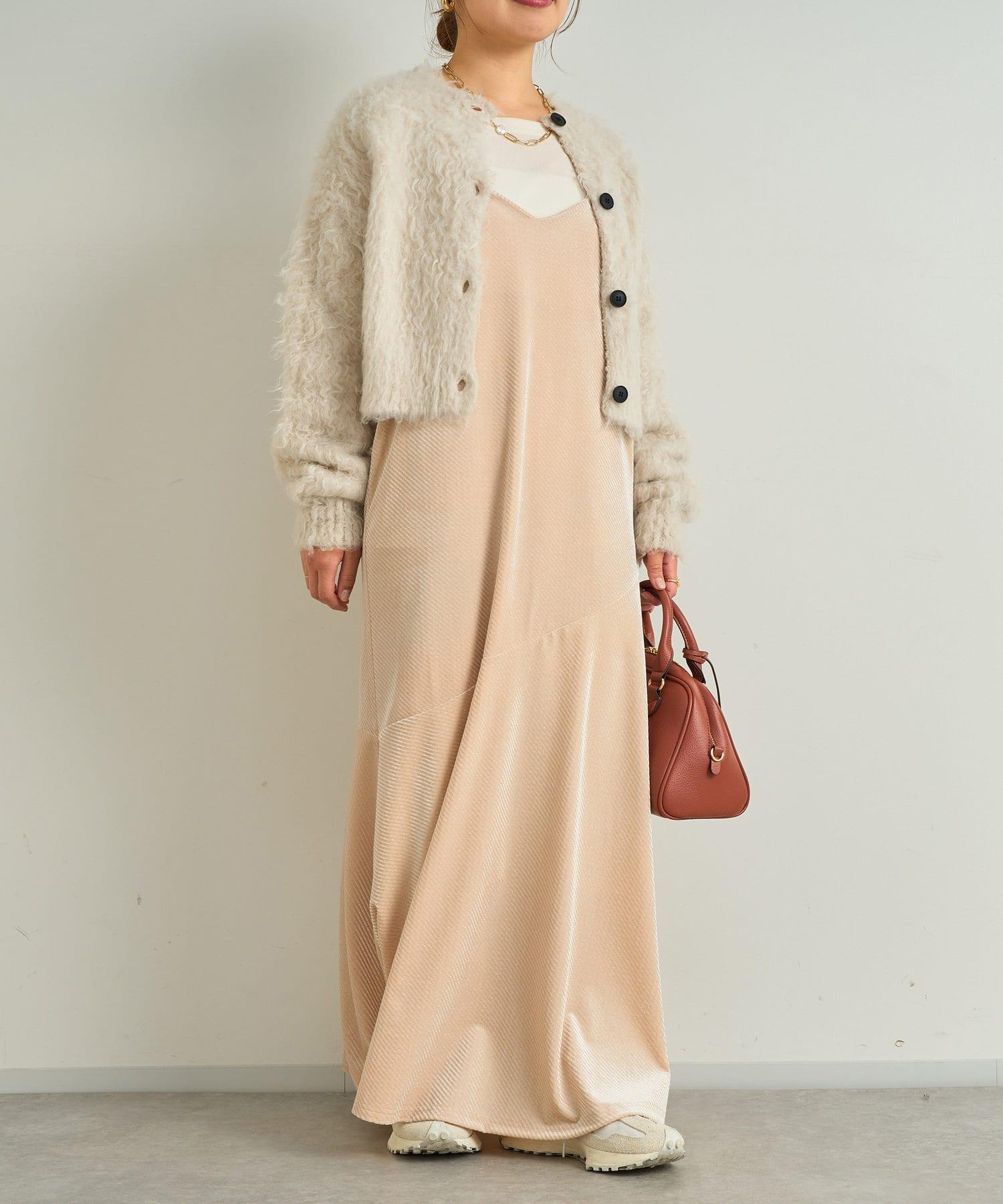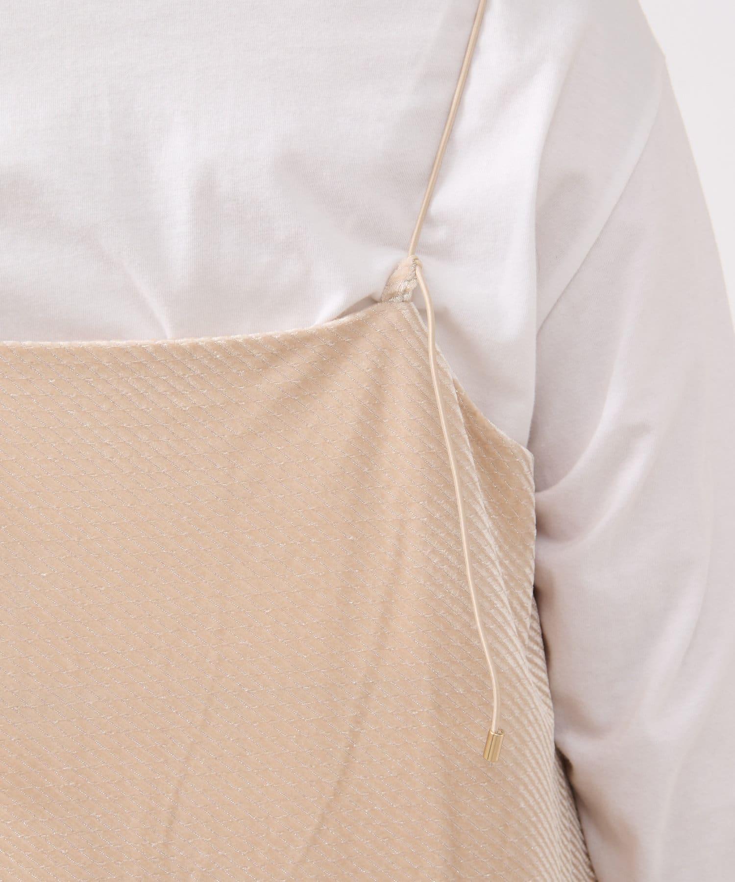 【un dix cors】帶亮絲天鵝絨拼接吊帶連衣裙