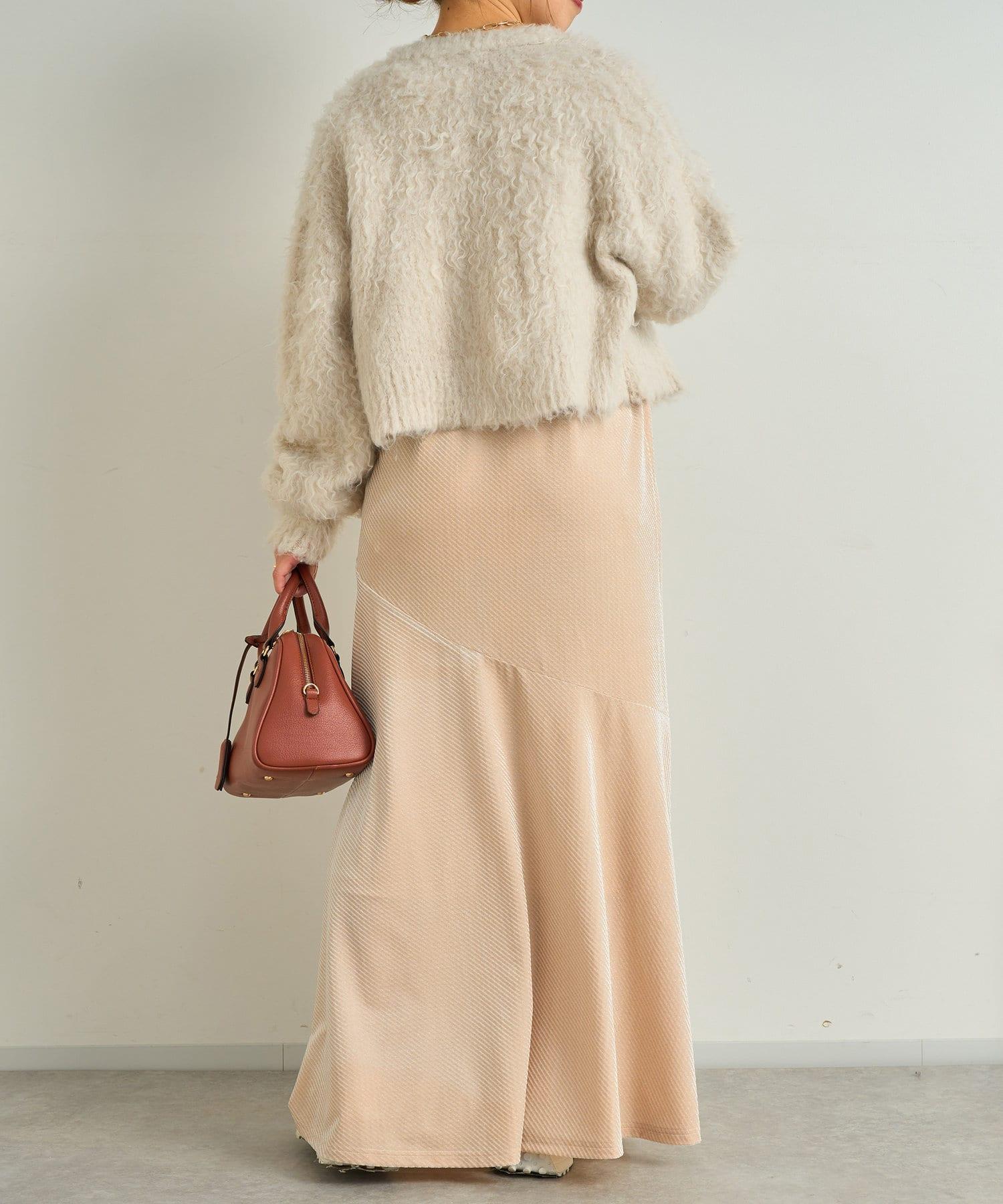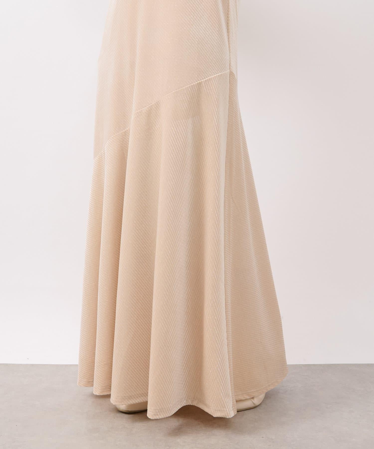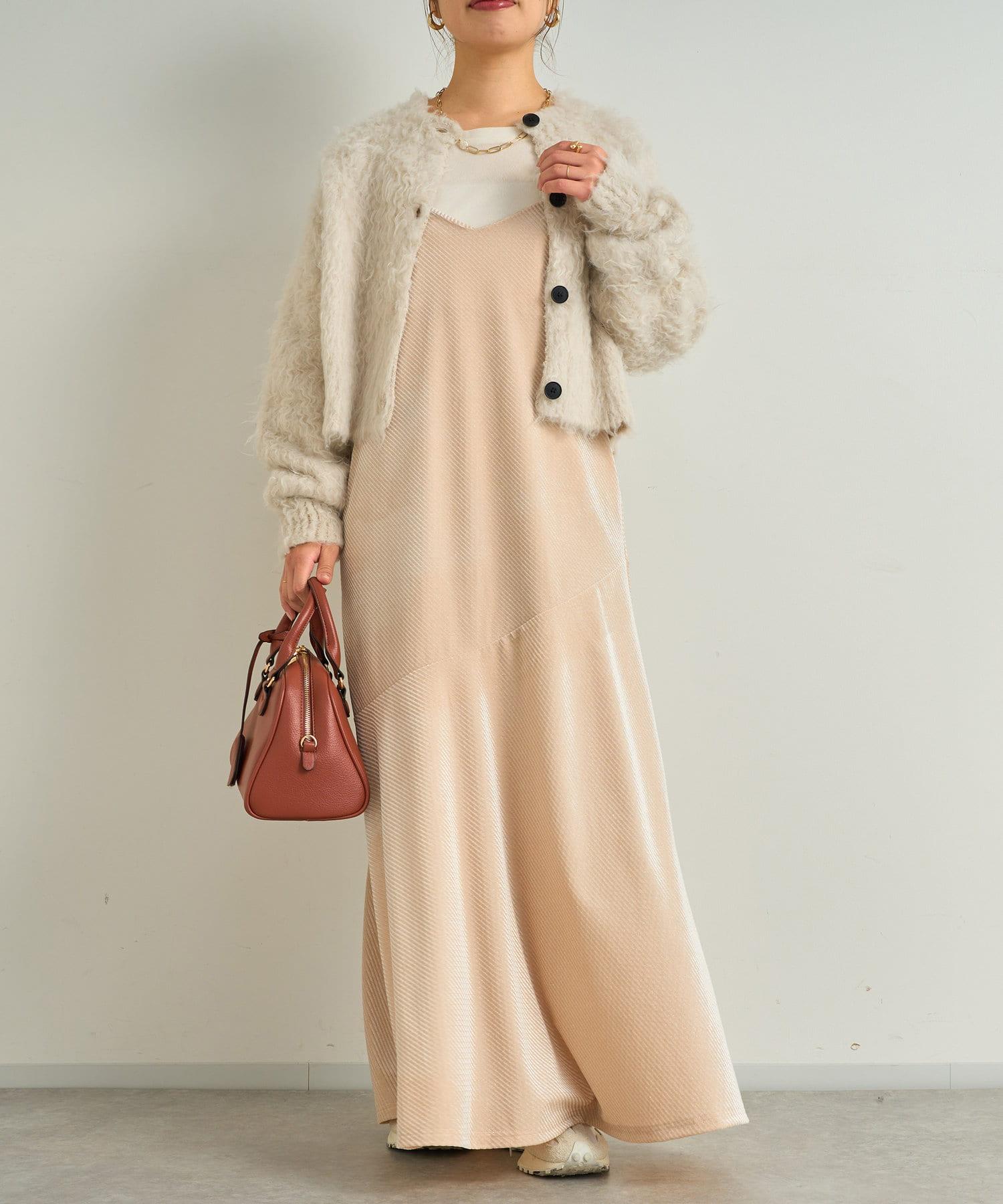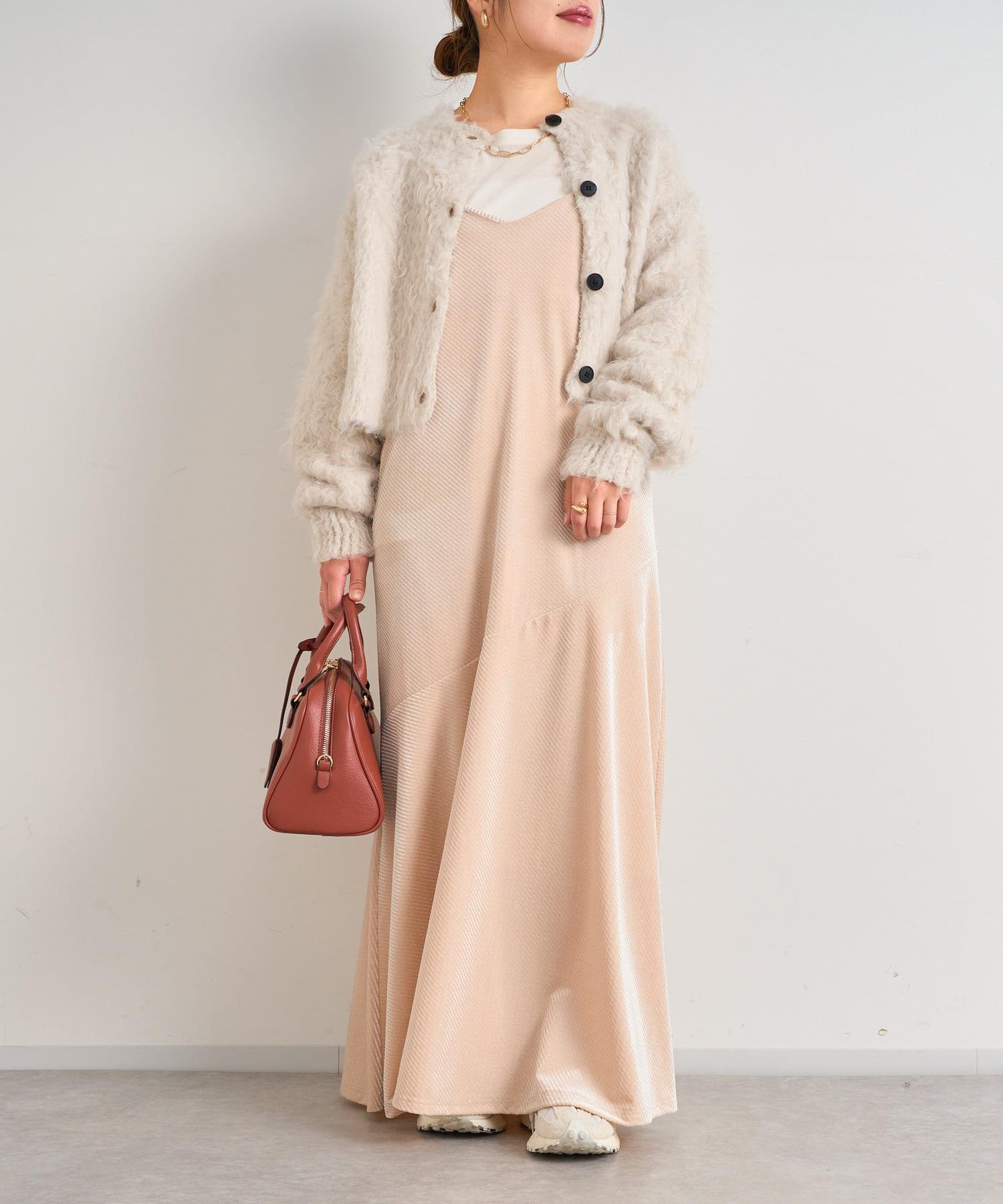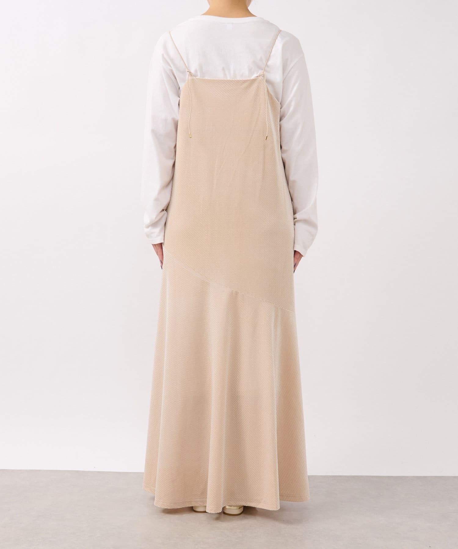 【un dix cors】帶亮絲天鵝絨拼接吊帶連衣裙