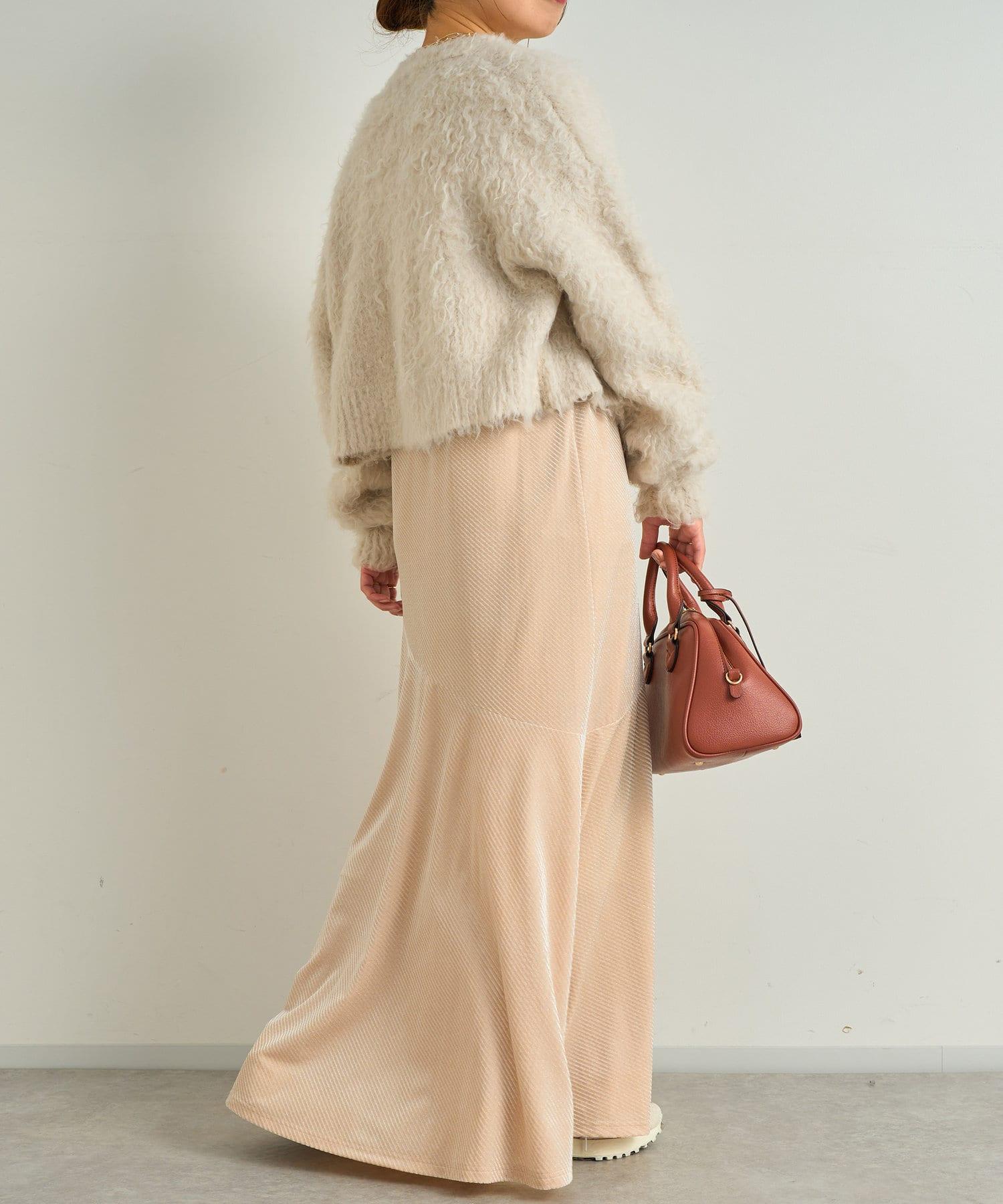 採用略帶光澤的絲絨面料製成的連身裙令人印象深刻。