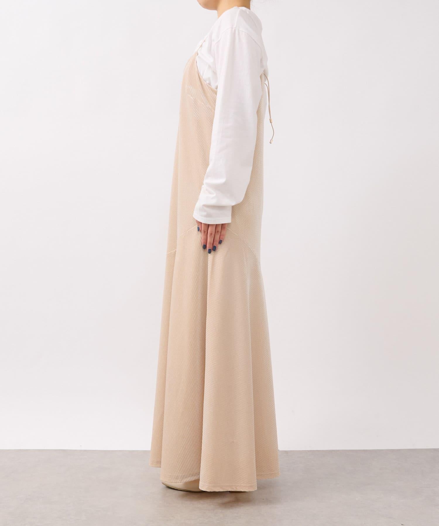 吊帶連衣裙,細膩的肩帶和褶皺的切換,充滿了女人味。