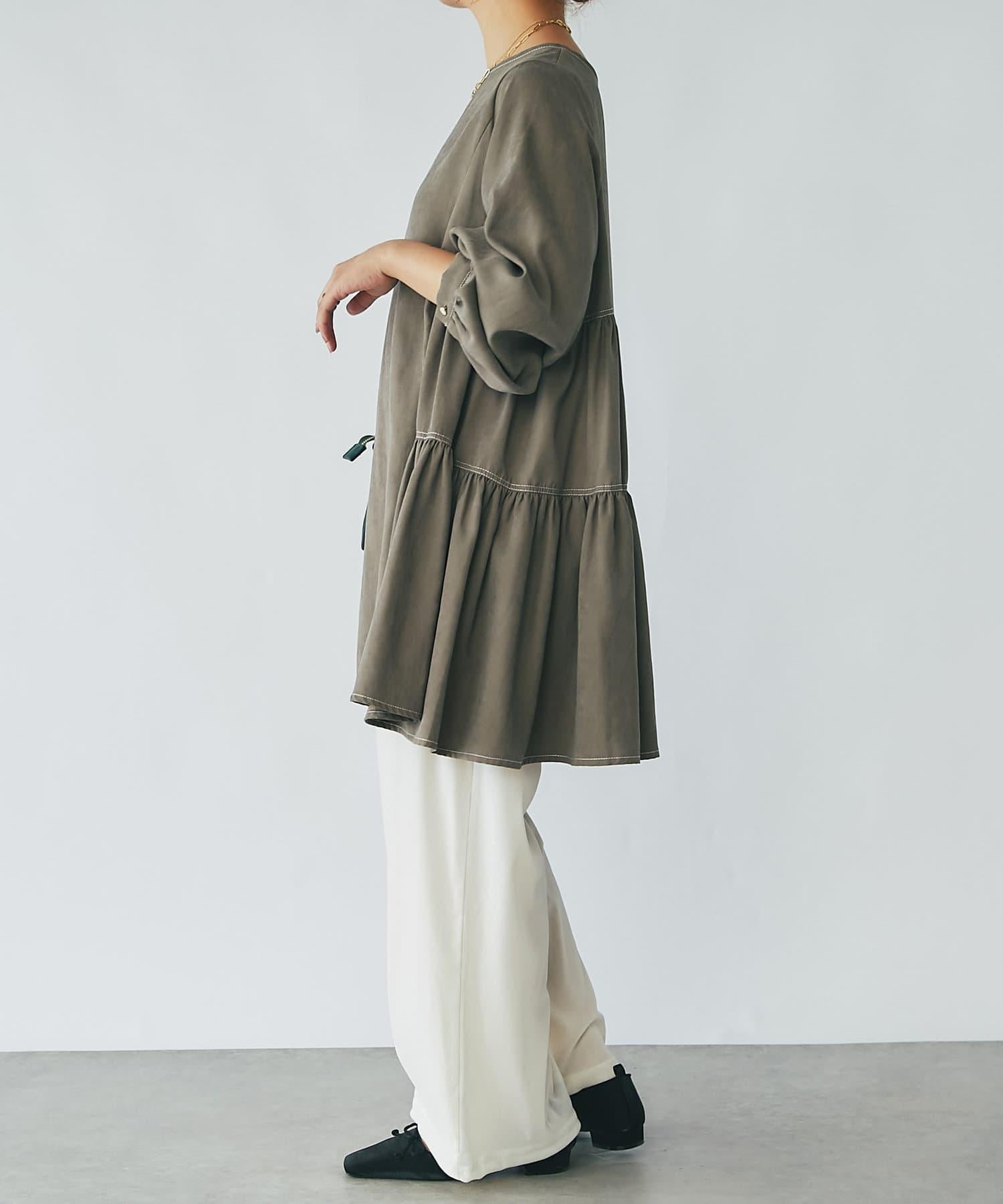 寬大的廓形不會過於寬大,但面料具有寬鬆感,因此廓形看起來整潔乾淨。