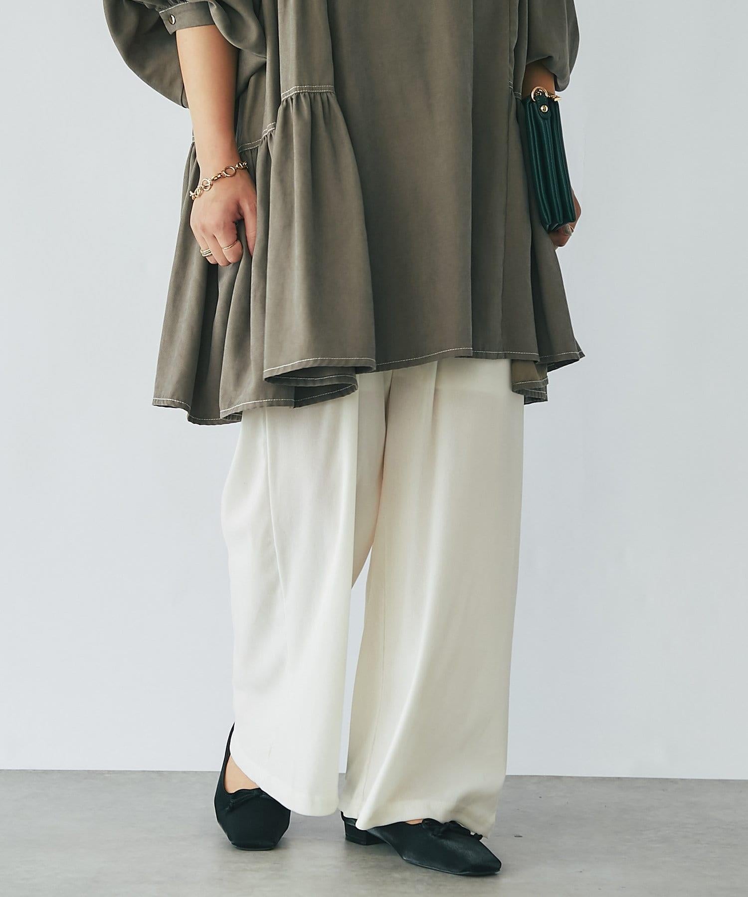 成熟的寬鬆長褲,充分利用了面料的特性。